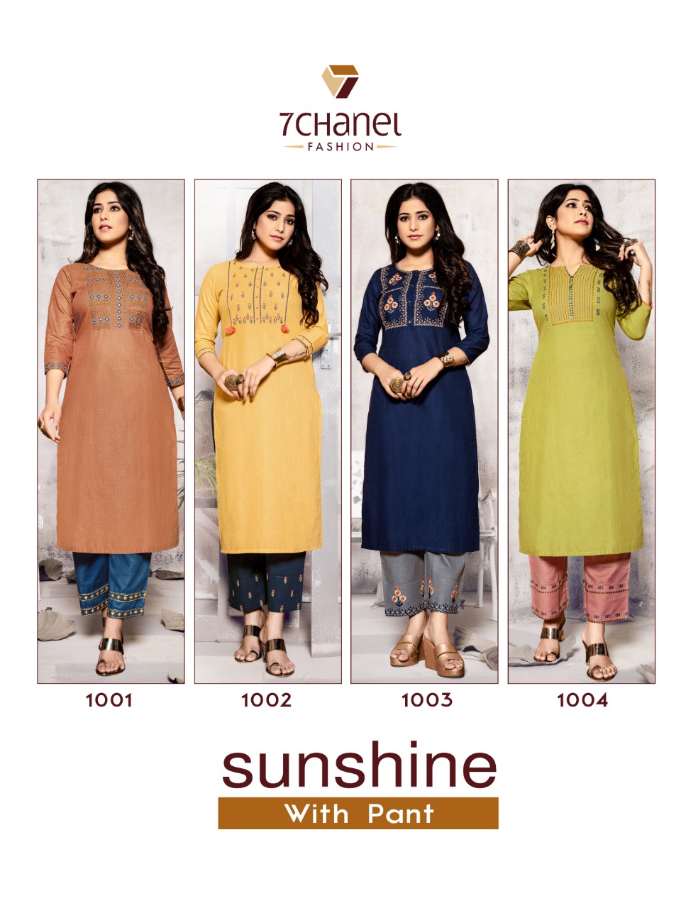 7 Chanel Fashion Launch Sun Shine Pure Cotton Kurti With Pant Daily Wear