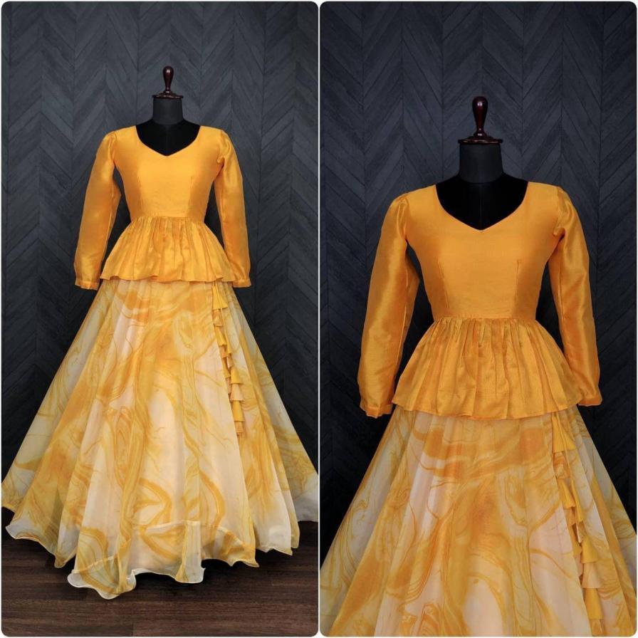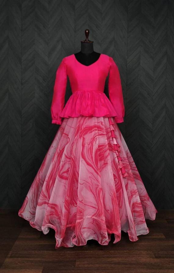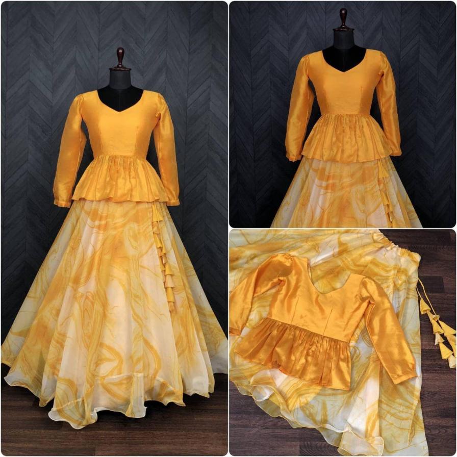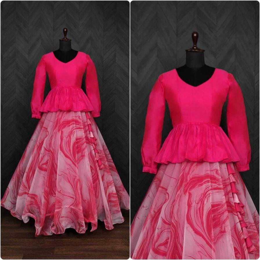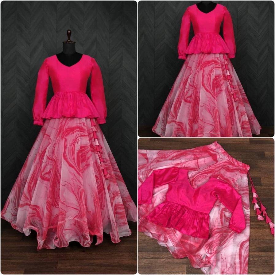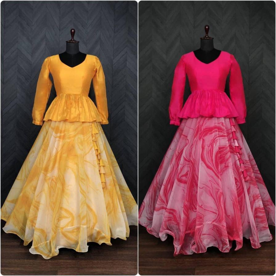 7032 elegant style organza fully stitch designer lehenga blouse with dupatta