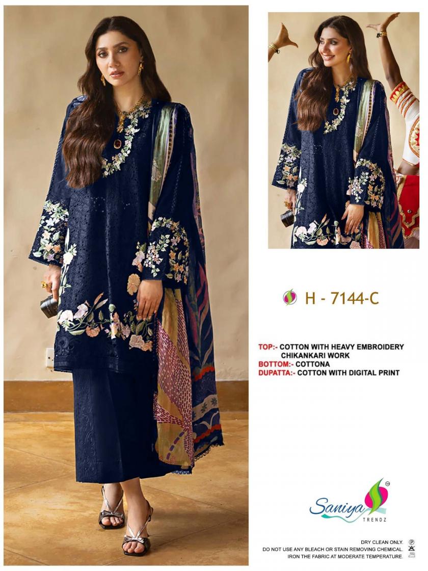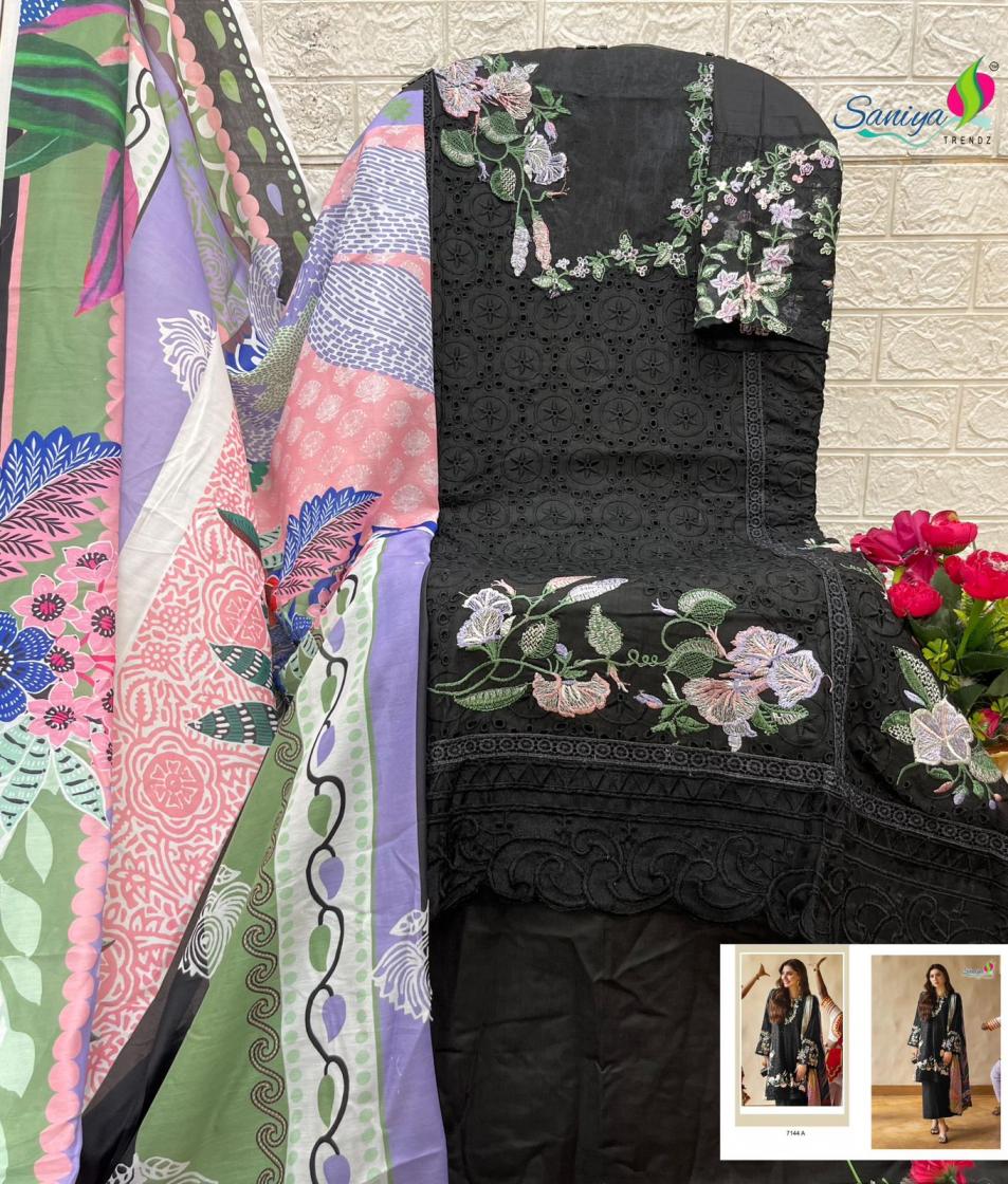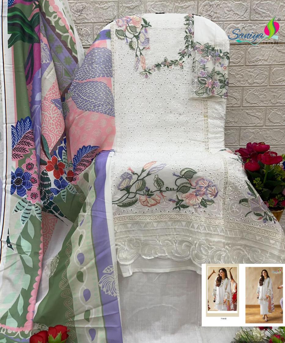 7144 by saniya trendz 3pcs unstitch top bottom and dupatta