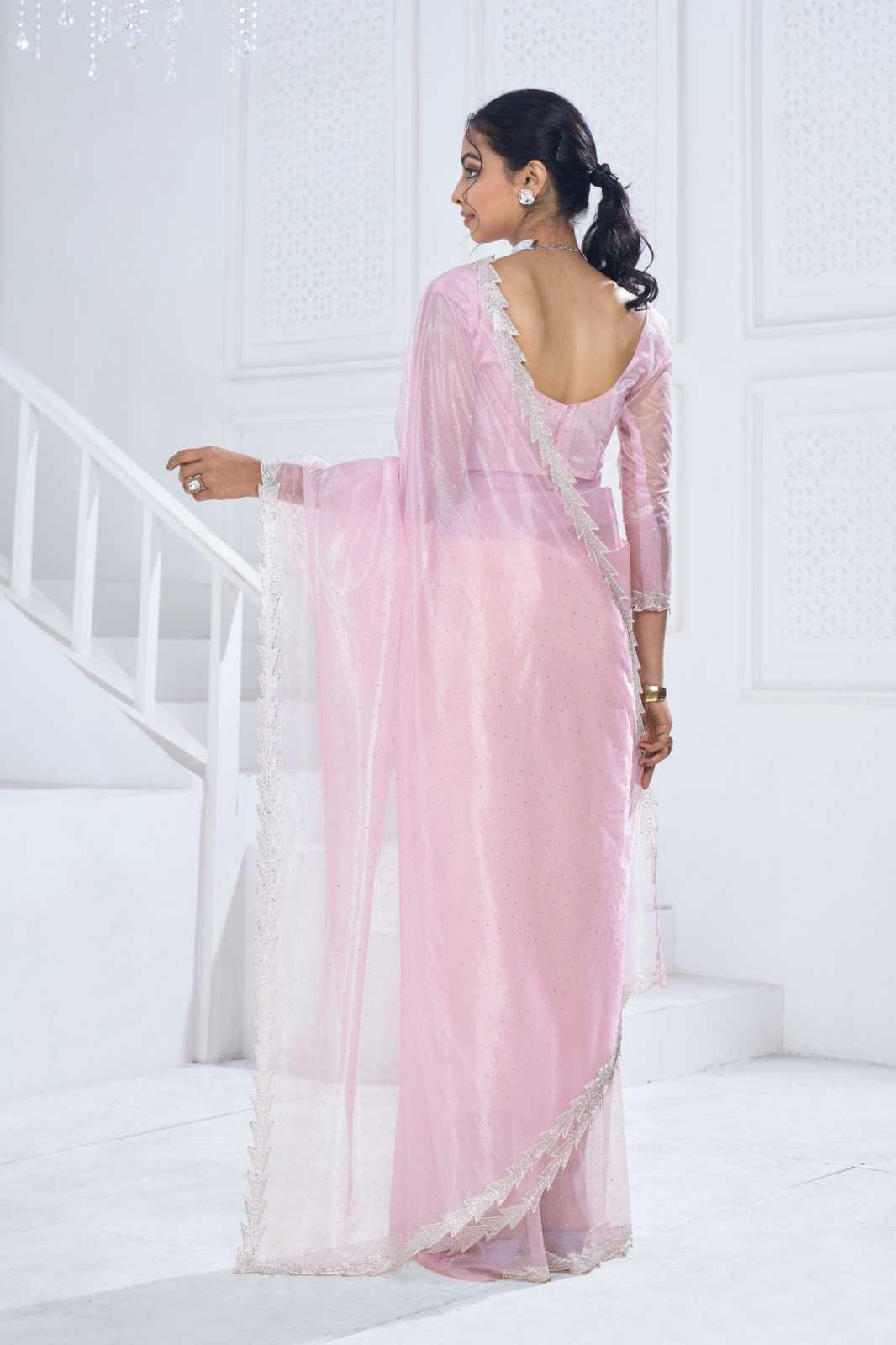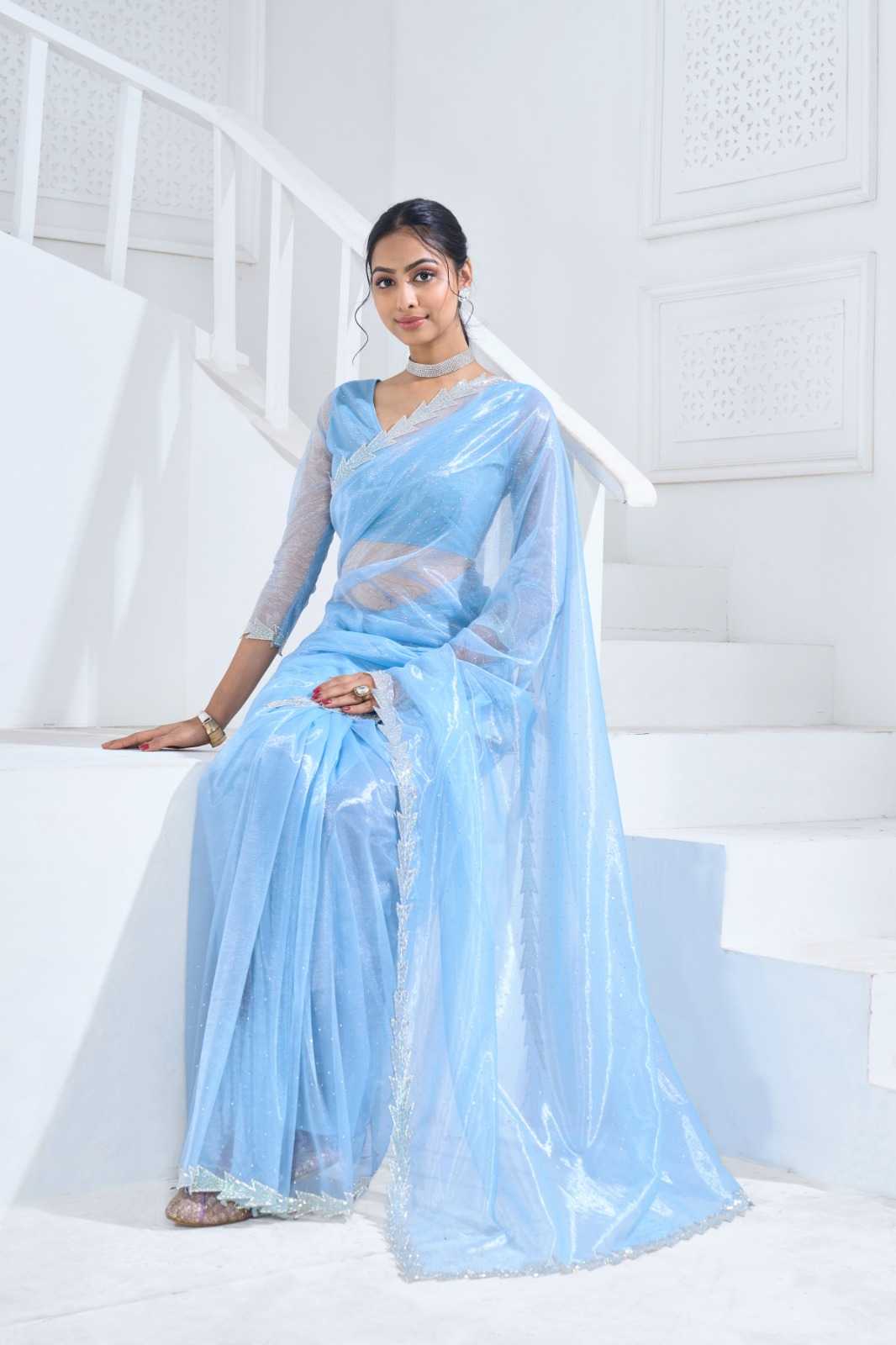 Brand name - MEHAK SAREES SERIES– 797 A - E Total colours - 5 PRICE - 1495 twirll soft organza with heavy swroski work blouses heavy handwork border and swroski in all over saree |