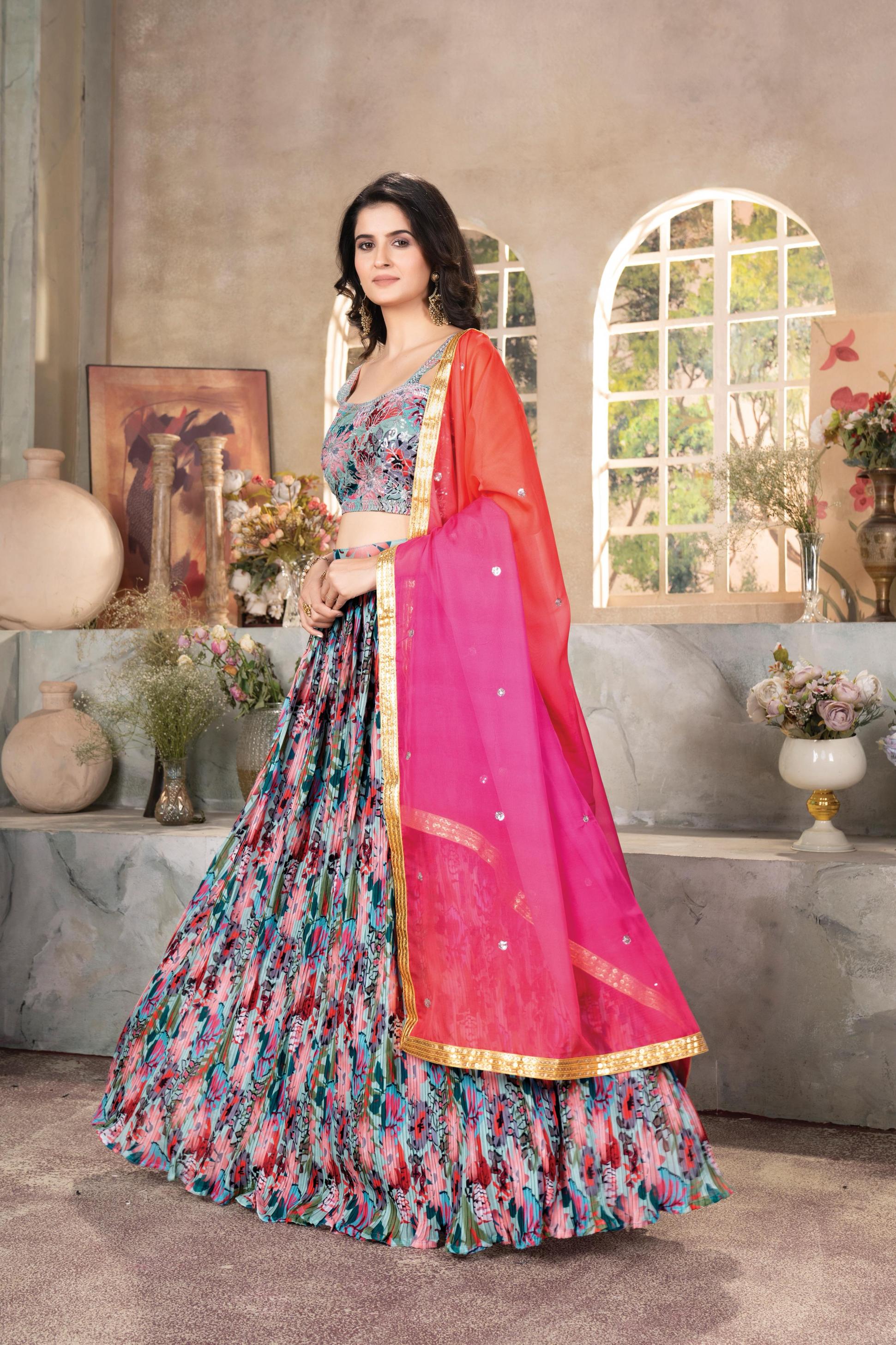 🇮🇳DN:MC9235 💃🏾LEHNGA:SOFT TABBY ORGENZA WITH DIGITAL PRINT WITH CRUSHED PATTERN DESIGNE WORK 🧥INNER-SILK WITH HEAVY KEN-KEN AND CANVAS PATTA 🧣DUPTTA:SOFT ORGENZA WITH DIGITAL PRINT WITH EMBROIDERY SEQUENCE DESIGN WORK 🥻BLOUSE:SOFT ORGENZA WITH DIGITAL PRINT DESIGN WITH HEAVY EMBROIDERY JARI SEQUENCE DESIGN WORK 💵RATE:1495₹ 📱COLOUR 1 ONE 🪜WEIGHT: 1KG,100GMS 🪢WAIST 43”+ ✅BEST QUALITY BEST PRICE |