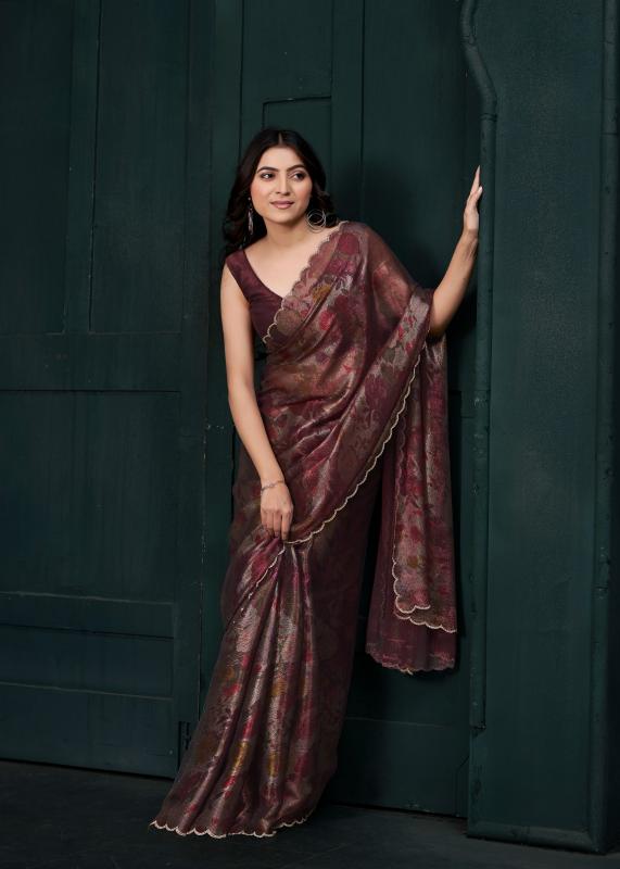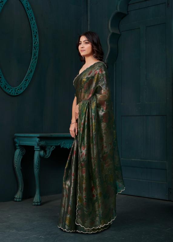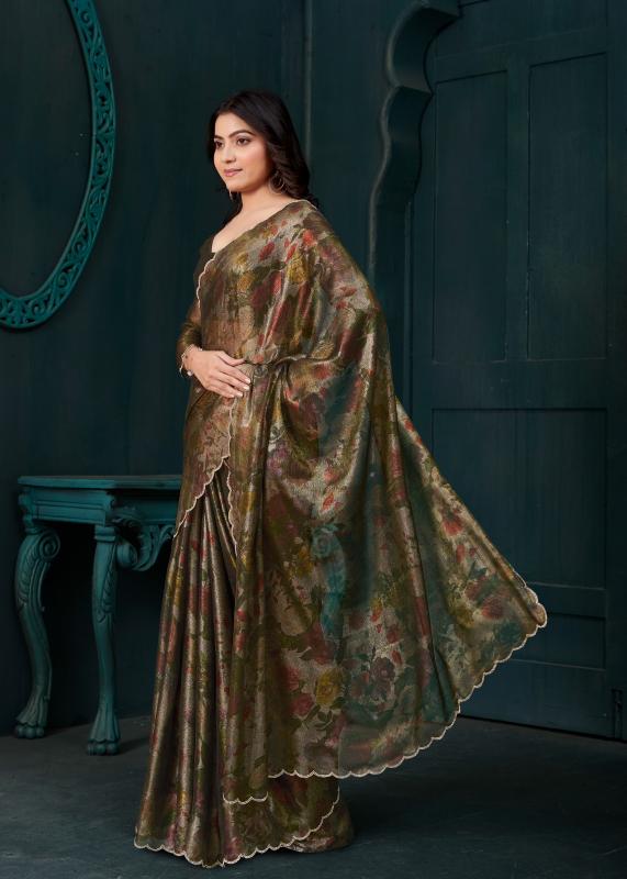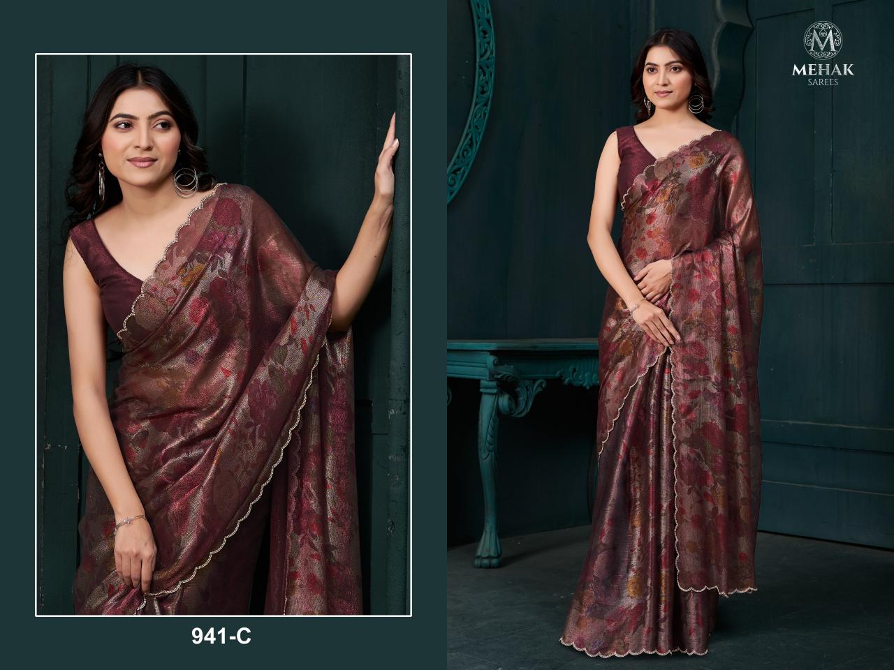 Brand : Mehak Saree Catalog Name : 941A To 941D Saree Fabric : : Two Tone Silk With Gold Foil Zarkan Handwork & Cut Work Border Blouse Fabric : Two Tone Silk Rate : 1775/- +5% Gst Occasion: Party Wear,Festival Wear |