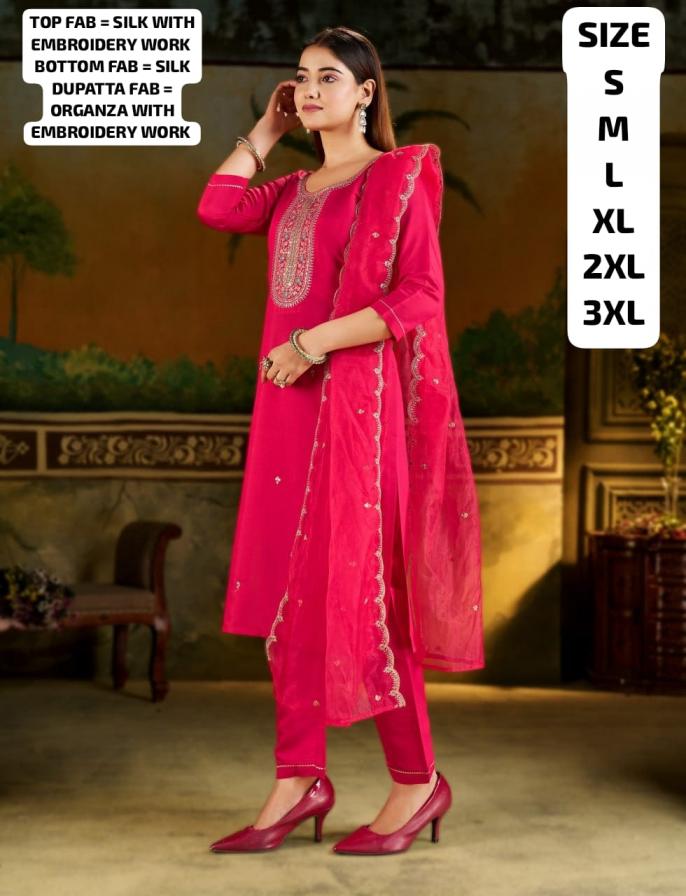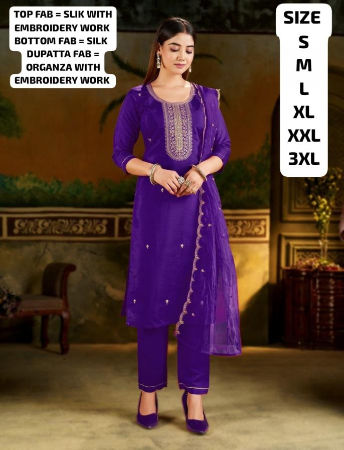 NEW READYMADE STANDARD QUALITY PRODUCT SWARAJ FULLY STICHED KURTA & PANT AND DUPATTA SET FABRIC DETAILS : TOP FAB - SILK BLEND WITH EMBRODEIRY WORK BOTTOM FAB - SILK BLEND DUPATTA FAB - ORGANZA WITH EMBROIDERY WORK INNER = MICRO SIZE - S & M & L & XL & XXL & 3XL RATE - 749 BOOK YOUR ORDERS NOW !!! STANDARD QUALITY PRODUCT FULL SET AVAILABLE FULL STOCK AVAILAVLE SAME DAY DISPATCH |
