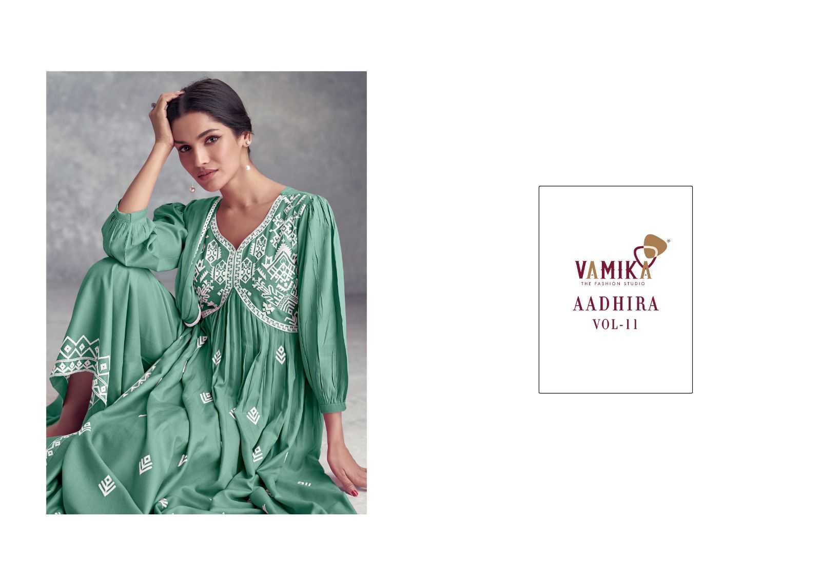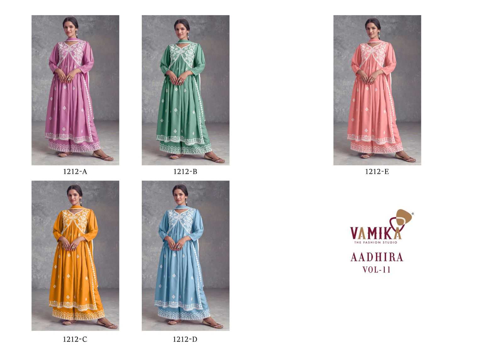 aadhira vol 11 by vamika nayra style rayon readymade suits with plazzo