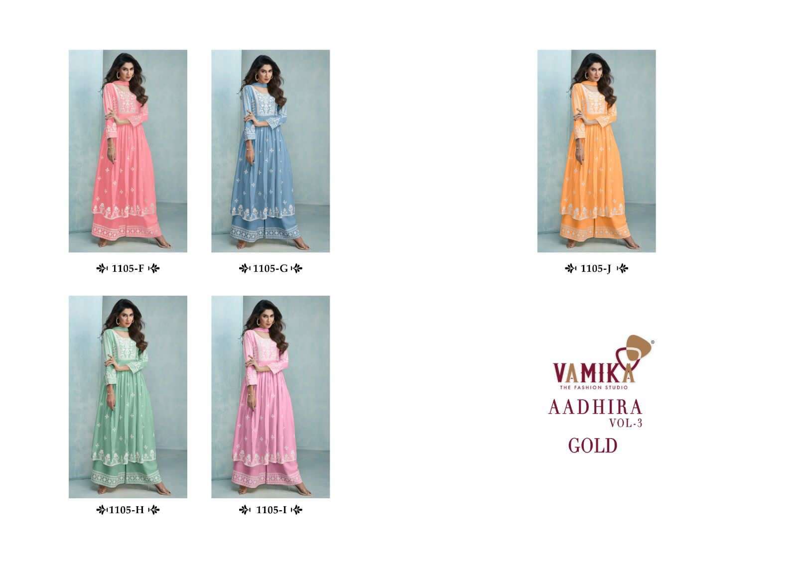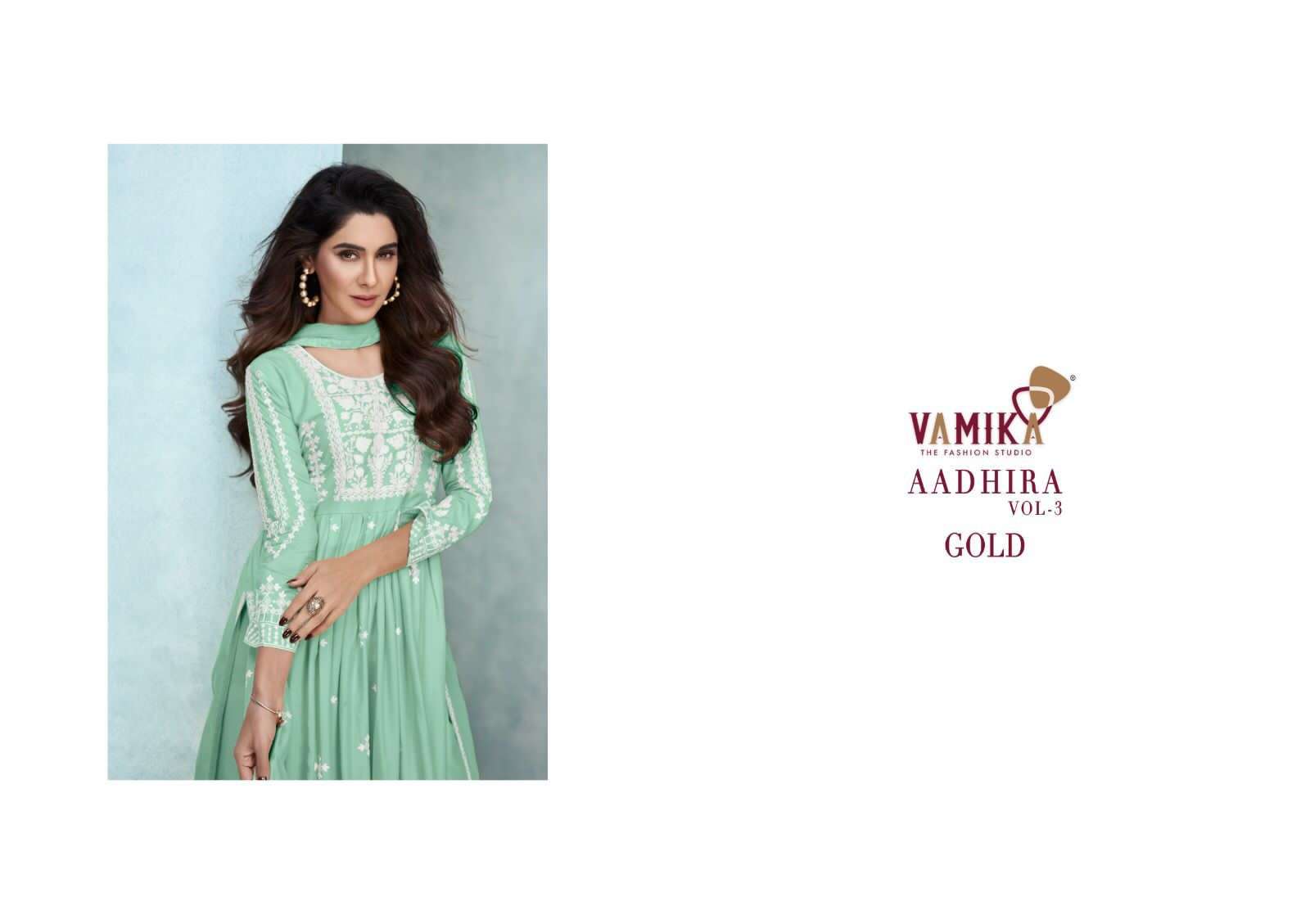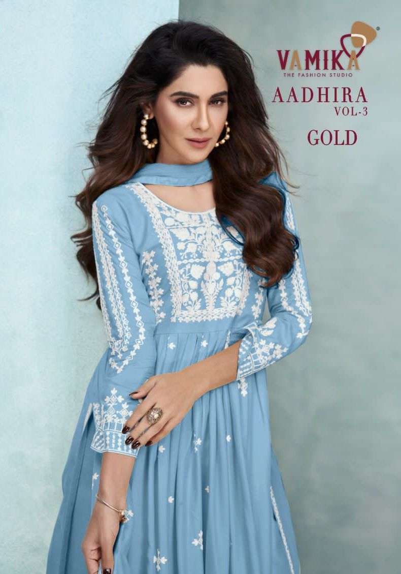 aadhira vol 3 gold by vamika readymade rayon viscose nayra cut salwar kameez