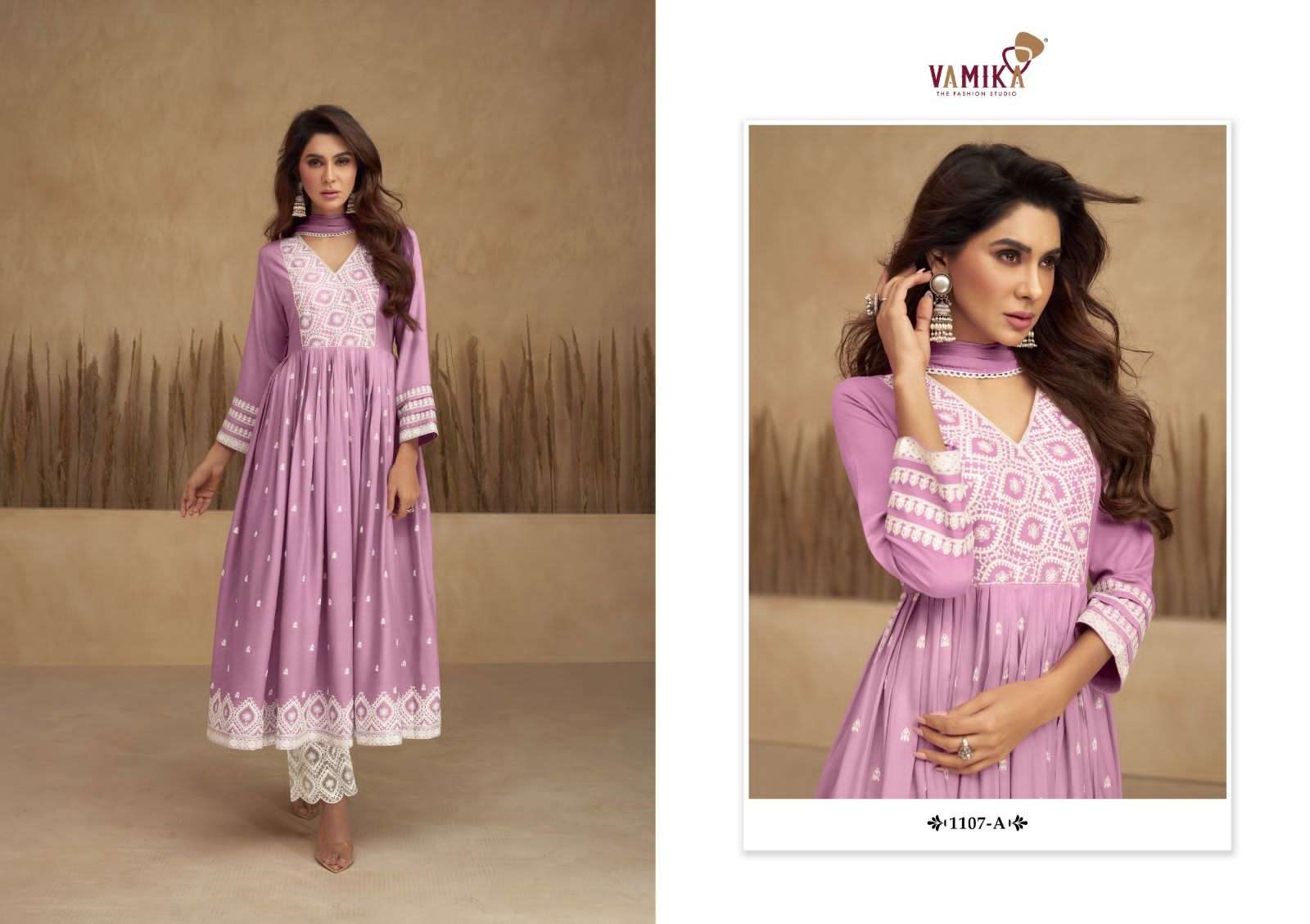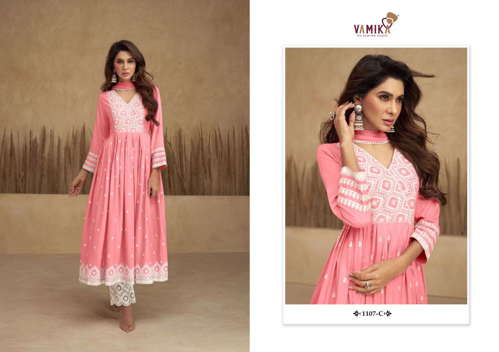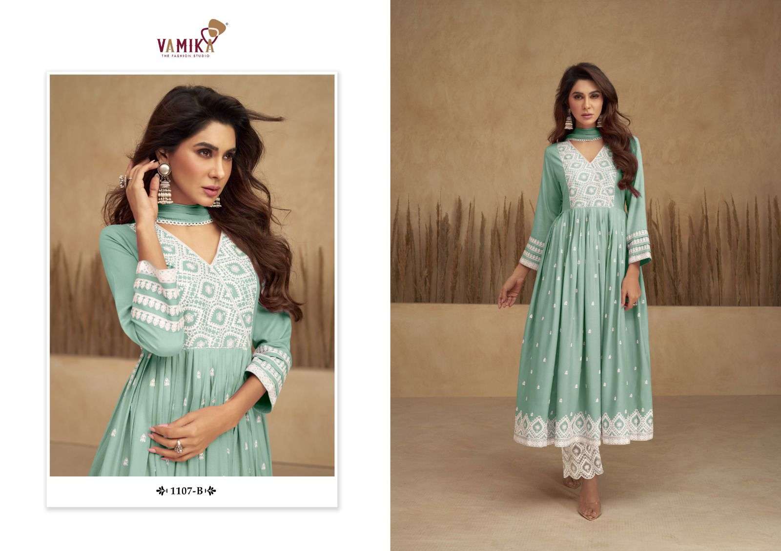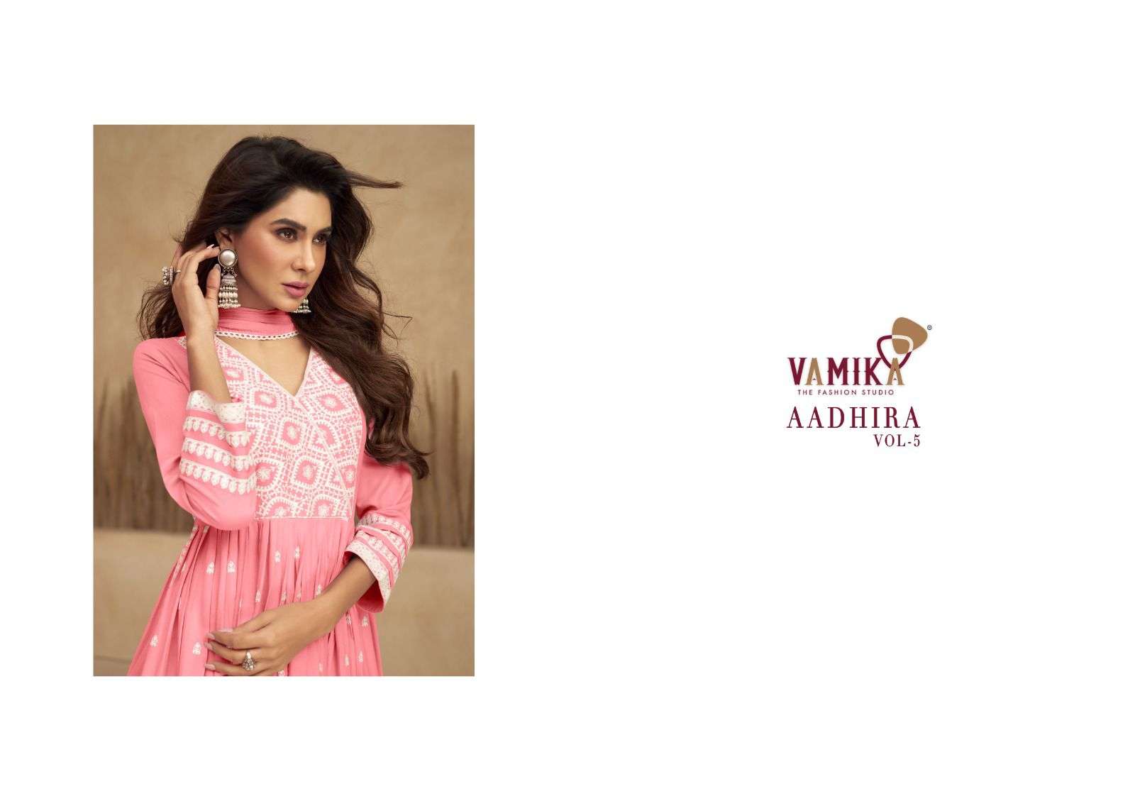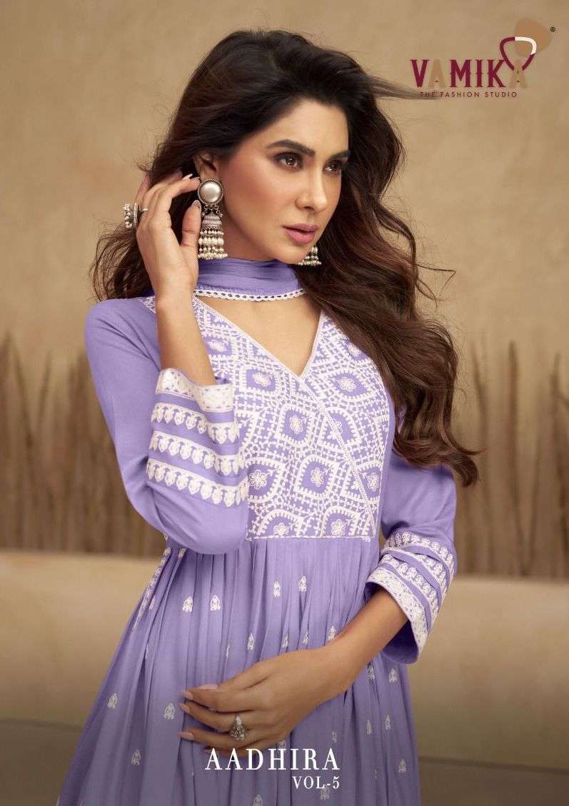 aadhira vol 5 by vamika fancy lucknowi work readymade nayra cut salwar kameez supplier