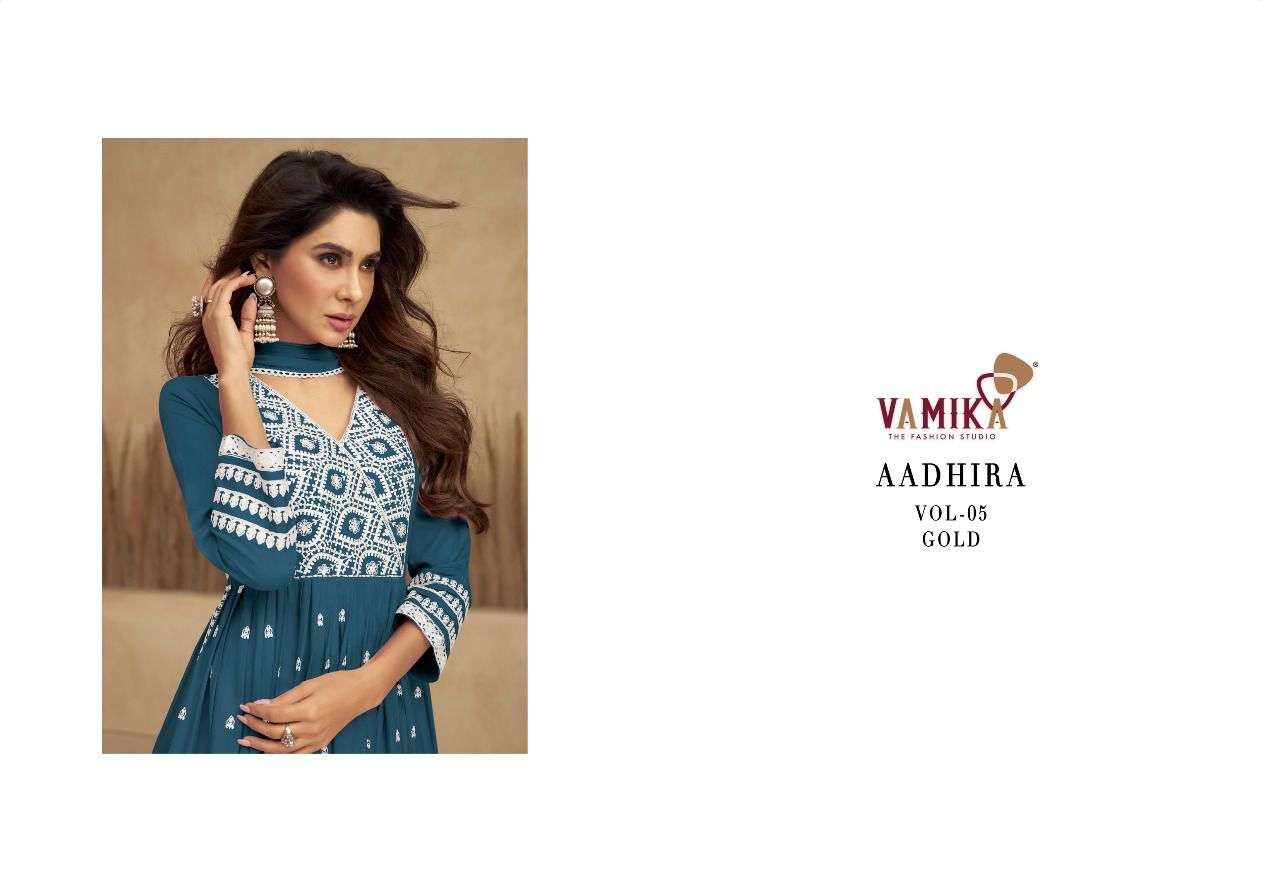 aadhira vol 5 gold by vamika designer lakhnowi work readymade nayra cut salwar kameez