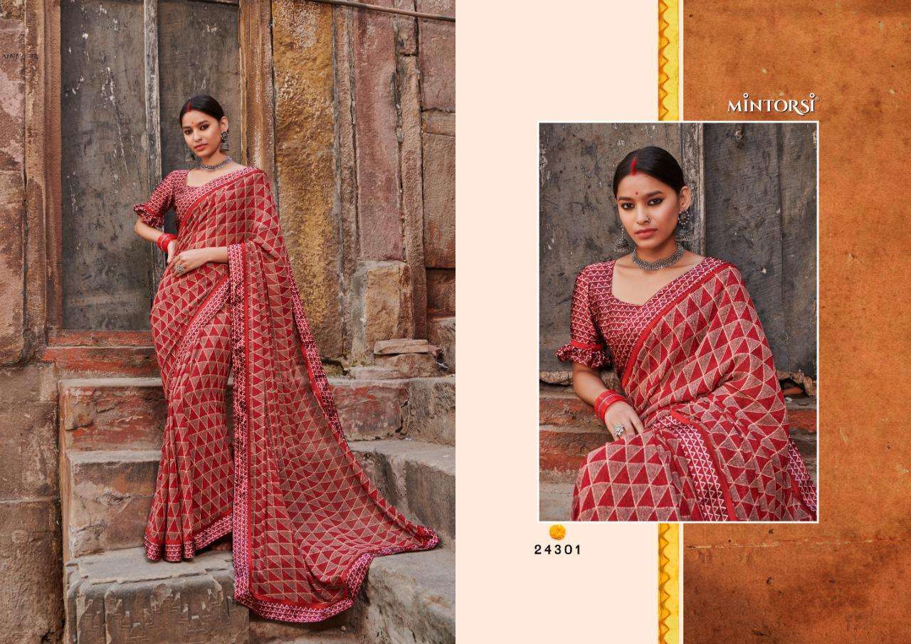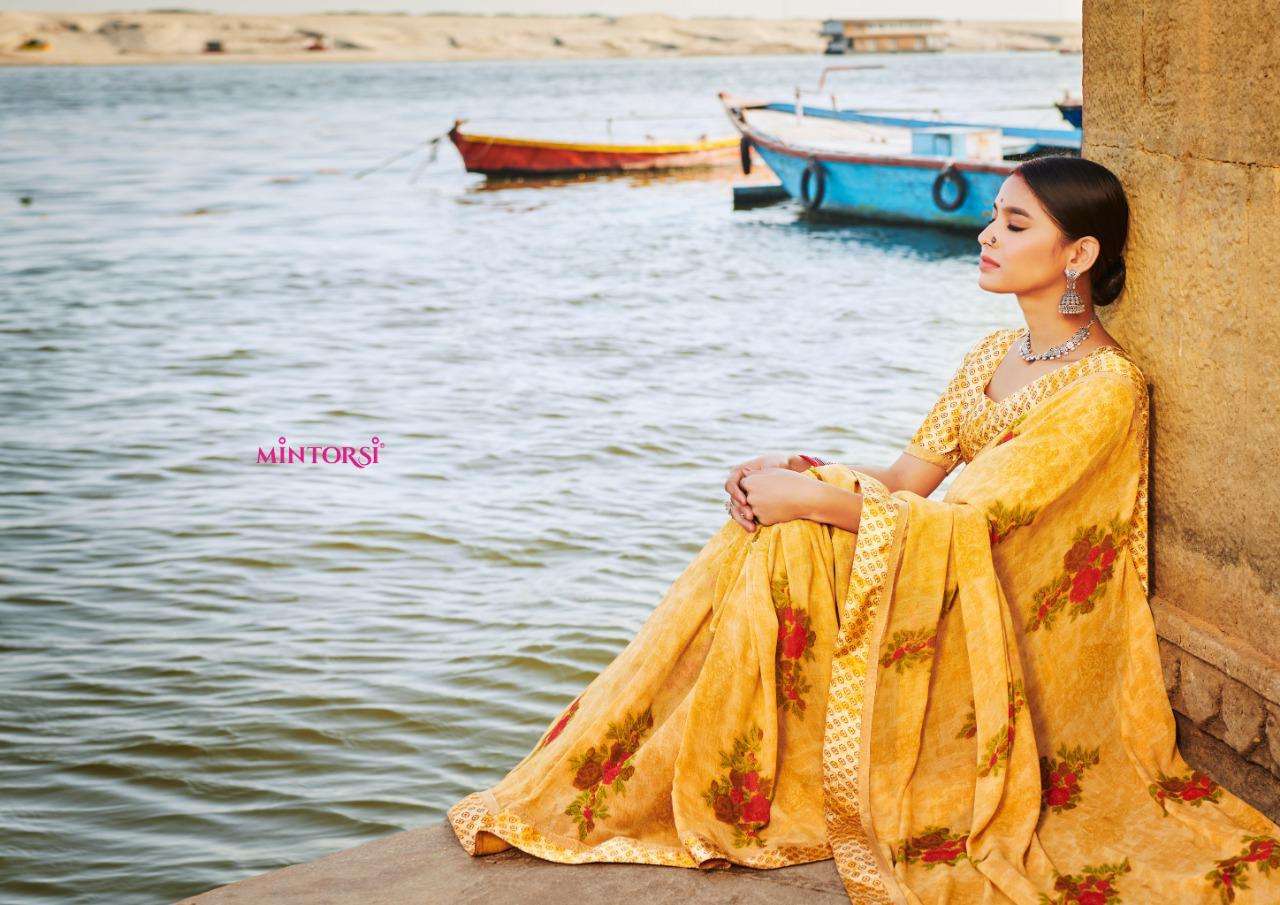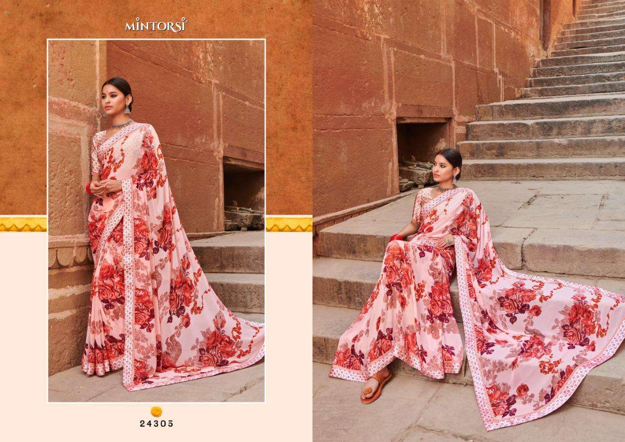 MINTORSI Designer party wear Sarees Cataloge Name - Aadhyatmik Fabric- Weightless With Satin Lace And Satin Blouse  Total Design - 10 Per pcs Rate -770+Gst extra . Delivery from today |