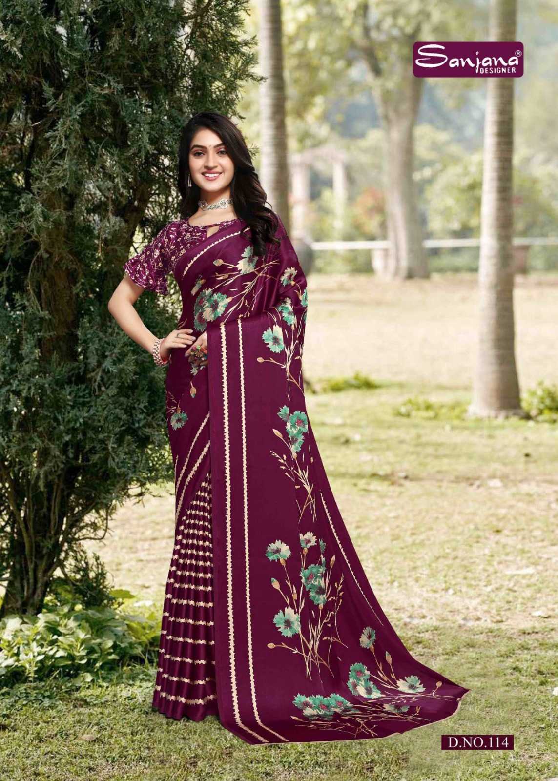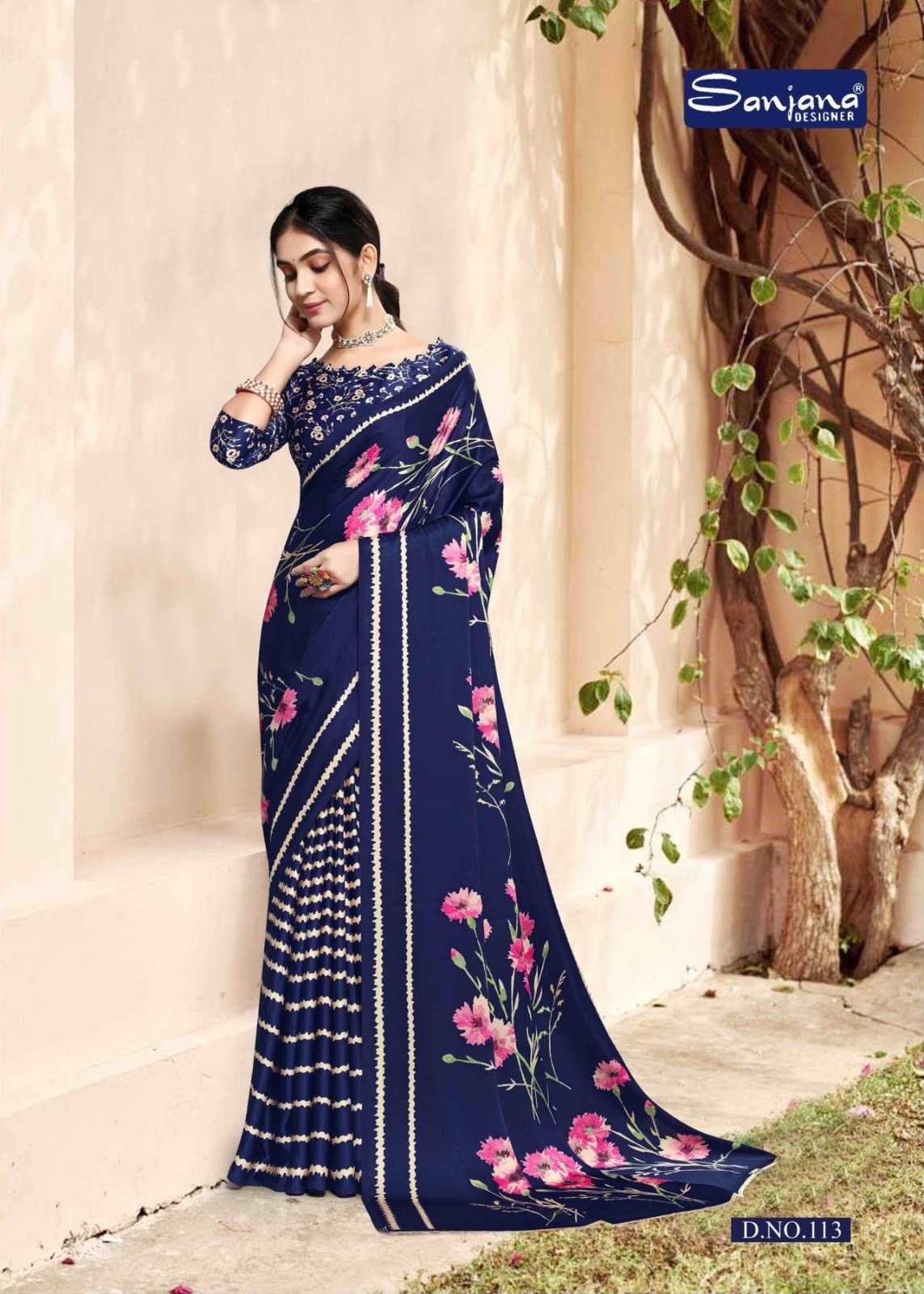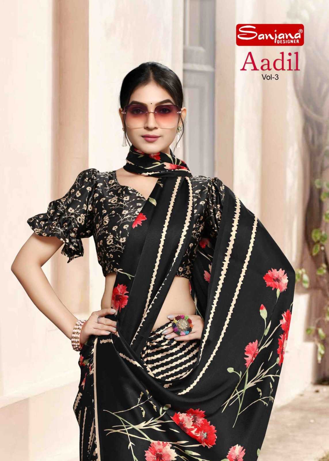 aadil vol 3 by sanjana designer fancy satin print sarees catalog