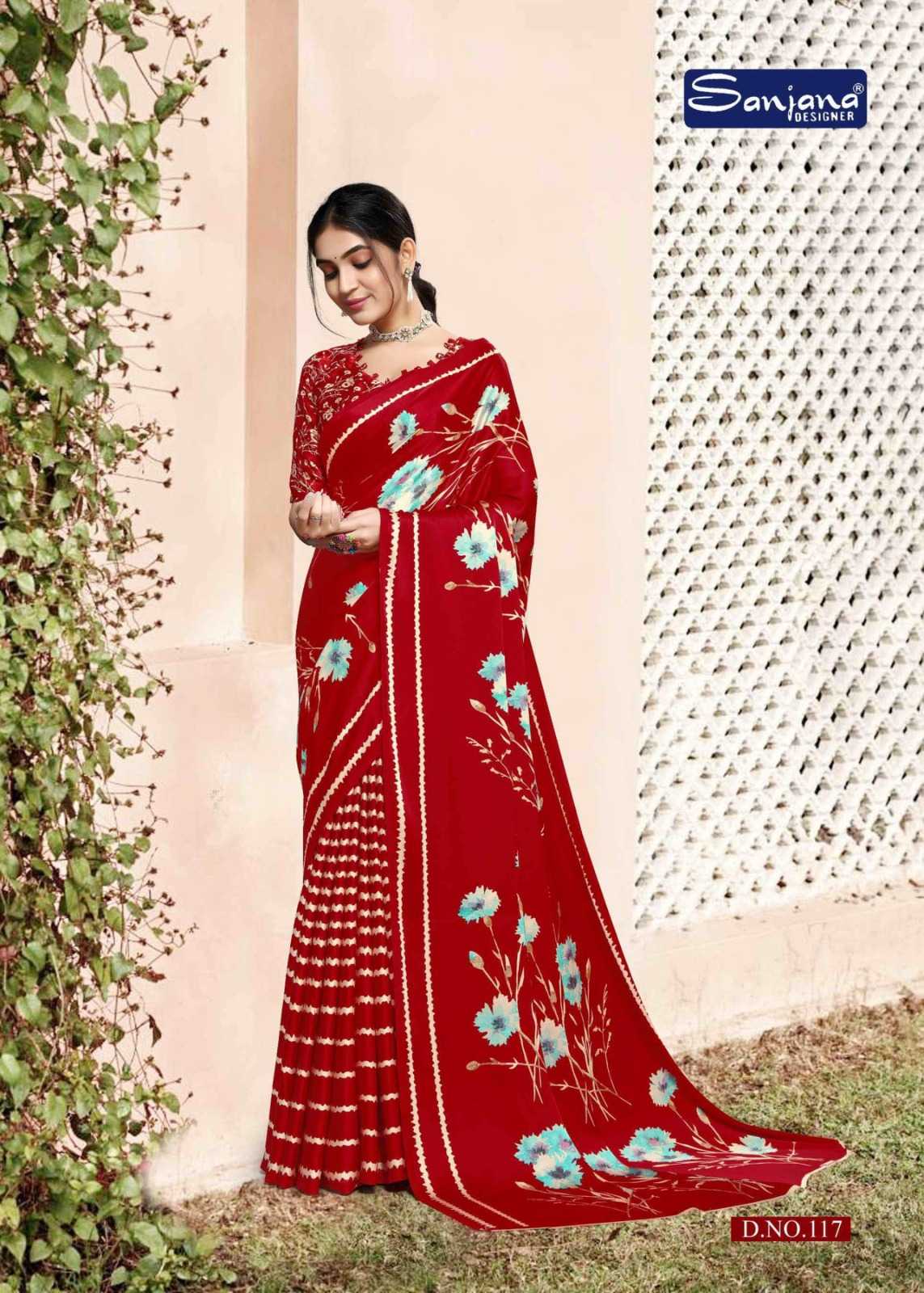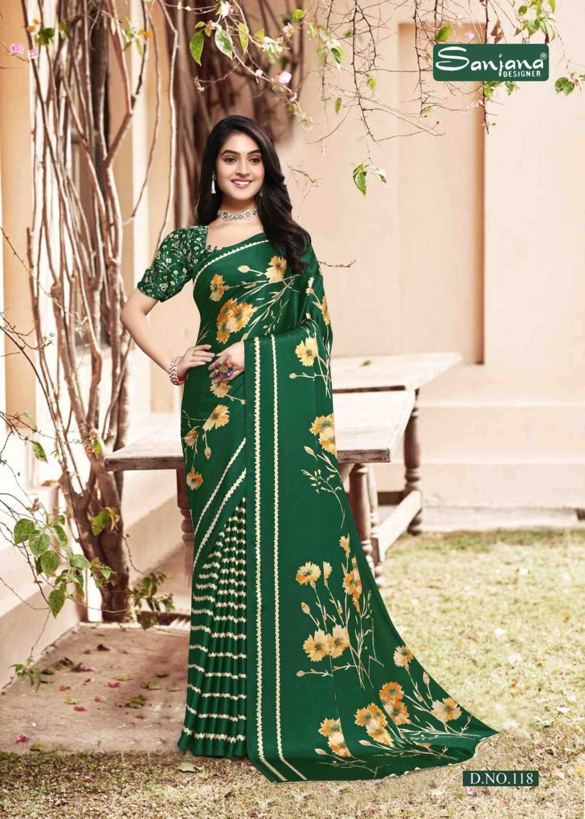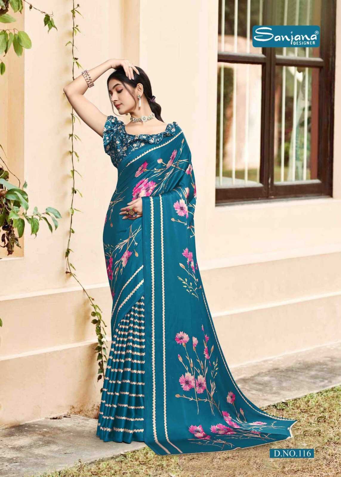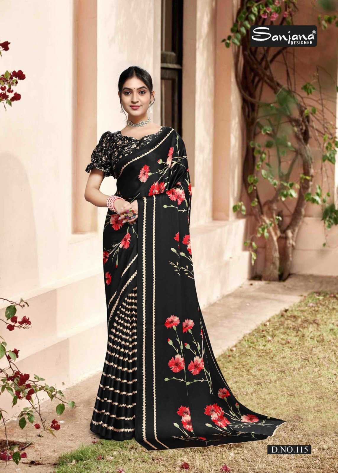 aadil vol 3 by sanjana designer fancy satin print sarees catalog