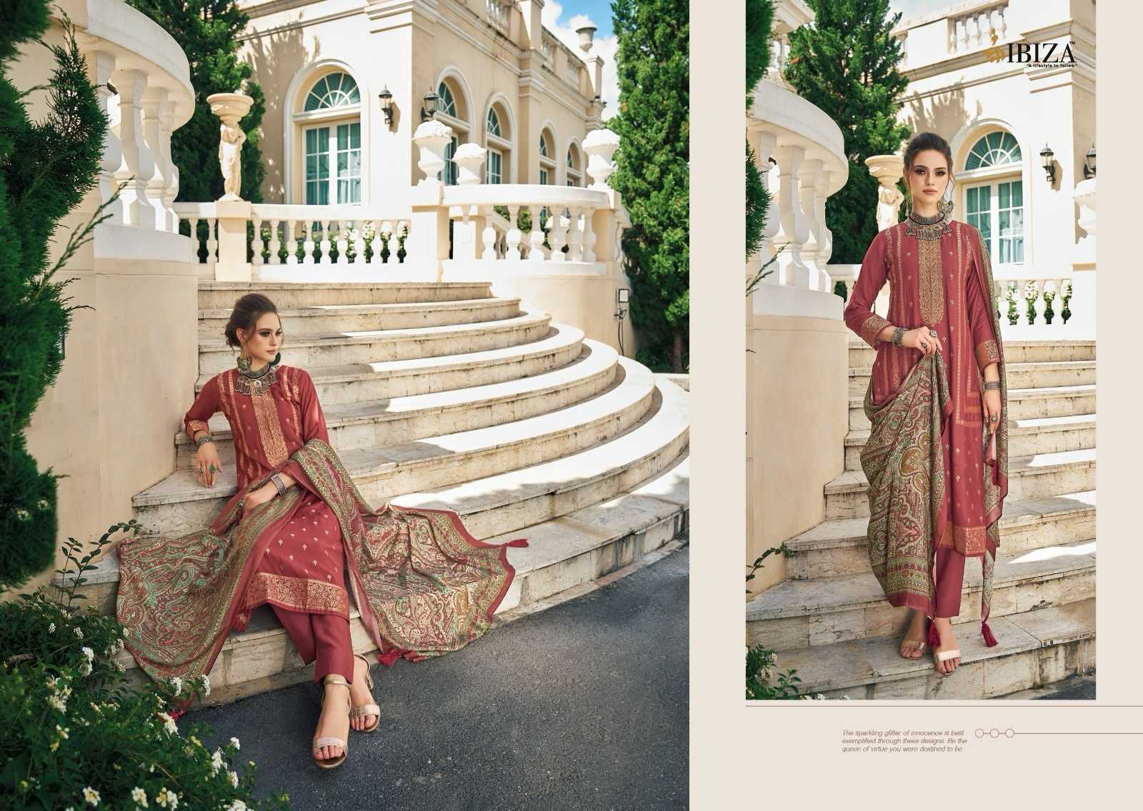 🙏🙏IBIZA🙏🙏 NEW SERIES *👗Top:-PURE VISCOSE PASHMINA JAQUARD WITH HANDWORK * BOTTOM:PURE PASHMINA 🔻Designs:- 6 PCS. Rate:-2095 Regards |