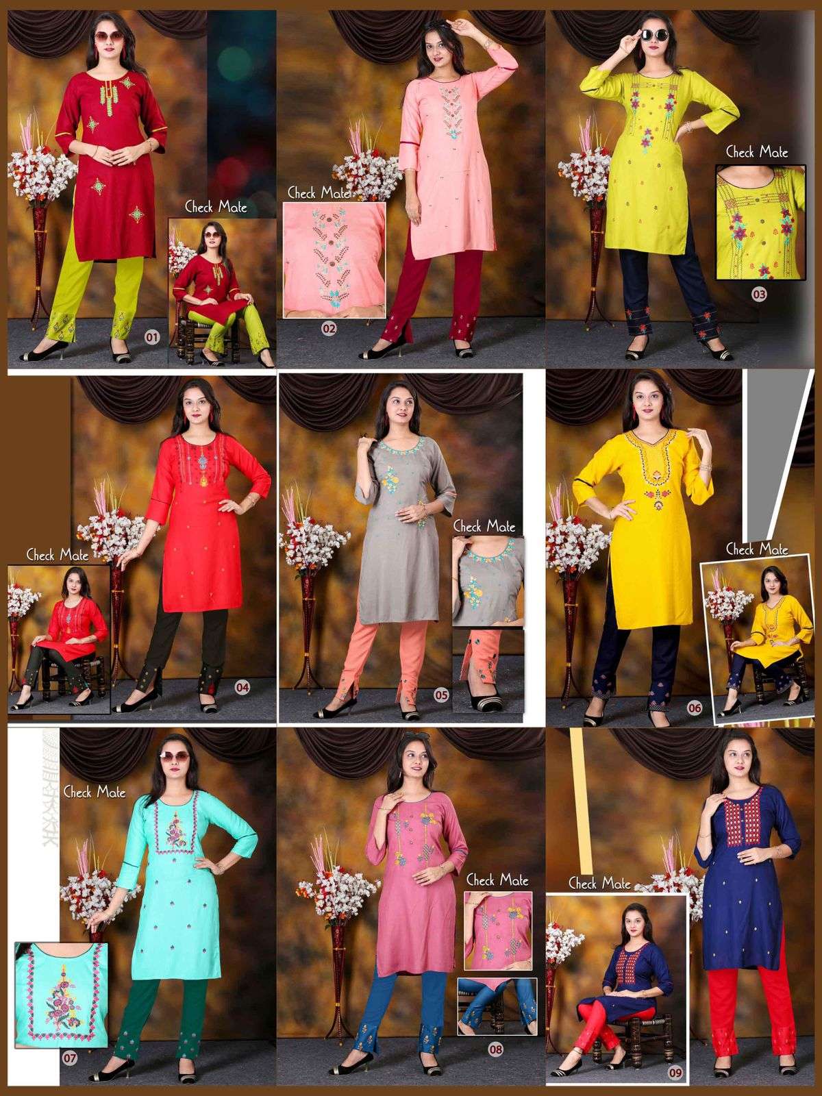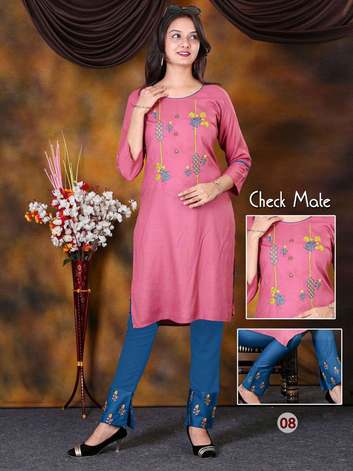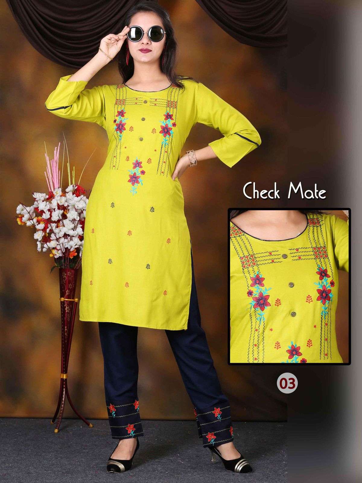 Catalogue name- Aagya CheckMate Vol.1 ✨Details 👗Fabrics Concept- Embroidered Kurti with Embroidered Pant Length - 40 🎗Size - L(40)XL(42)XXL(44) Rate 450/- Limited stock ... 🏃🏼🏃🏼🏃🏼hurryyy uppp....Book your order now...🤷♂🤷♂🤷♂ |