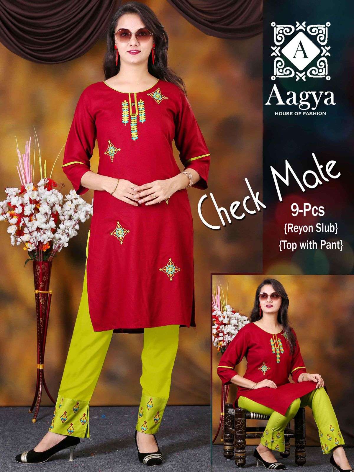 Aagya CheckMate Vol.1 HEAVY RAYON SULB KURTI WITH PANT CATALOG WHOLESALER BEST RATE