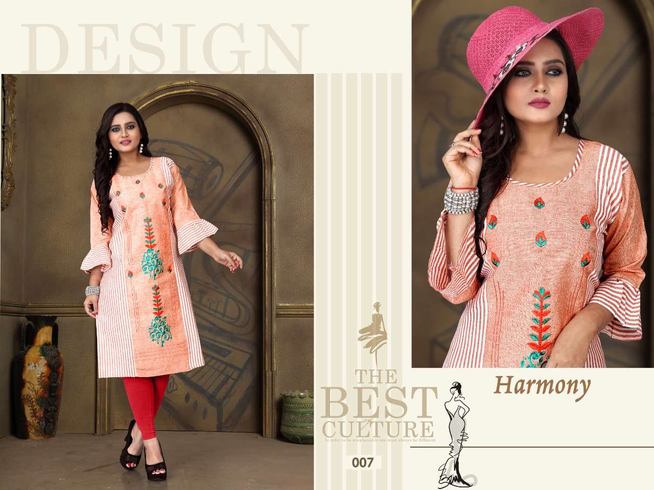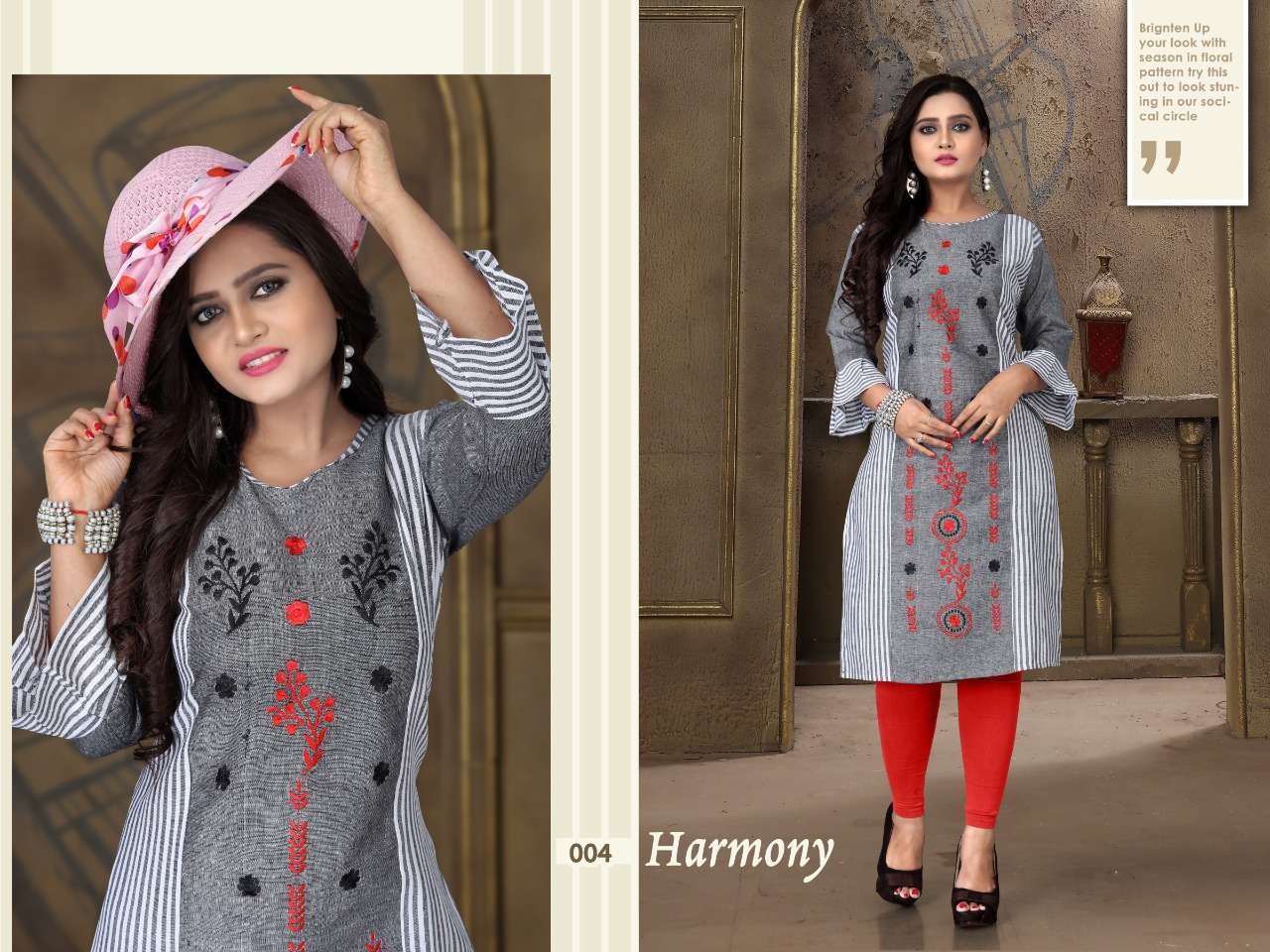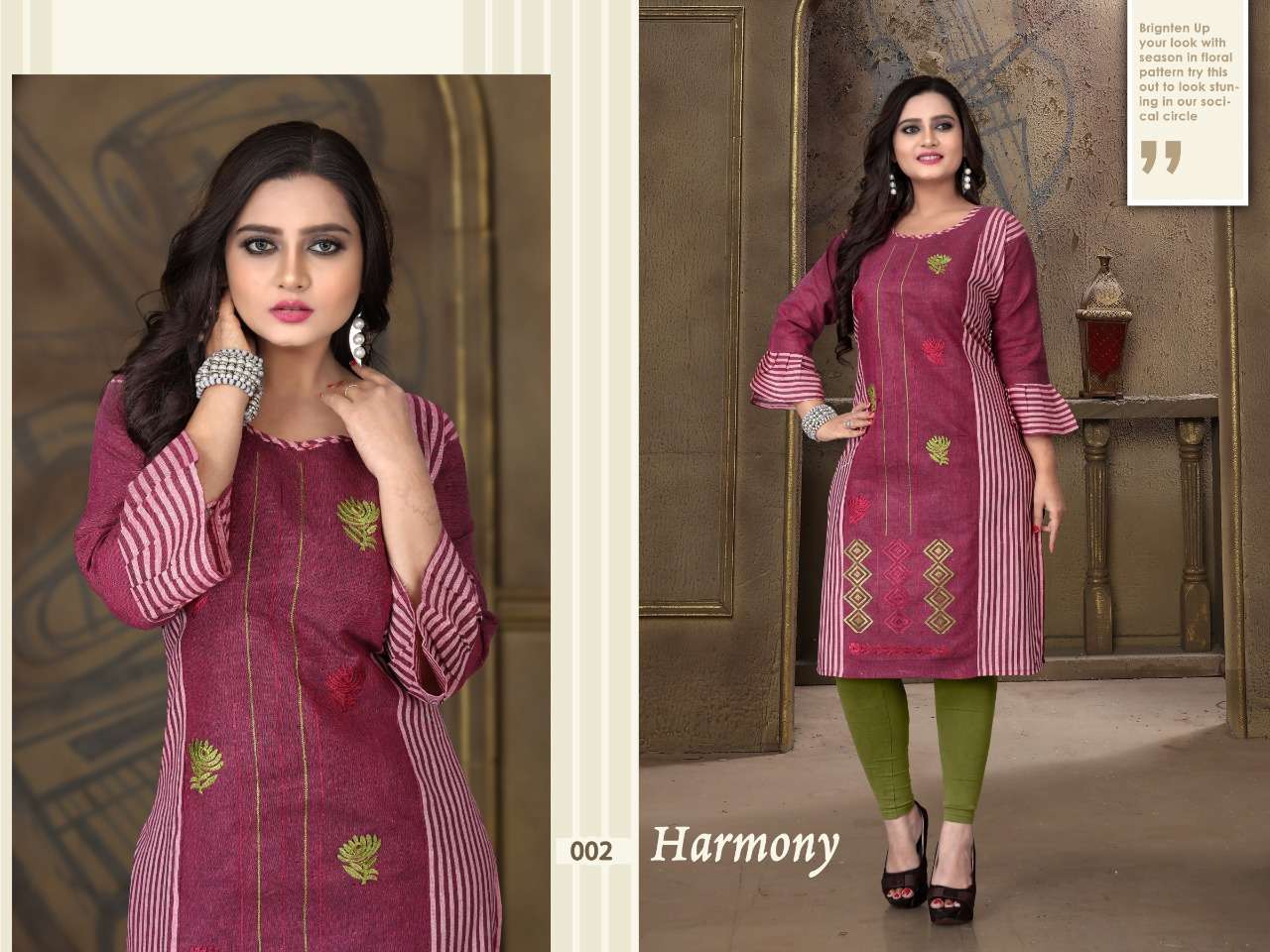 AAGYA Catalogue name-Â Â HARMONY Details Fabrics - Kurta - South Cotton With Embroidary Work Size - Â L(40)XL(42)XXL(44) Â Â Designs- 12 pcs Rate - 210/- Limited stock ... |