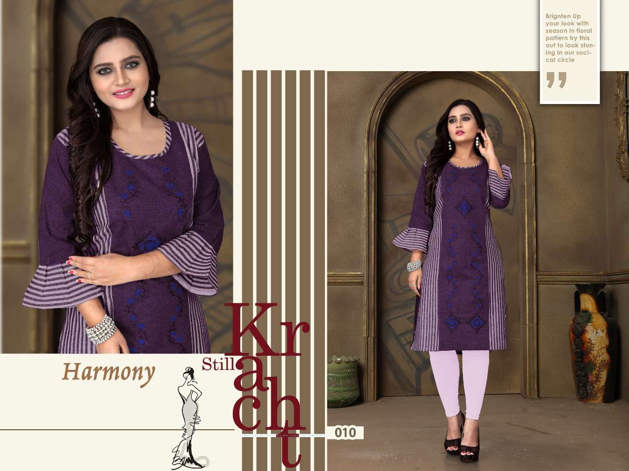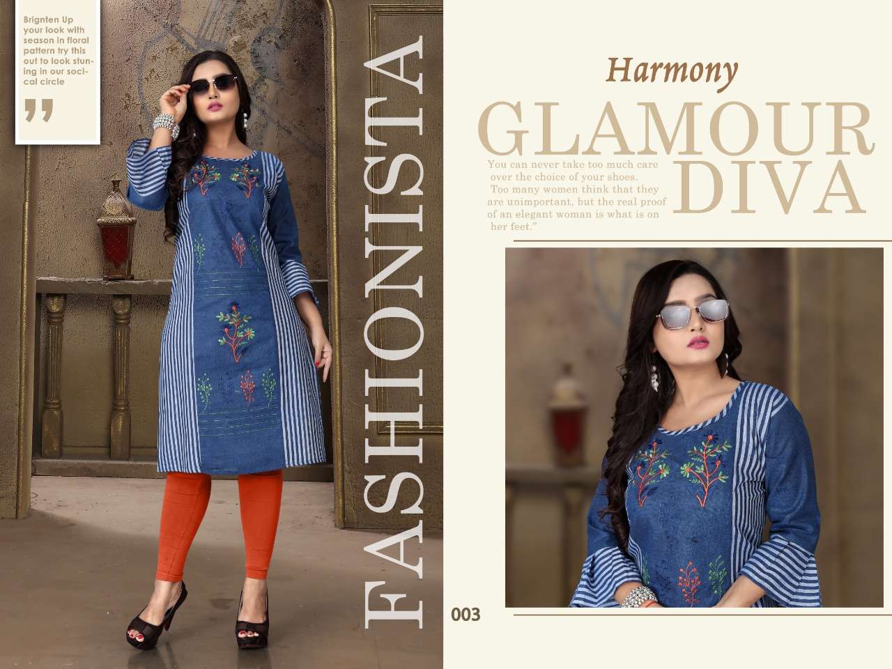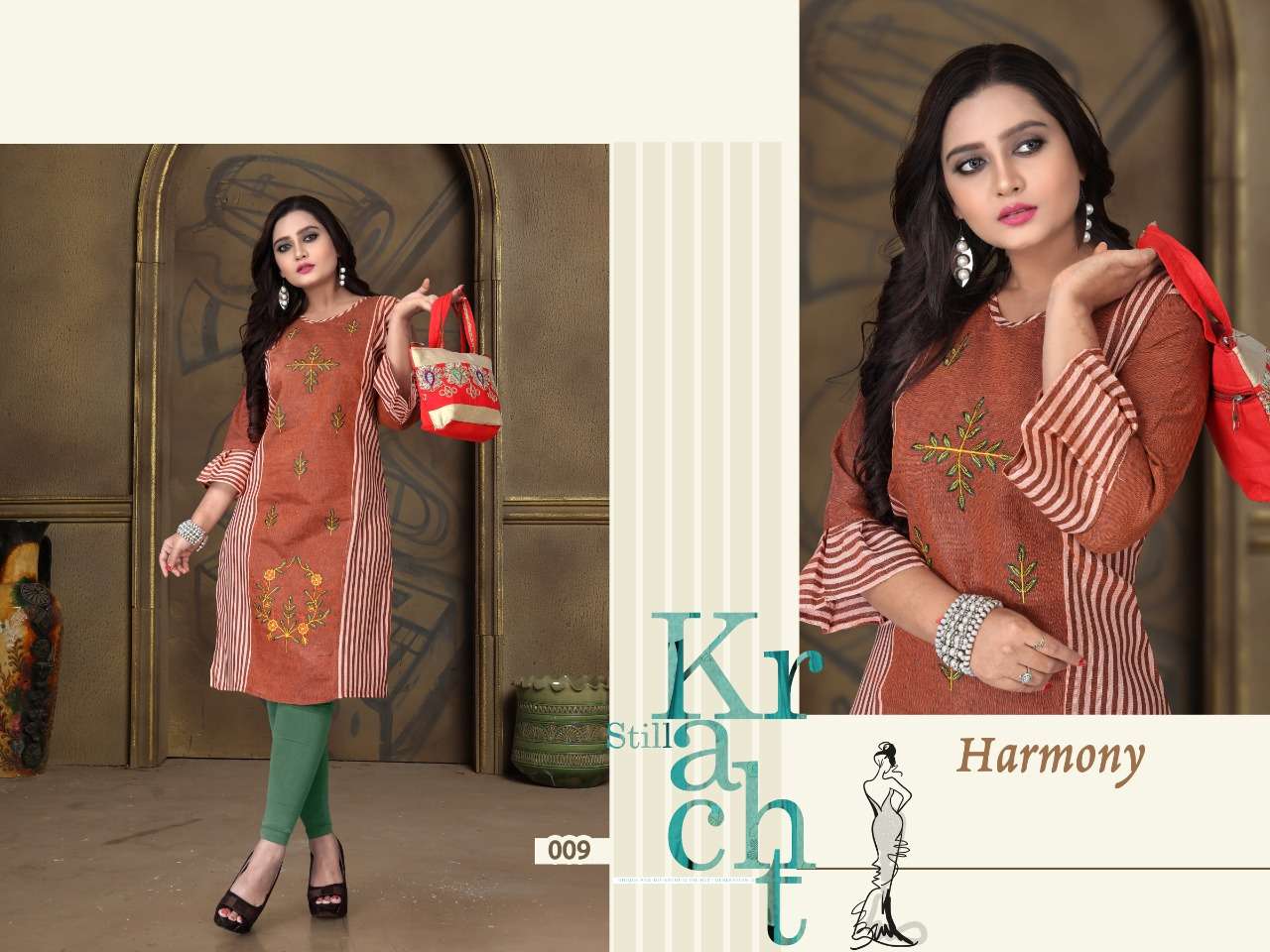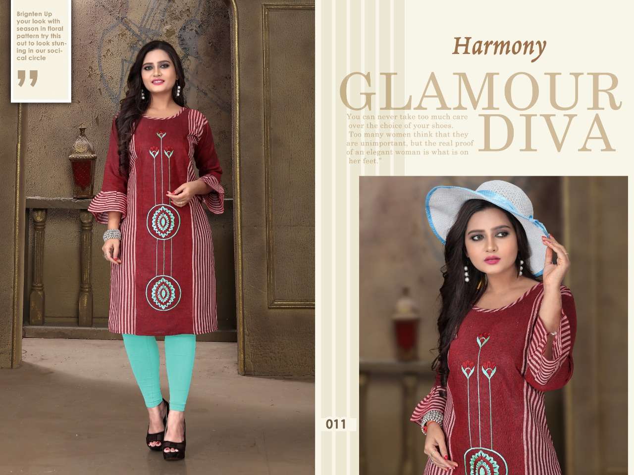 AAGYA Catalogue name-Â Â HARMONY Details Fabrics - Kurta - South Cotton With Embroidary Work Size - Â L(40)XL(42)XXL(44) Â Â Designs- 12 pcs Rate - 210/- Limited stock ... |