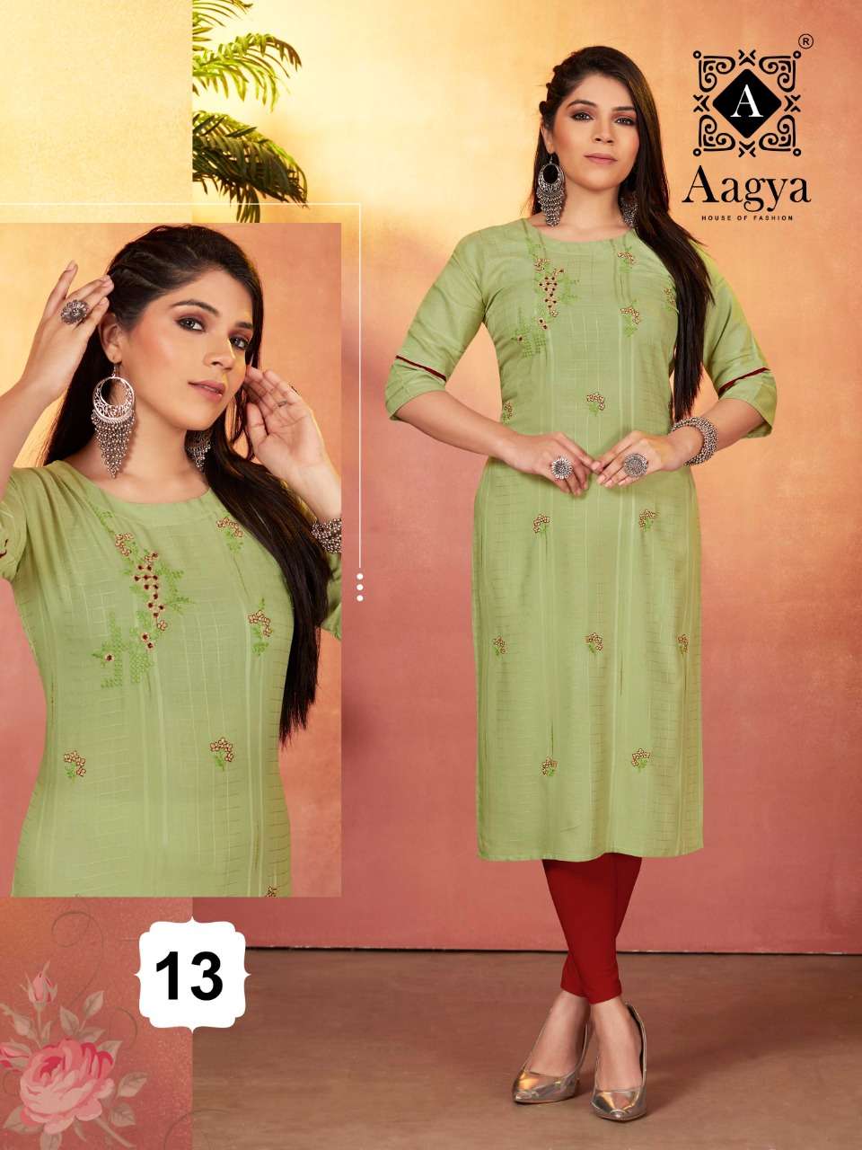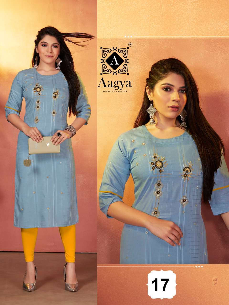 Aagya Kurti Presents Latest Collection Launched on 05-01-2023. Presenting Beautiful collection of 8 PCS with Full Stitched M,L,XL,XXL .