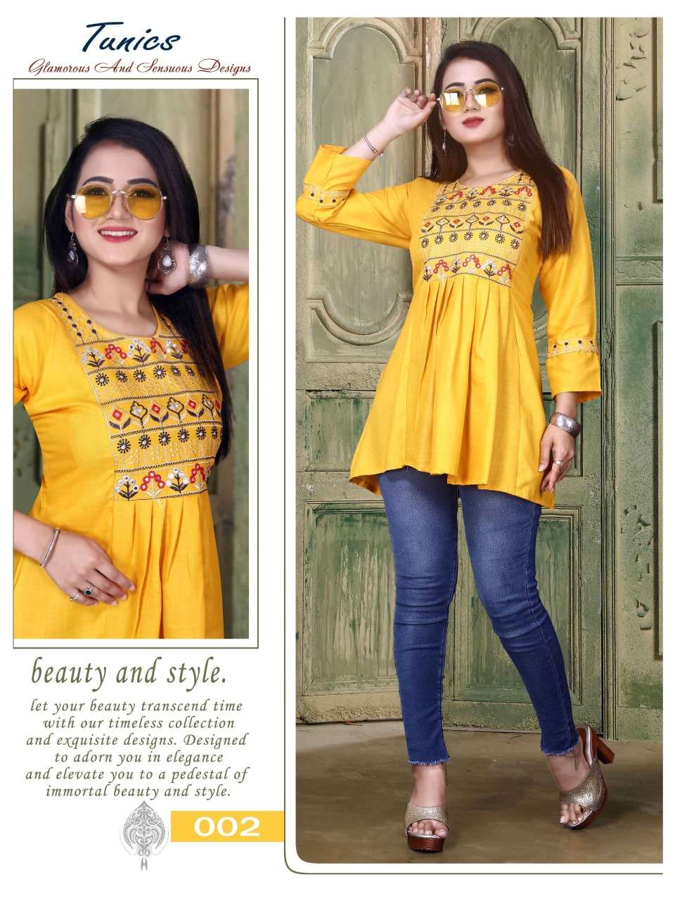 AAGYA BY RUBY CREATION Catalogue name- TUNICS ✨Details 👗Fabrics - Concept- Reyon Slub Embriodery Concept Short top 🎗Size - L(40)XL(42)XXL(44) ☣Designs- 8 pcs Limited stock ... 🏃🏼🏃🏼🏃🏼hurryyy uppp....Book your order now... |