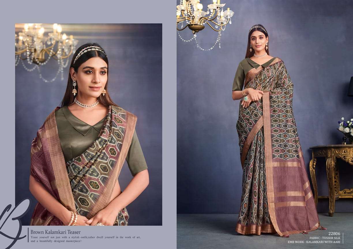 BRAND NAME : MAHOTSAV CATALOG : MOHMANTHAN-22800 SERIES AAHANA PRICE :- 2945/- + 5% GST EXTRA SAREE FABRIC -: tusser Silk BLOUSE FABRIC:- BROCADE WORK : Floral Printed with Sequence Embroidered BLOUSE TYPE : UNSTITCHED |