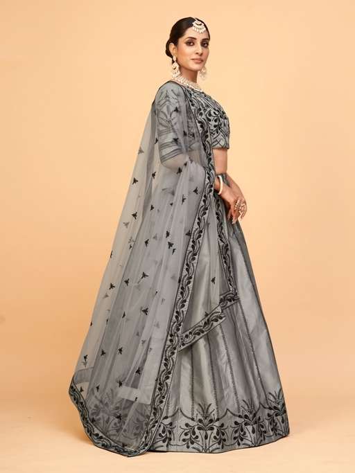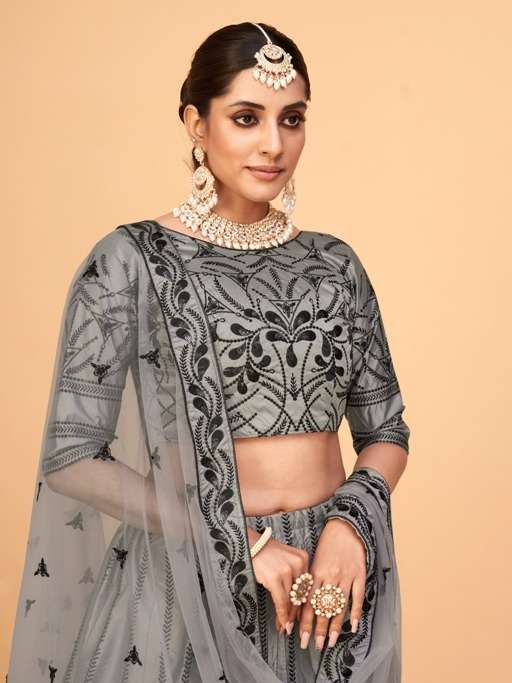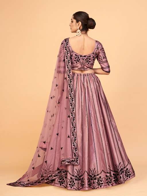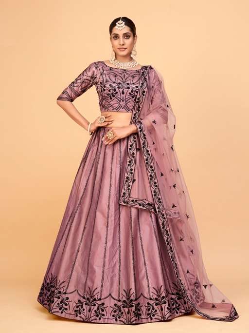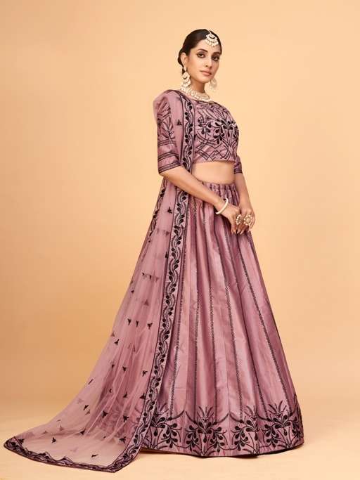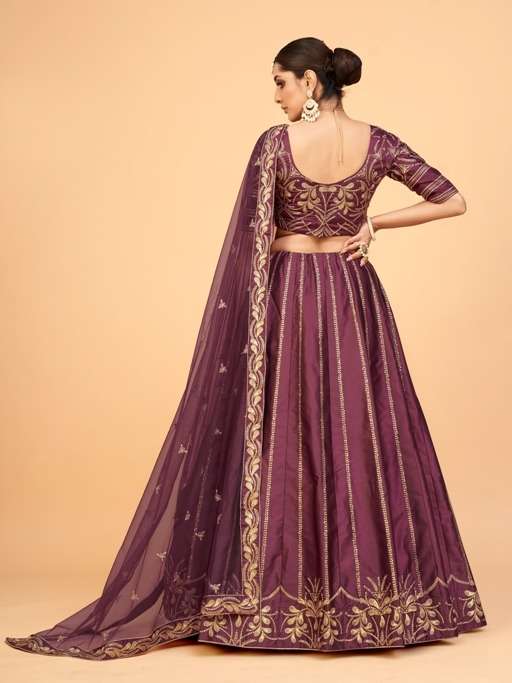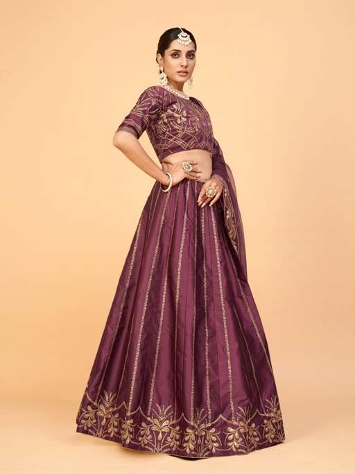 aahvan vol 1 designer lehenga choli in ferrari silk semi stitched