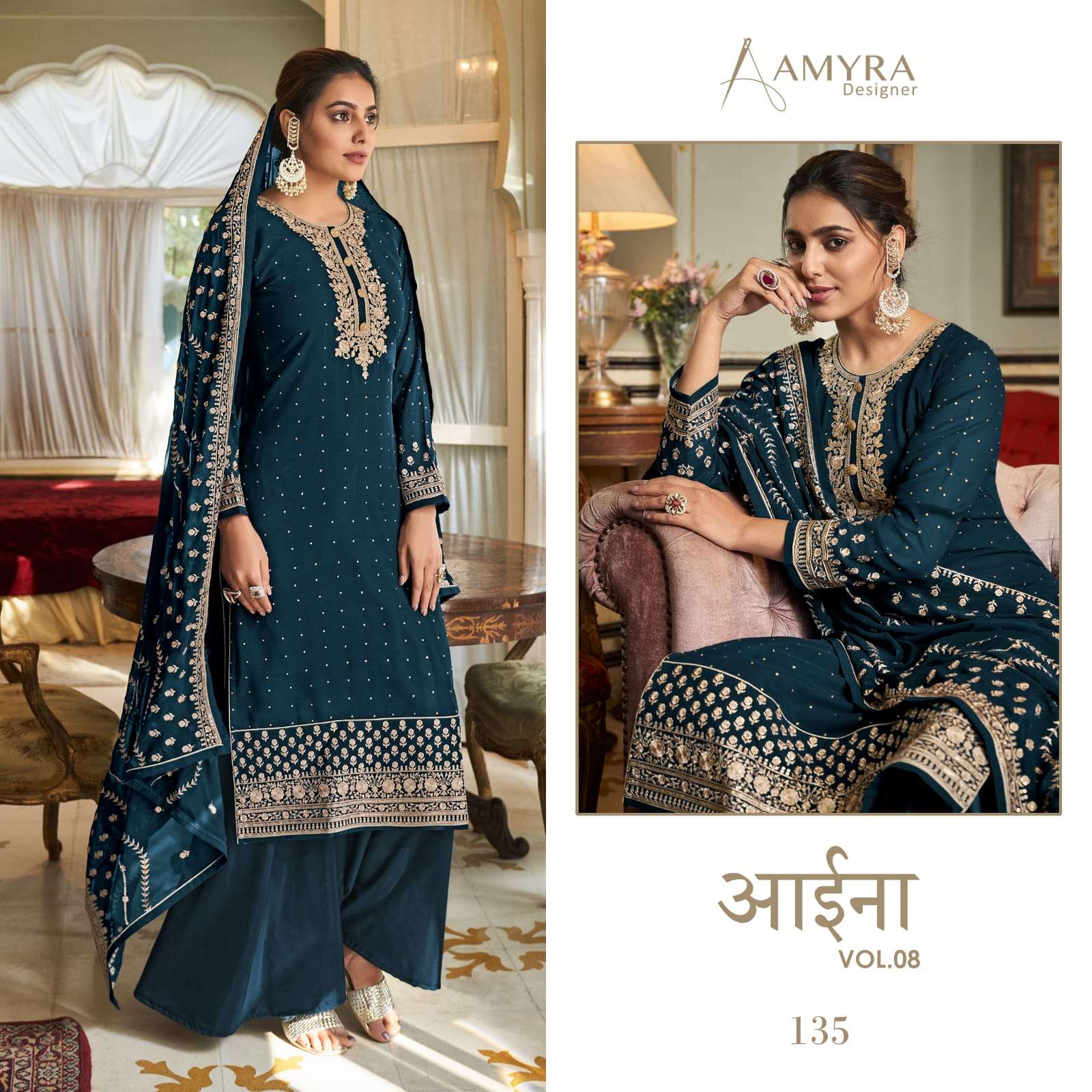 ❣Amyra Designer.❣ Presents ”आईना”vol 8 🔺Dupatta: Heavy blooming georget with heavy embroidery 🔺Bottom-Inner:- Dull Santoon 🔺Designs 04 🔺Special- Rich & Beautiful colours 🔺Prize-@ 1949/-+ Gst |
