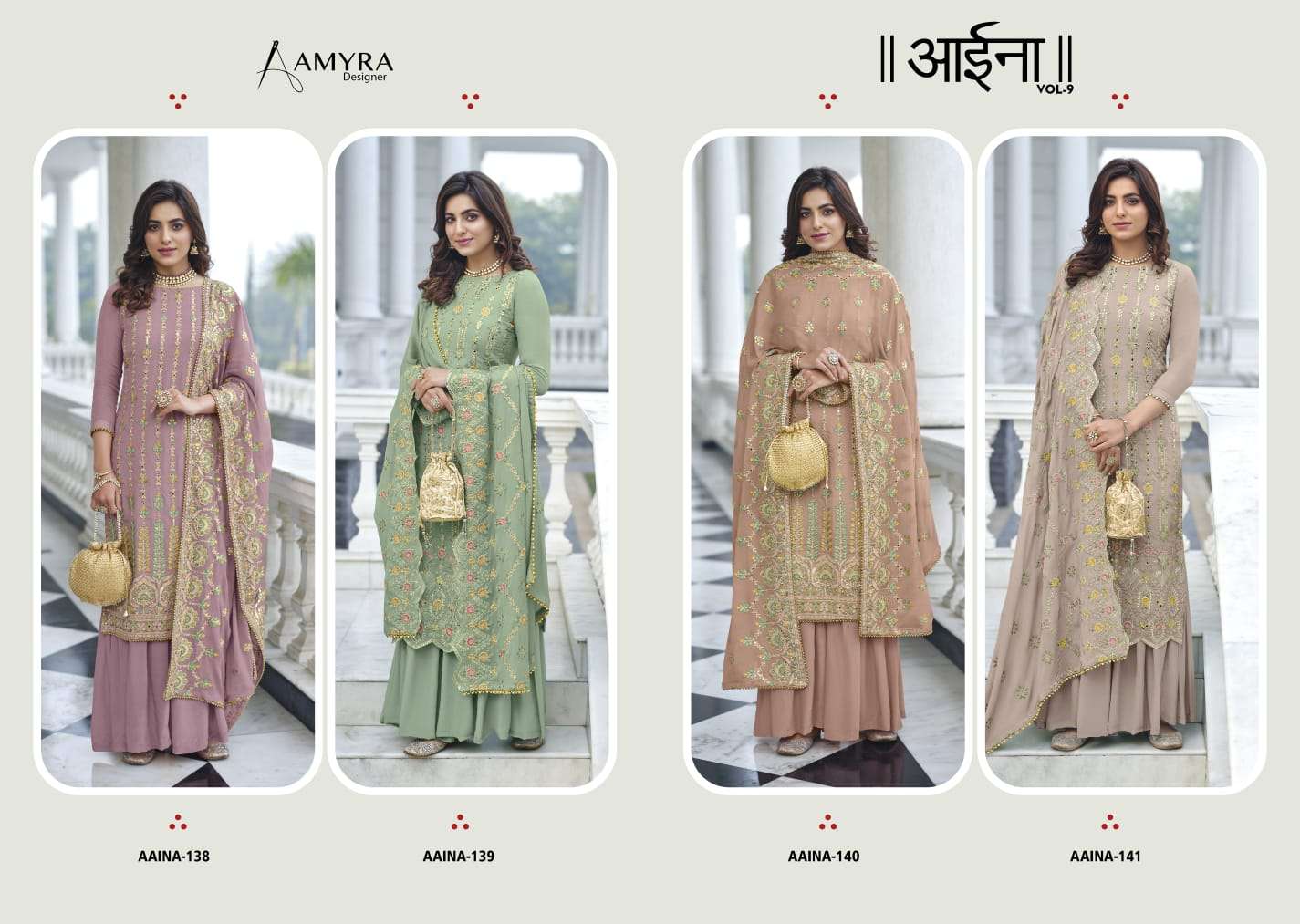 Amyra Designer Catlouge name Aaina vol-9 Heavy dull santoon No of designs -04 Rate-2075/- Gst extra Dispatch-next 2Days |