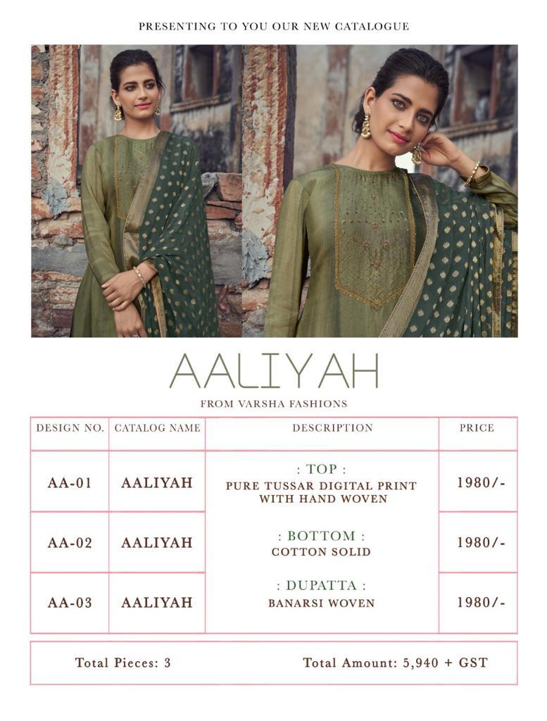 Aaliyah Pure Tussar digital prints with handwork with banarasi woven Dupatta Price - 1980/- Pc - 03 Delivery 5-6 Days |
