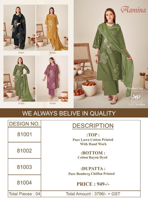 👗 VP 🔥🧣 AAMINA🧣🔥 👖Bottom:COTTON RAYON DYED cut- 3 mtr (approx.) 🧣Dupatta:PURE BEMBERG CHIFFON PRINTED Suits - 4 |