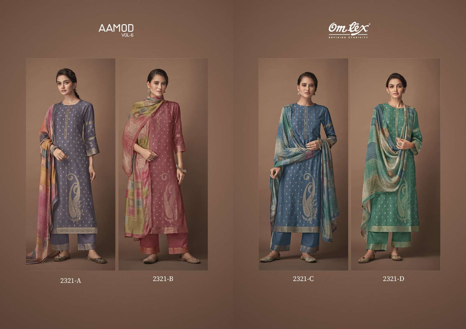 aamod vol 6 by omtex festive wear salwar kameez with digital print dupatta collection