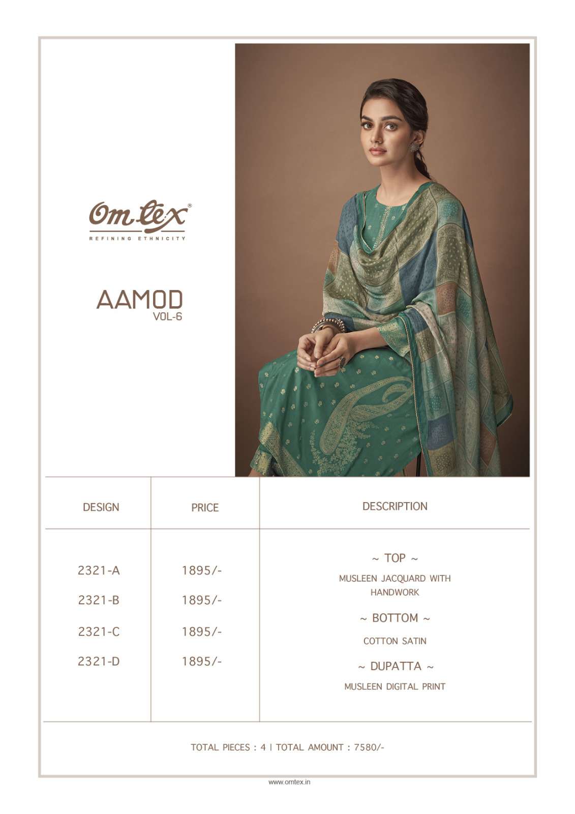 Om Tex Presents Latest Collection Launched on 23-06-2023. Presenting Beautiful collection of 4 PCS with Unstitched .