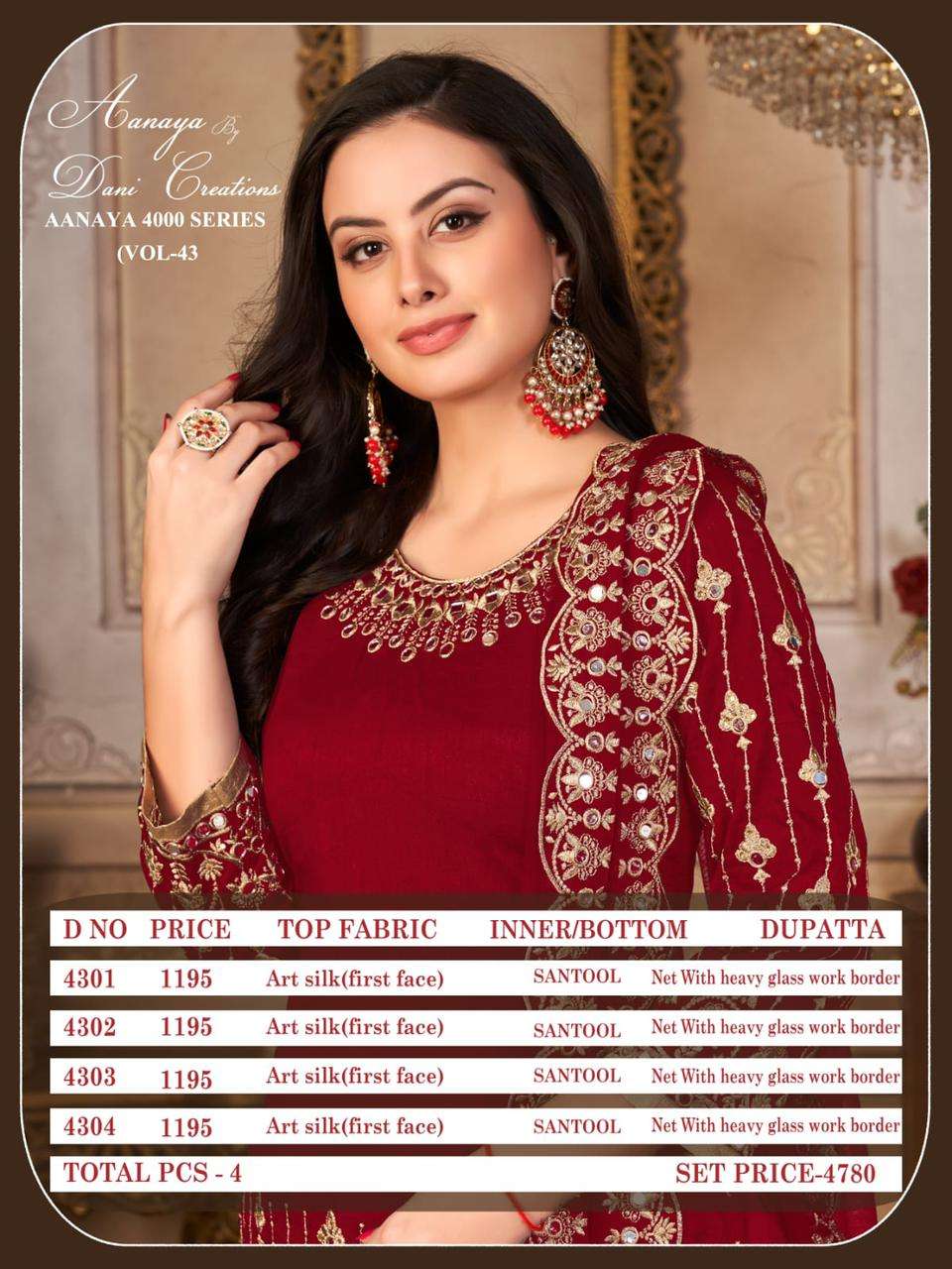 aanaya vol 143 by dani creation art silk patiyala fancy salwar suit