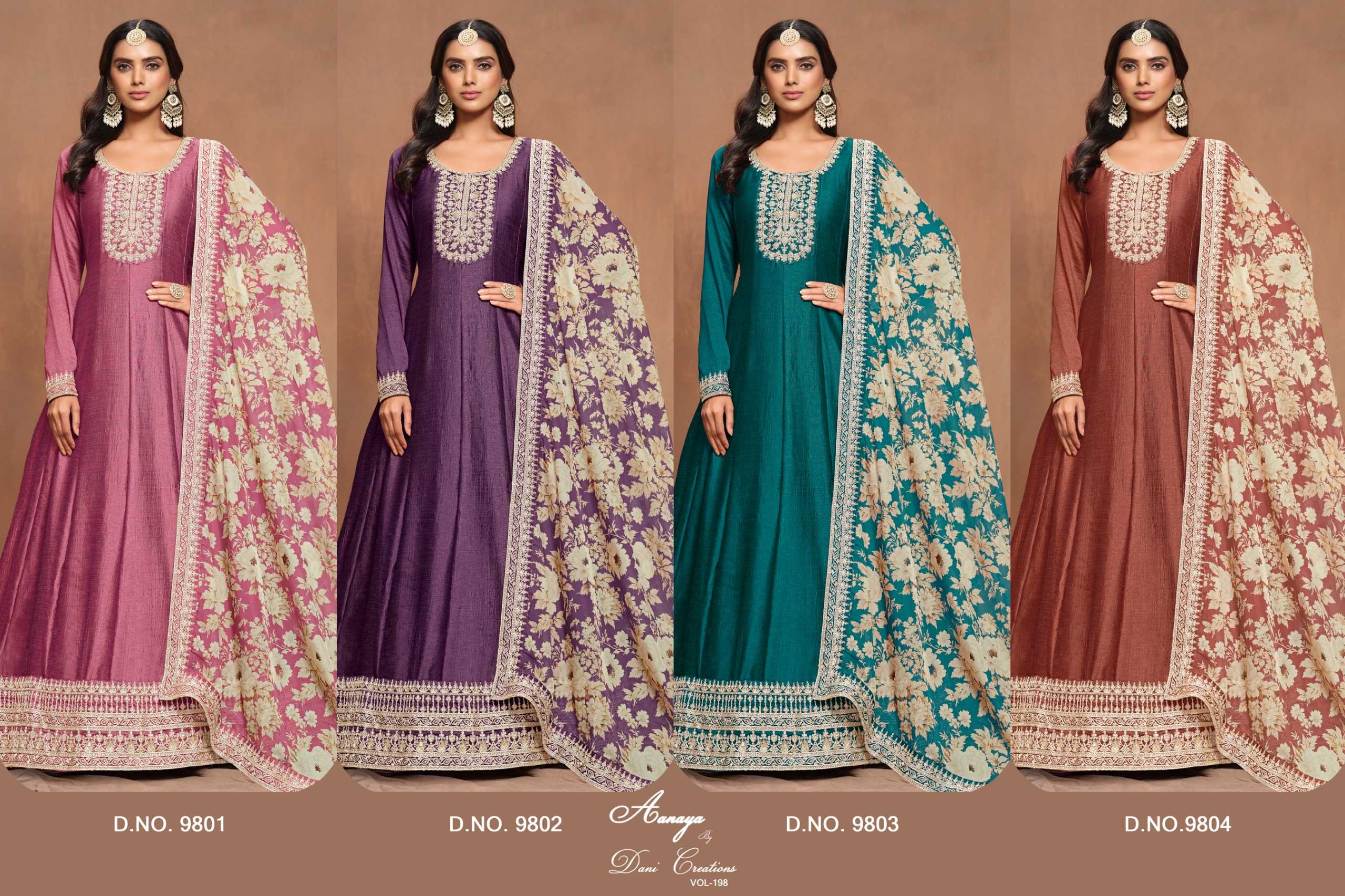 aanaya vol 198 by twisha art silk latest party wear unstitch gown set