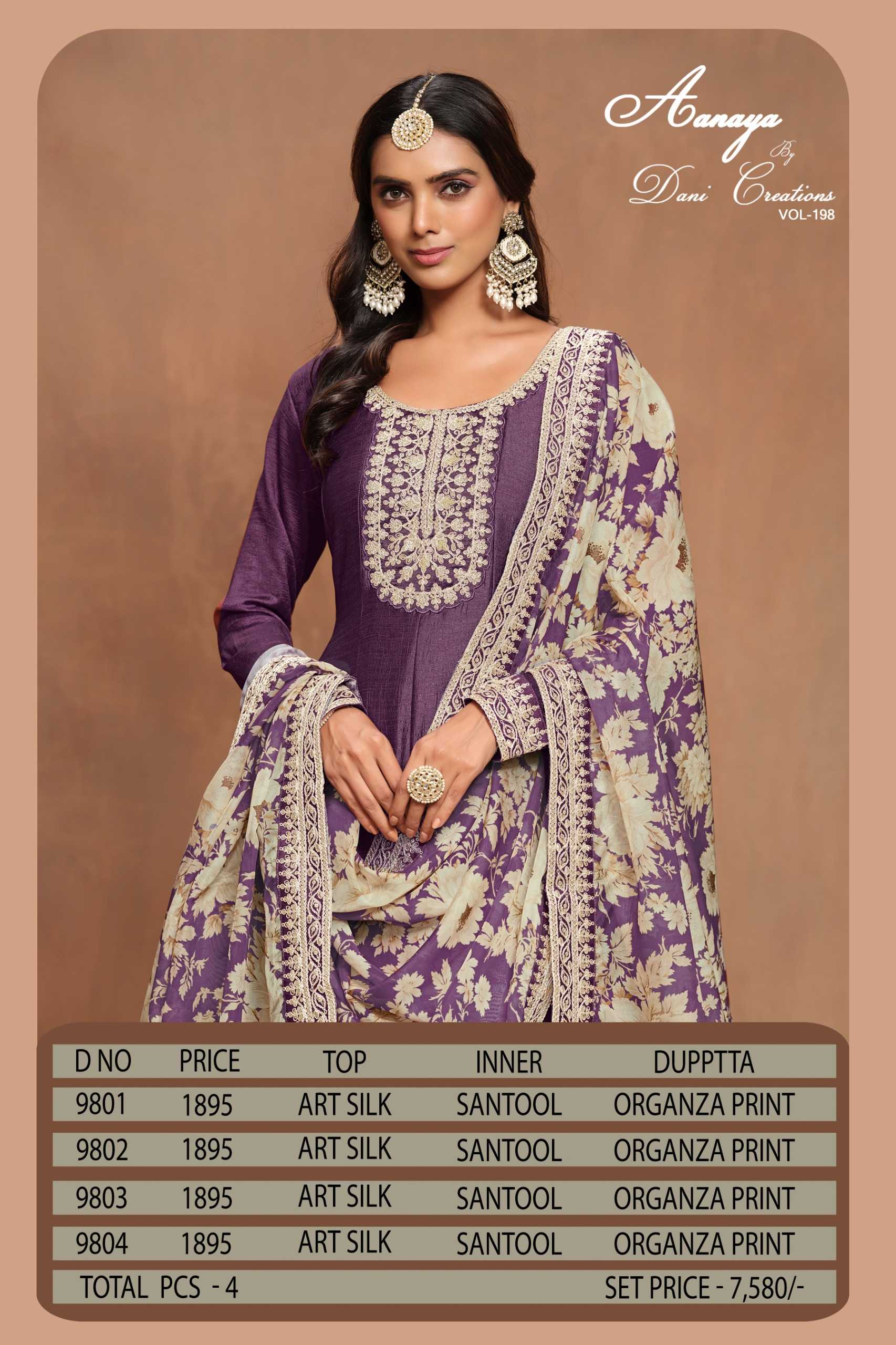 Hello Sir, Brand _ TWISHA 🌹 AANAYA VOL 198 🌹 👗Top. – ART SILK 🇬🇲inner- SANTOOL 🇫🇲 Dupatta – ORGANZA PRINT Price :- 1895/- Per pcs Dispatch date 30/08/2024 NOTE:- This Product Can Stitch Up To 44" USP-FRONT AND BACK BOTH SIDE WORK GST 12% EXTRA |