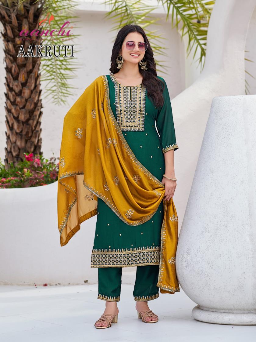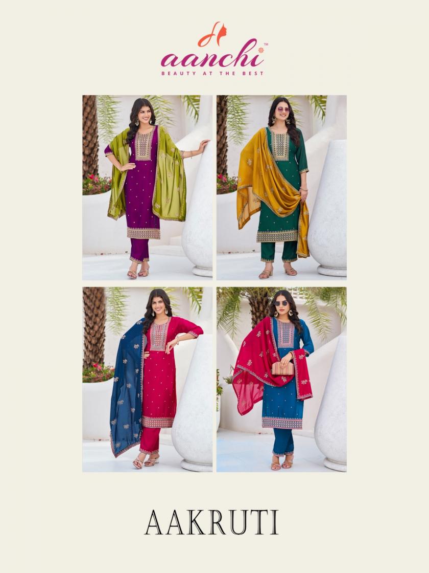 aanchi aakruti fancy vichitra silk fullstitch 3pcs set straight concept