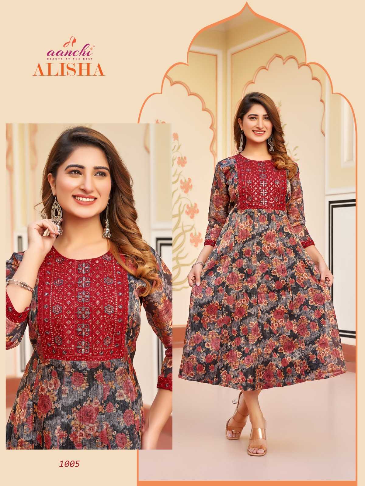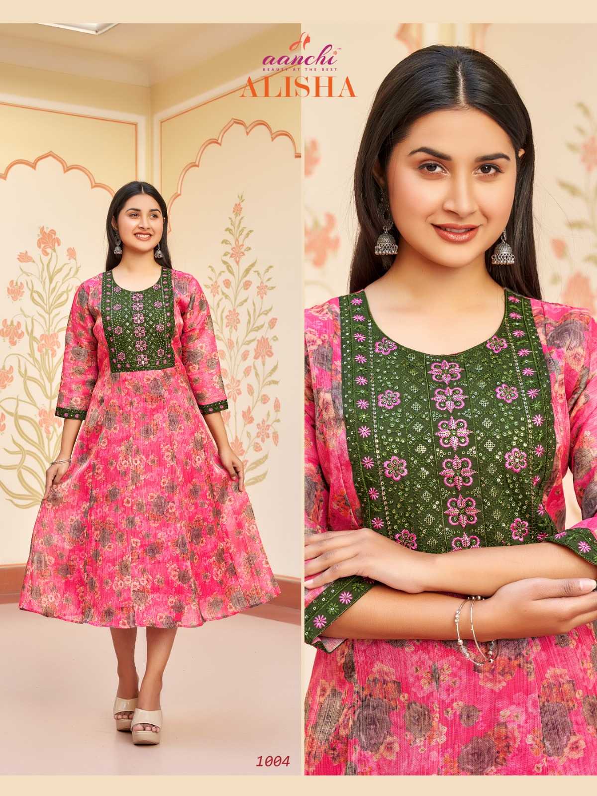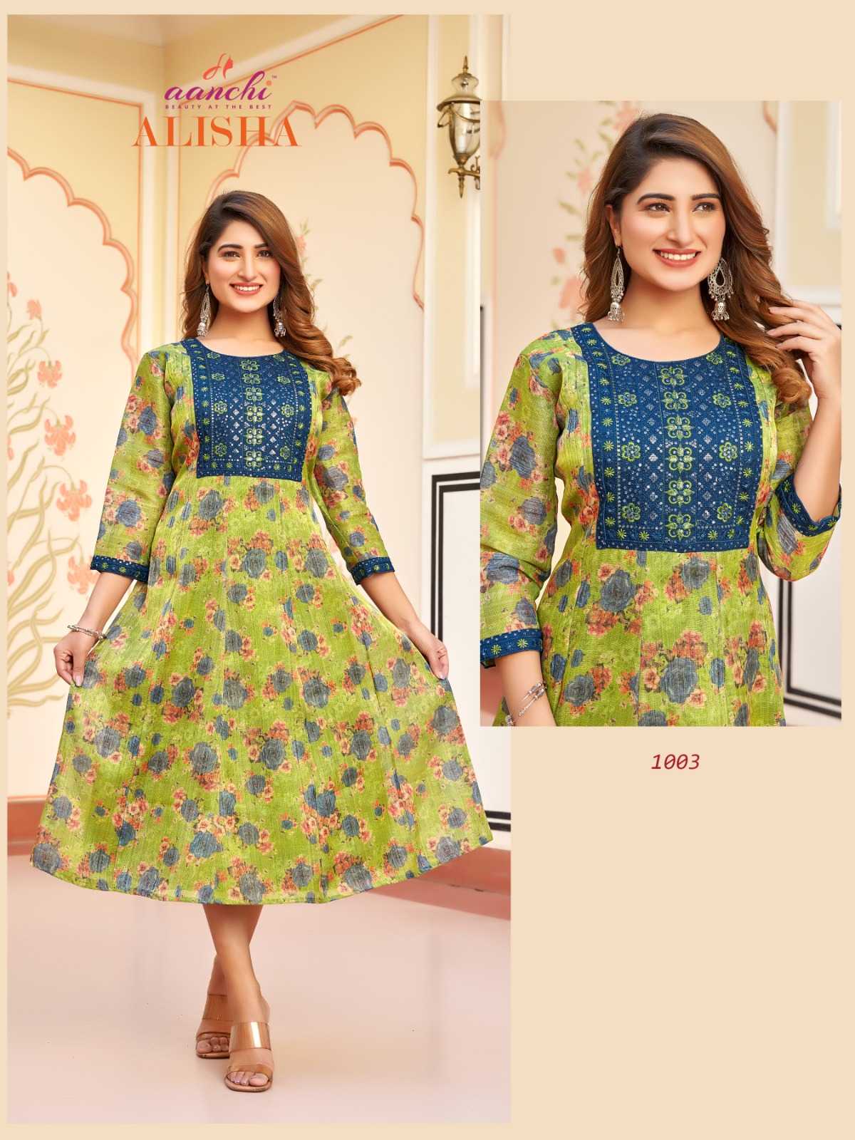 aanchi alisha stitched kali style flair long kurti