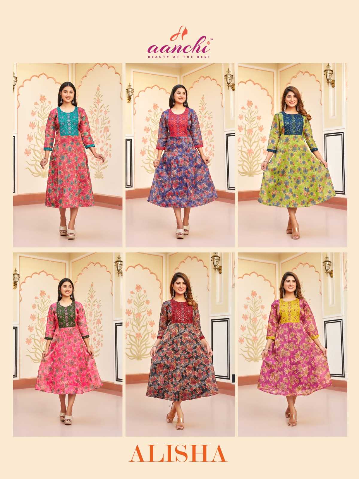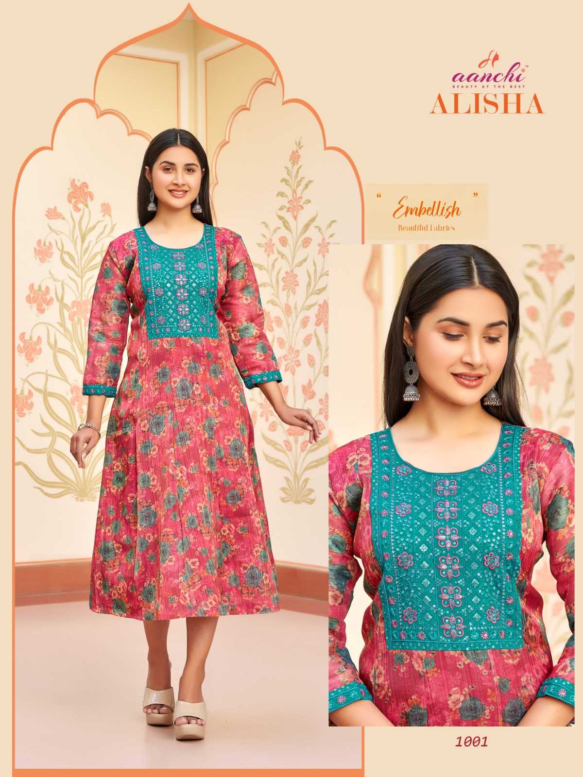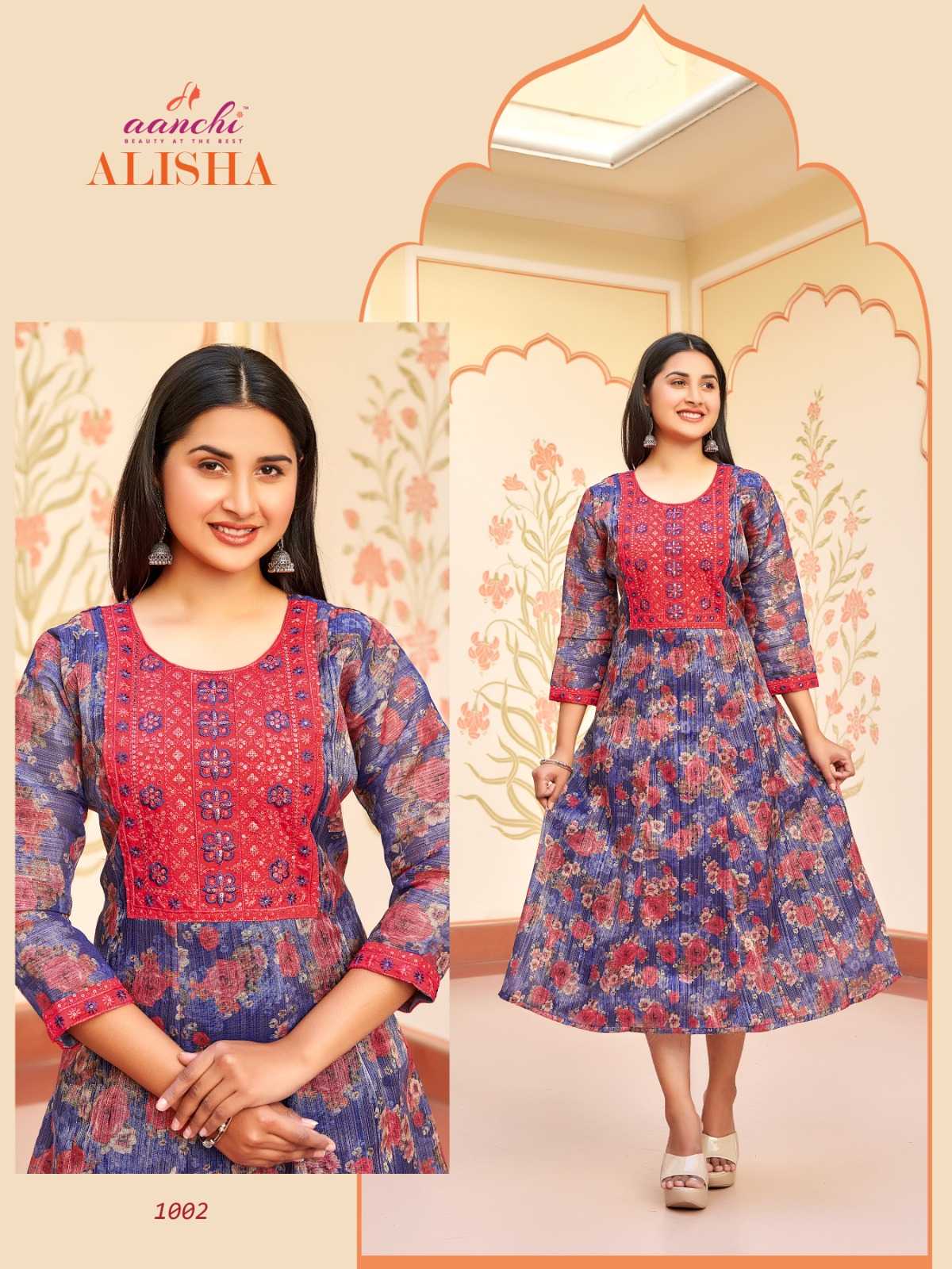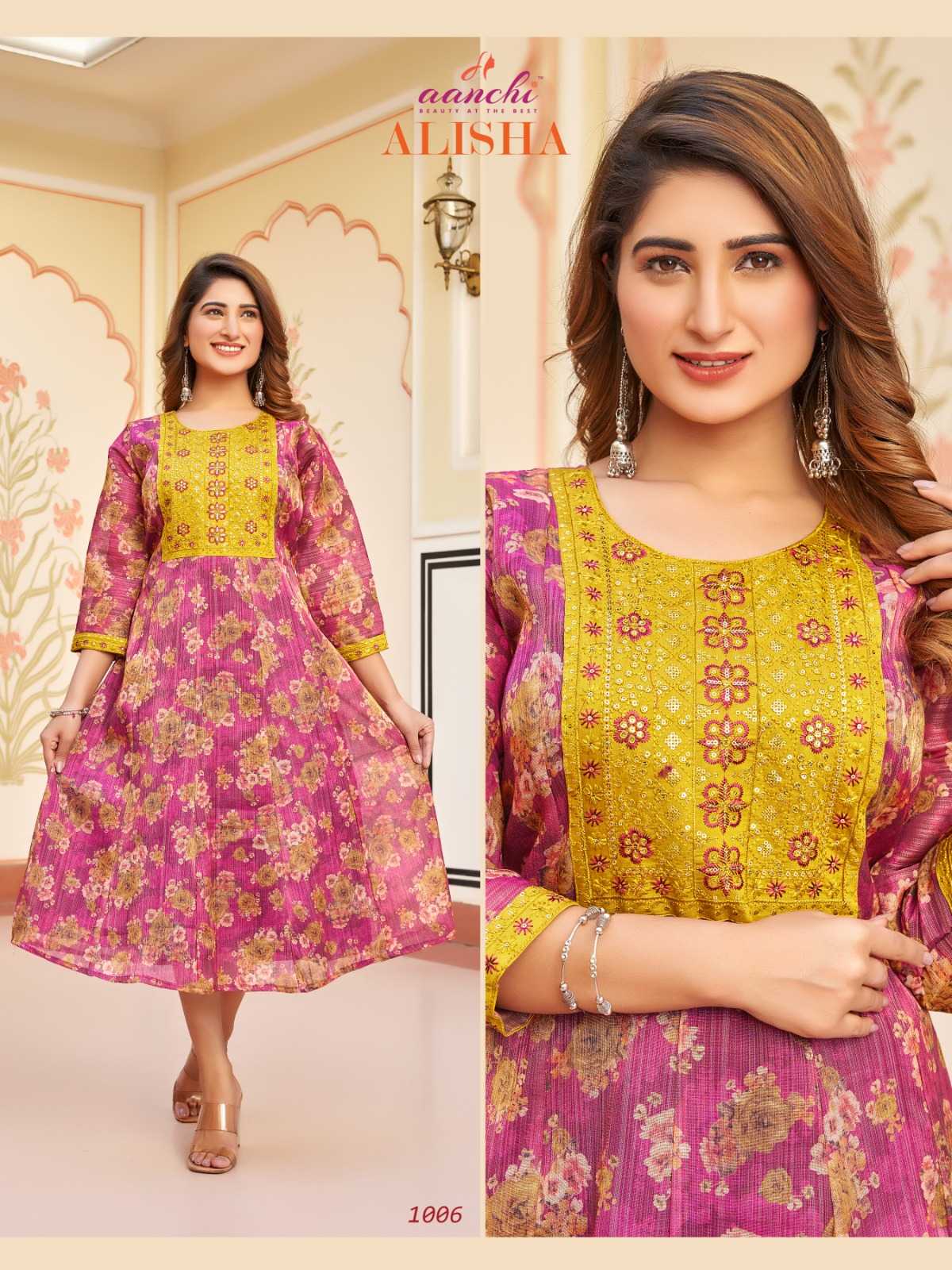 aanchi alisha stitched kali style flair long kurti