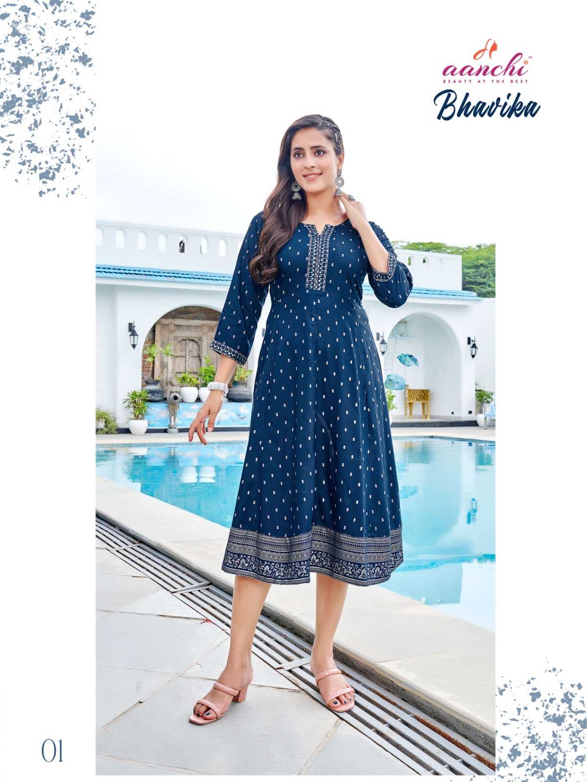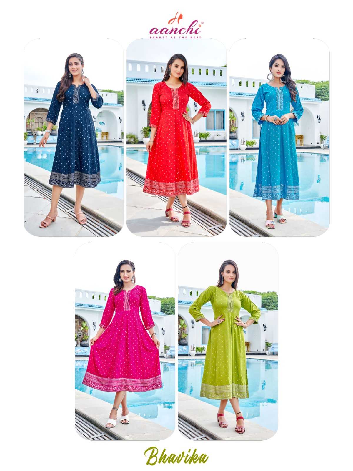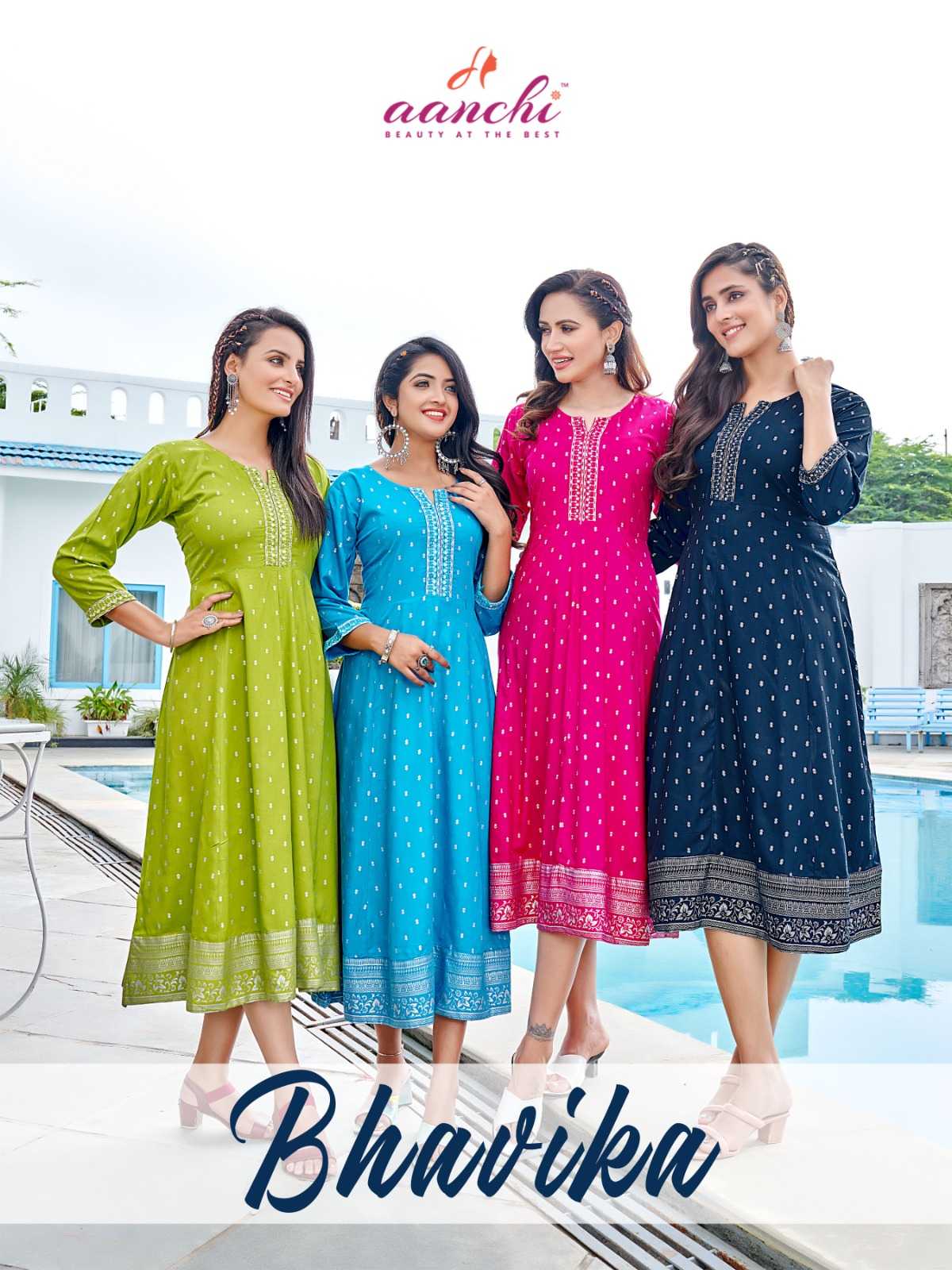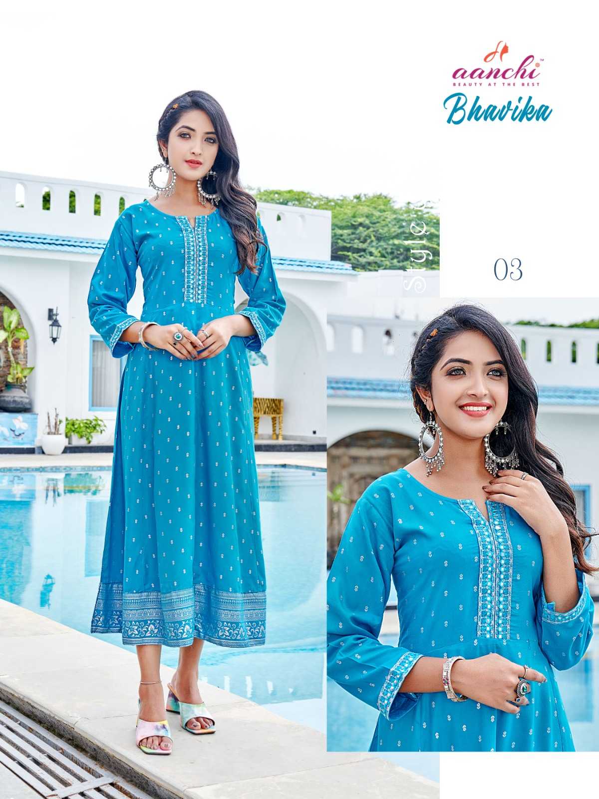 aanchi bhavika stitched embroidery work flair kurti