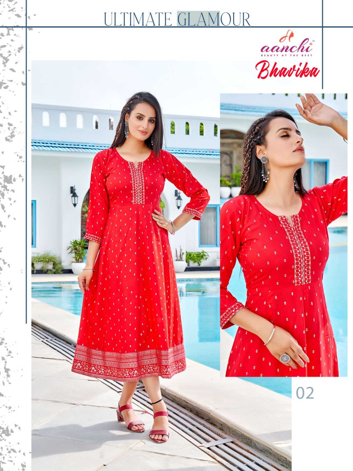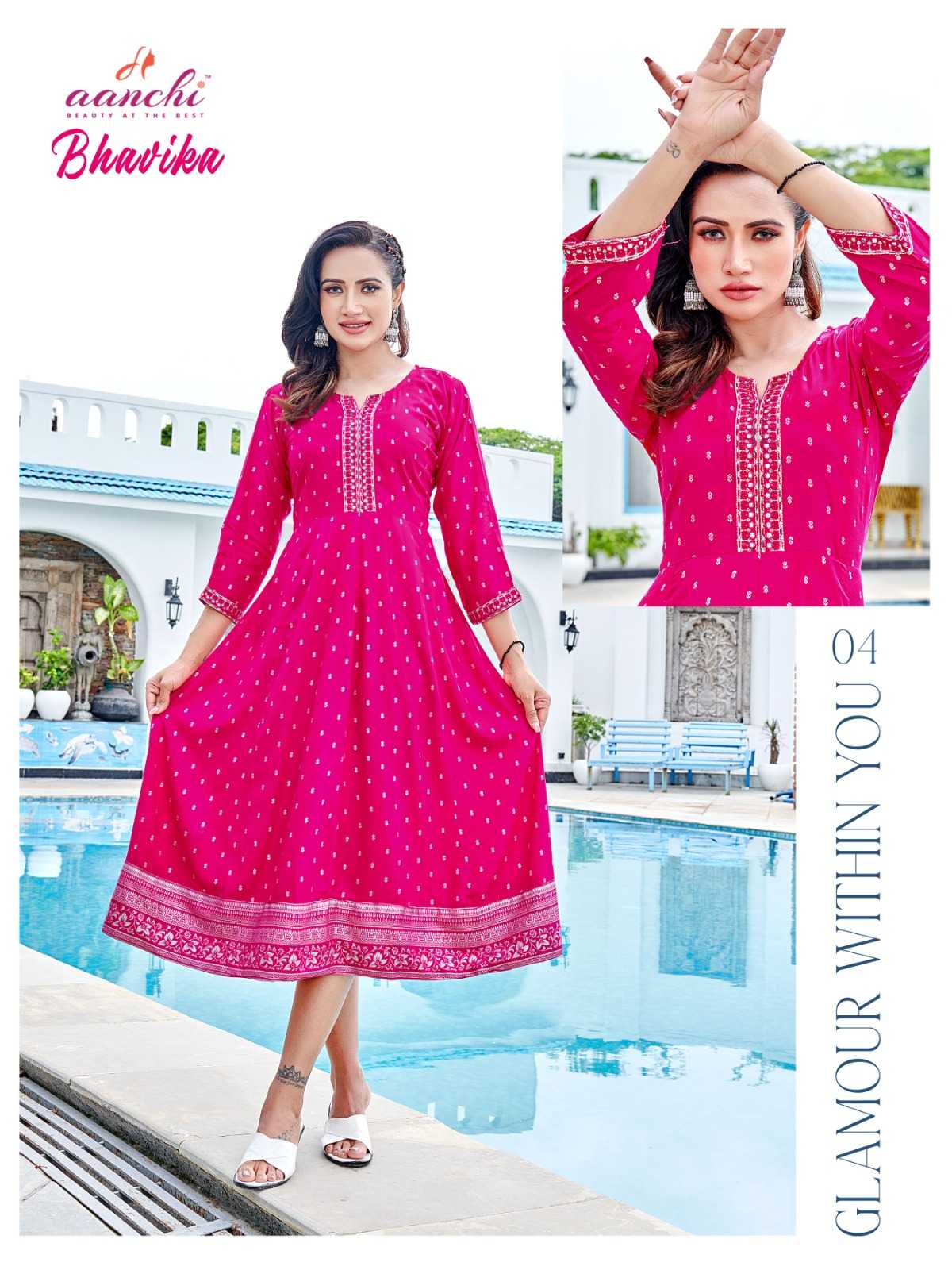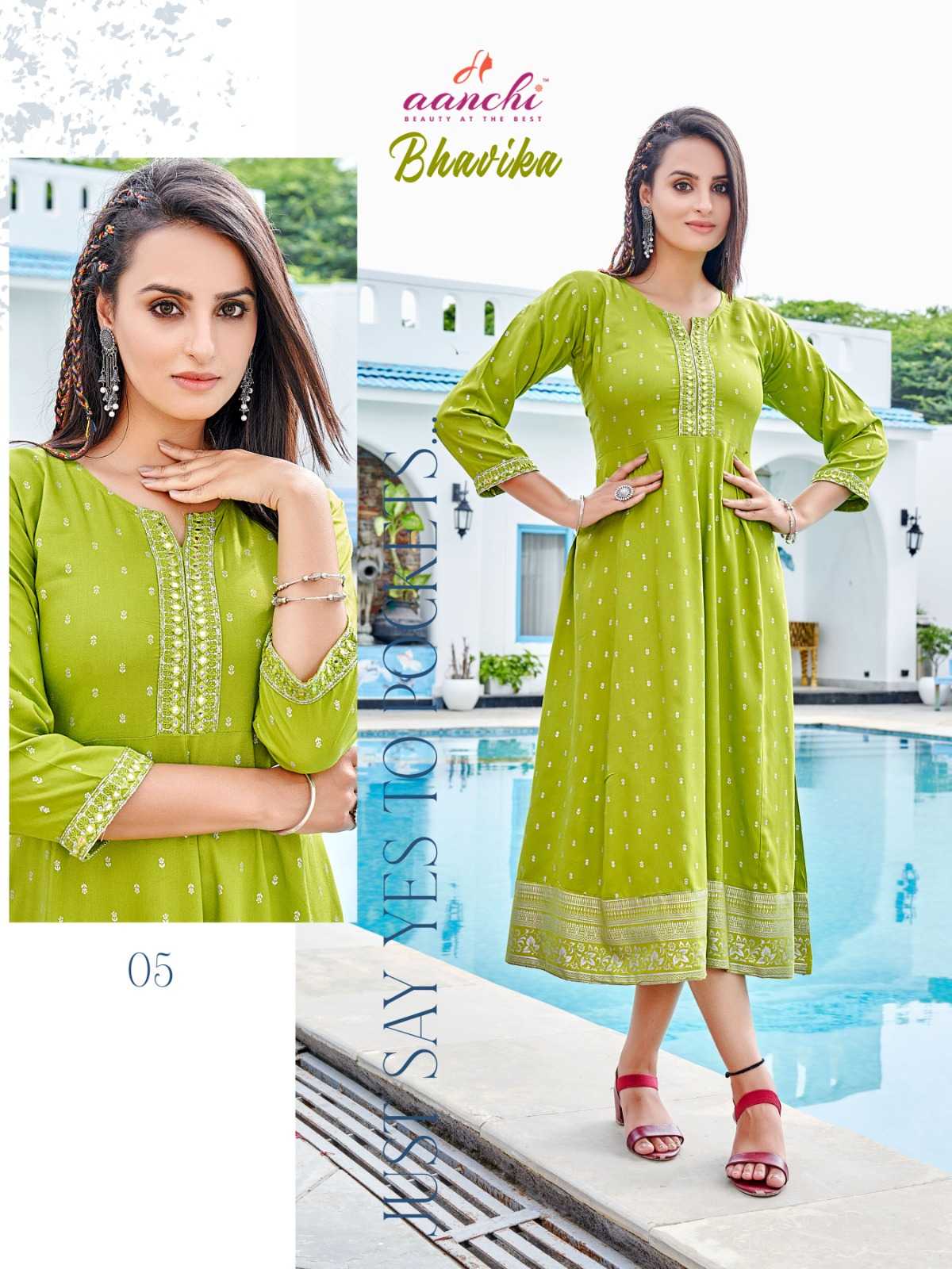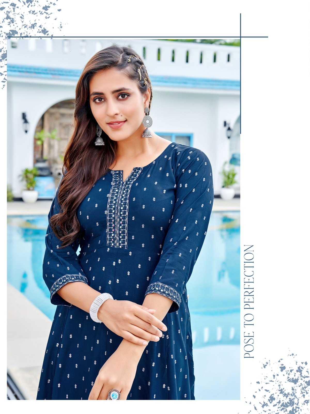 aanchi bhavika stitched embroidery work flair kurti