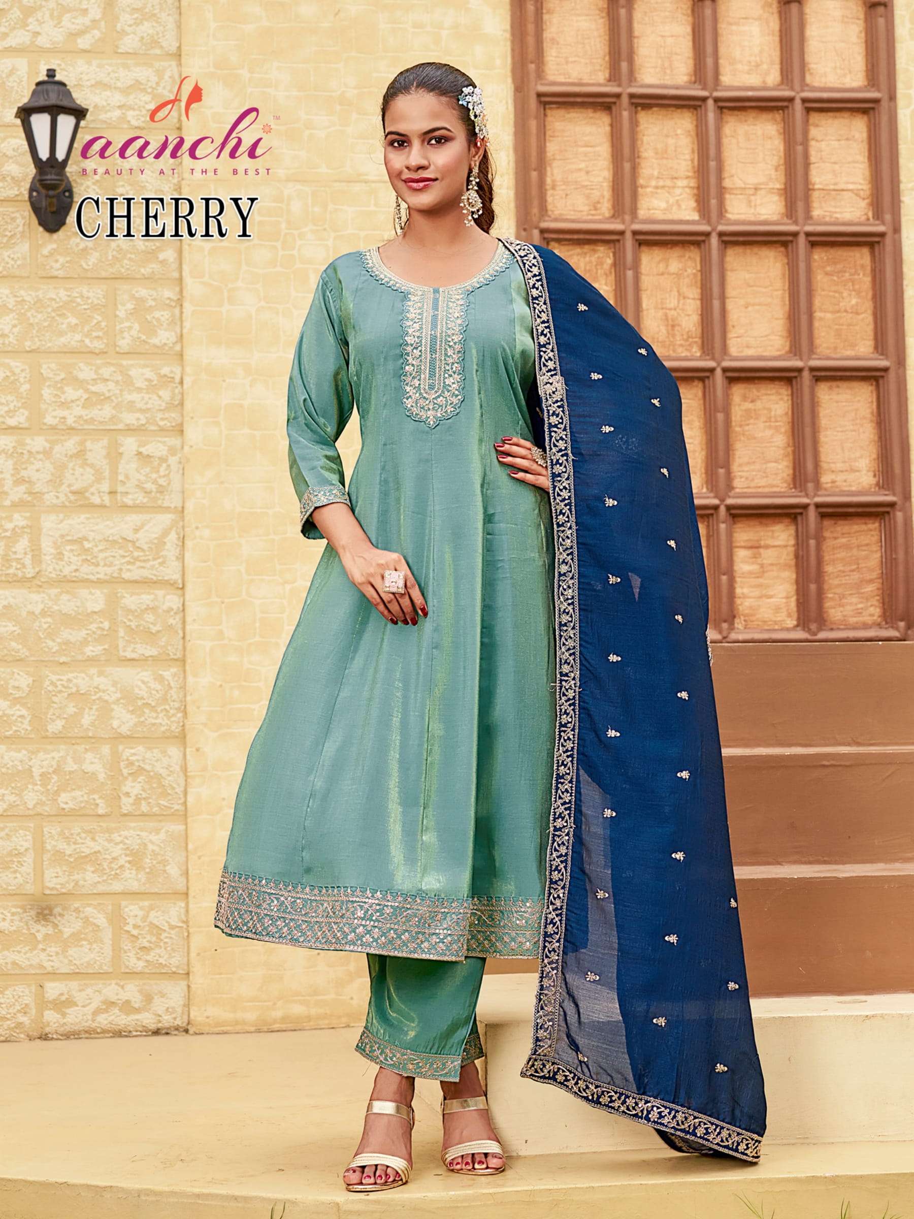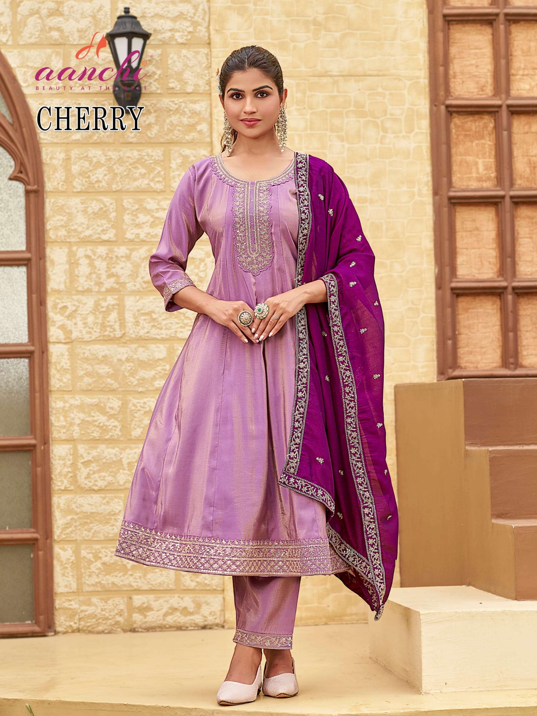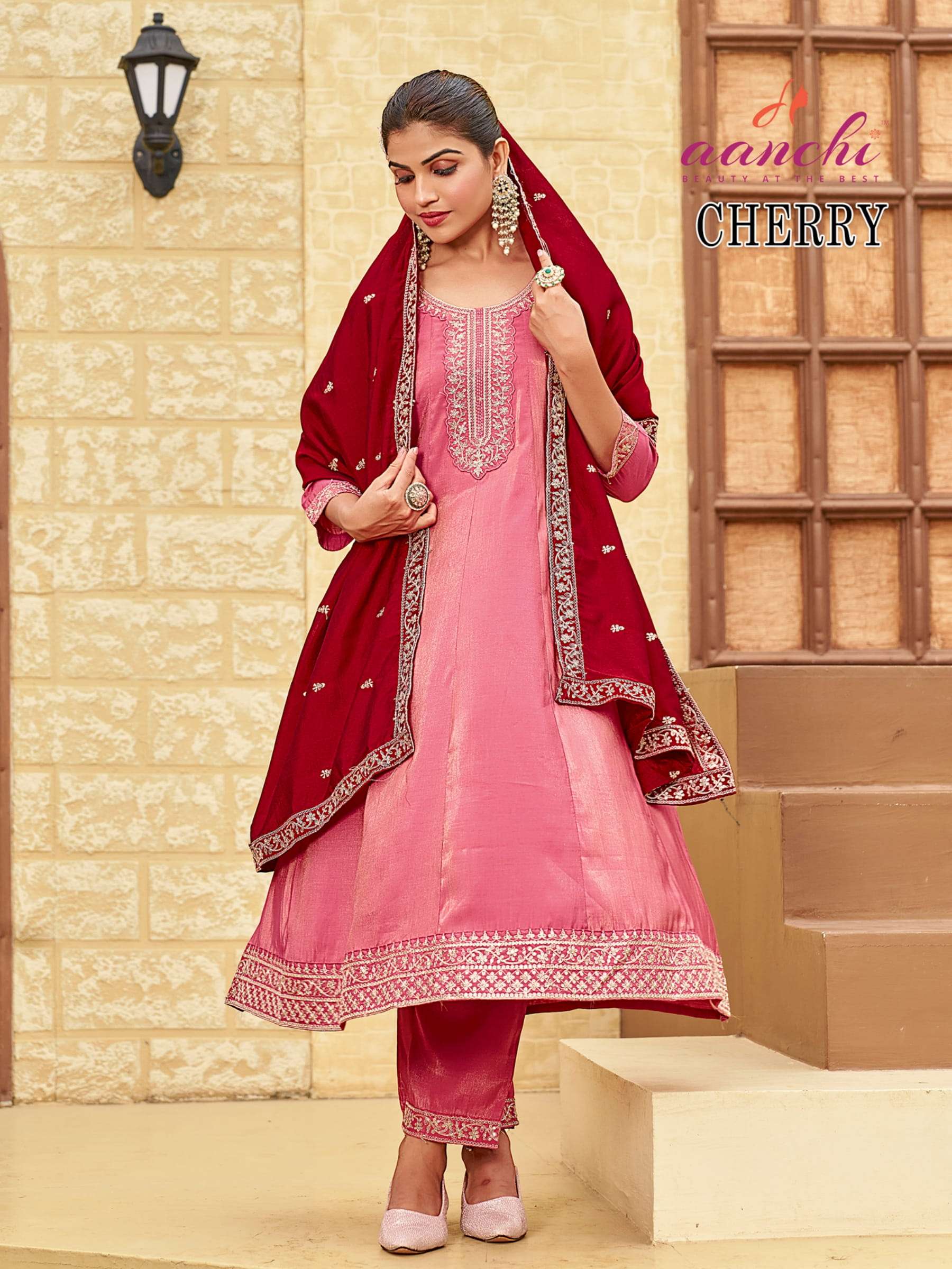 aanchi cherry roman shimmer fully stitch modern suit for womens