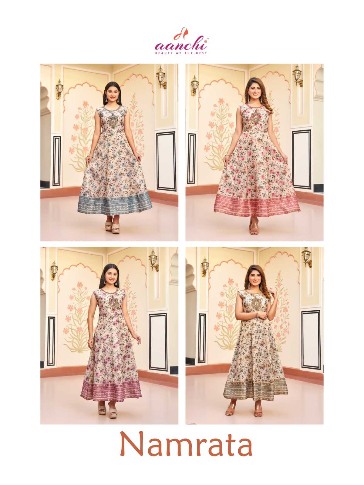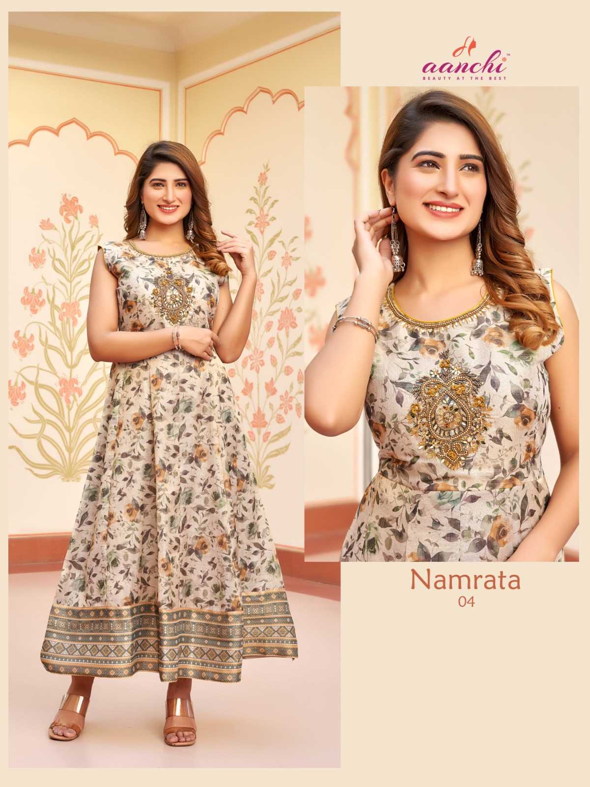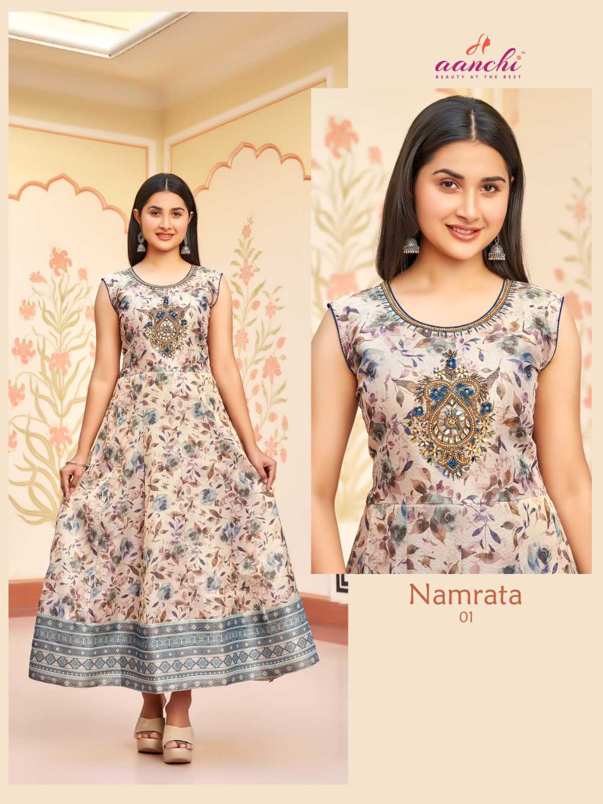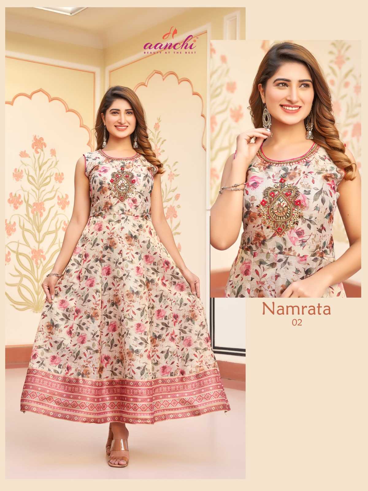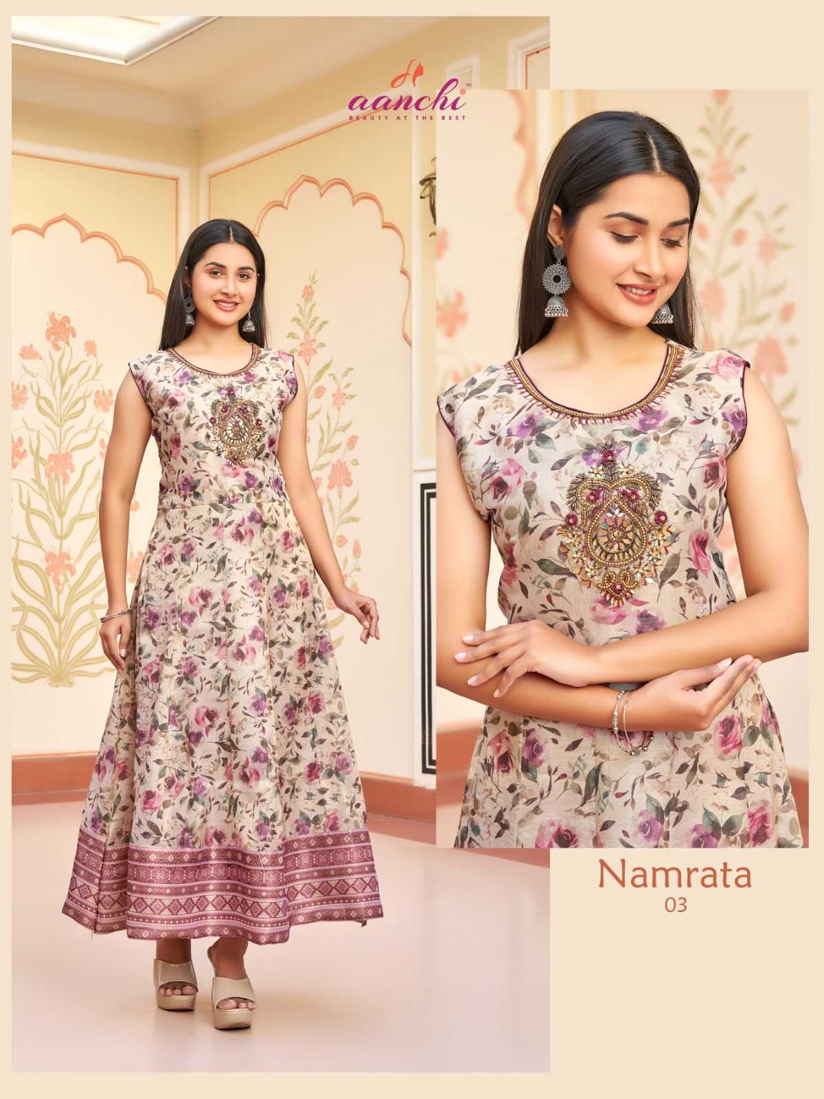 aanchi kurtis namrata digital print with handwork stitch flair kurtis