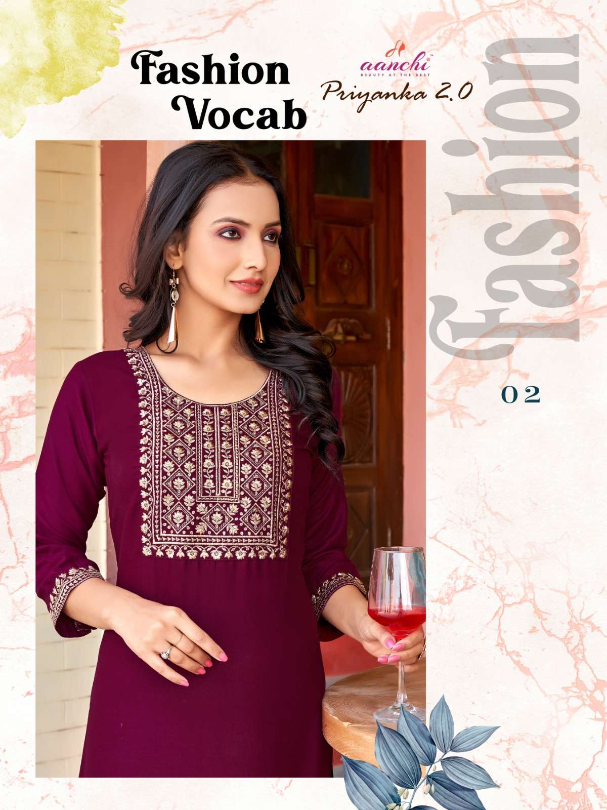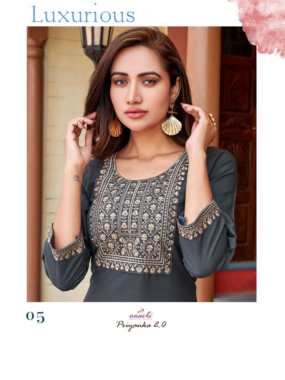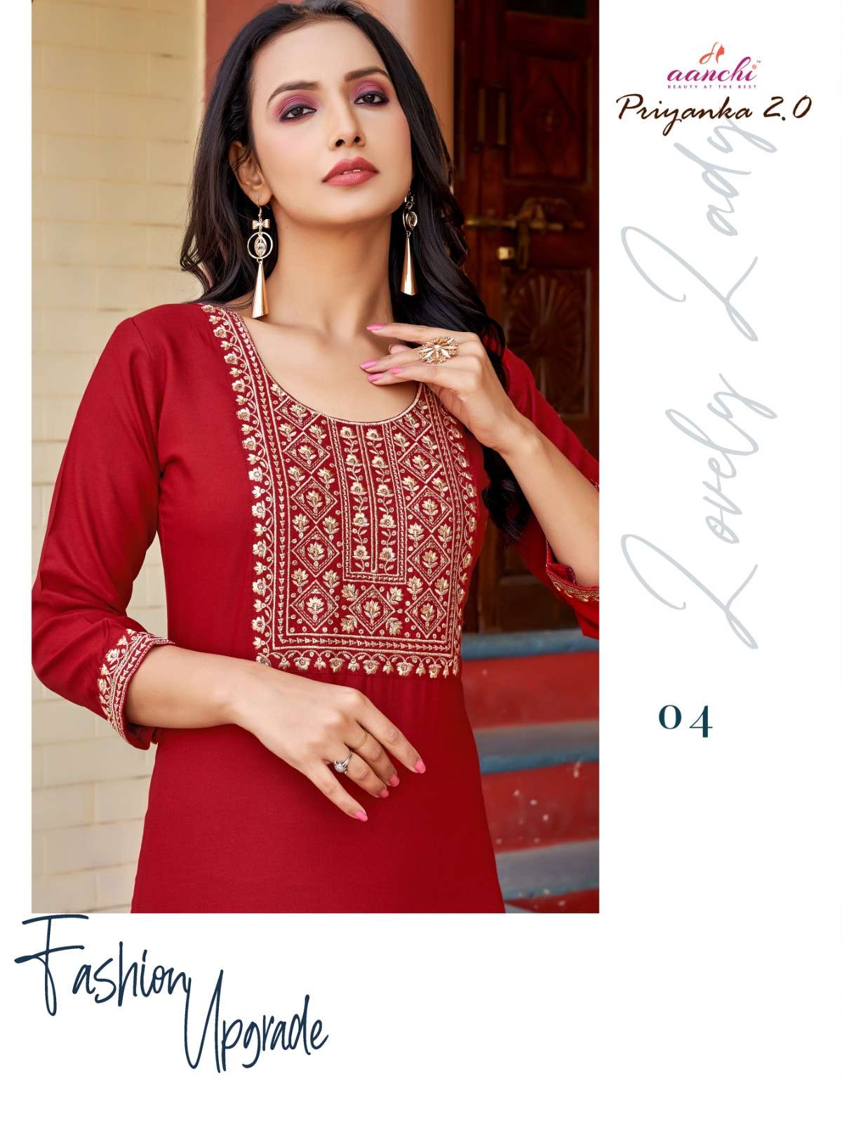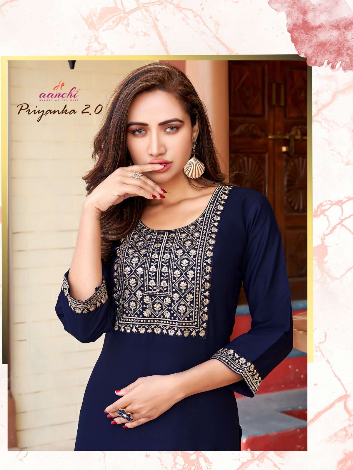 aanchi kurtis priyanka 2.0 embroidery work straight kurtis design with rate