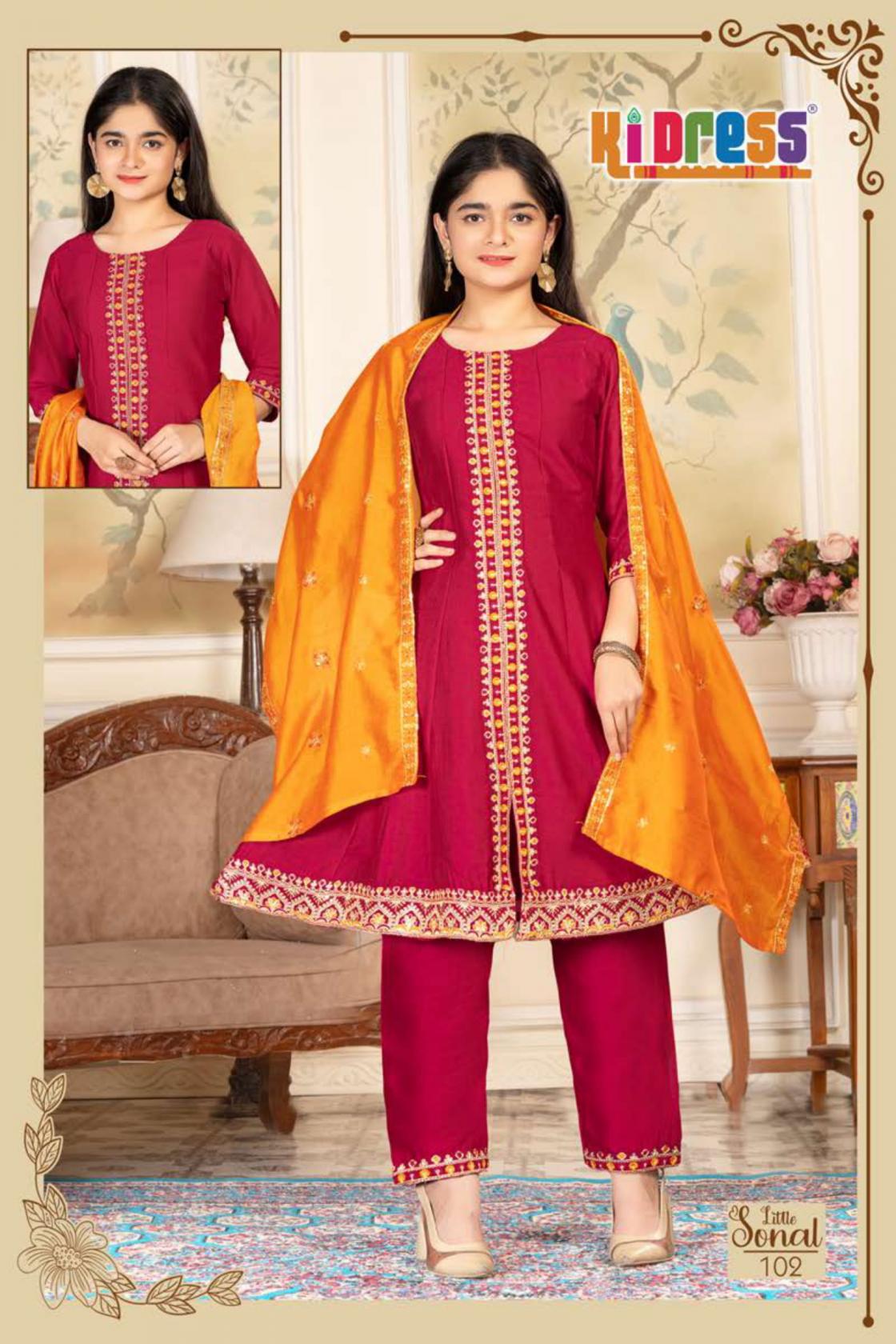aanchi launch little sonal readymade vichitra silk combo set 3pcs dress