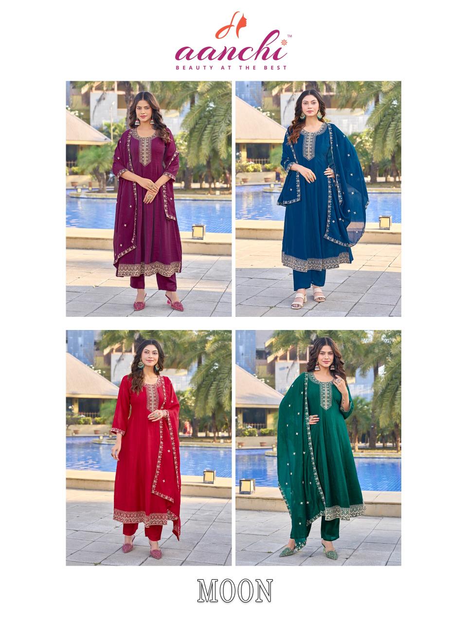 🔅Aanchi Kurtis🔅 Catalogue Name:MOON ⭐Details: 👗Fabrics - 👚Pattern- 🎗Size - M(19)L(20) XL(21) XXL(23) ☣Designs- 4 Pcs 💵 Rate- 1195/-