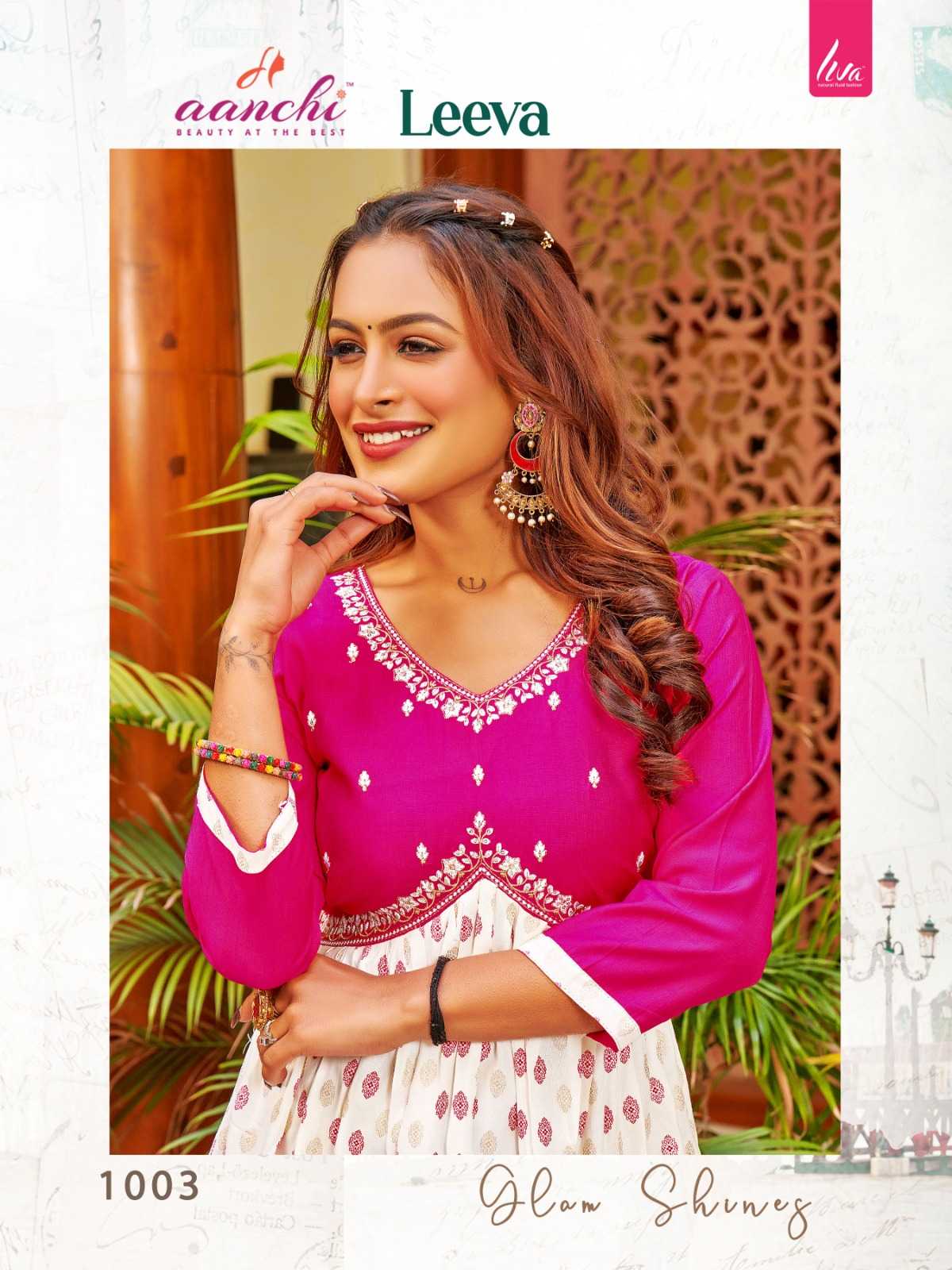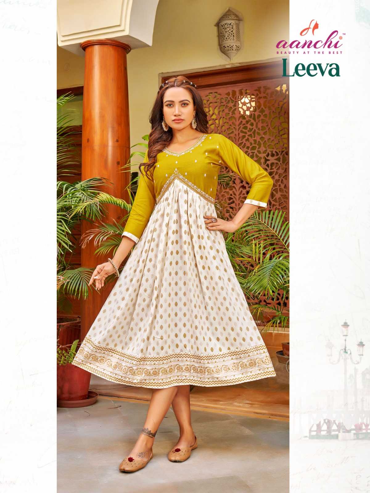 aanchi leeva designer readymade alia cut embroidery work long kurti