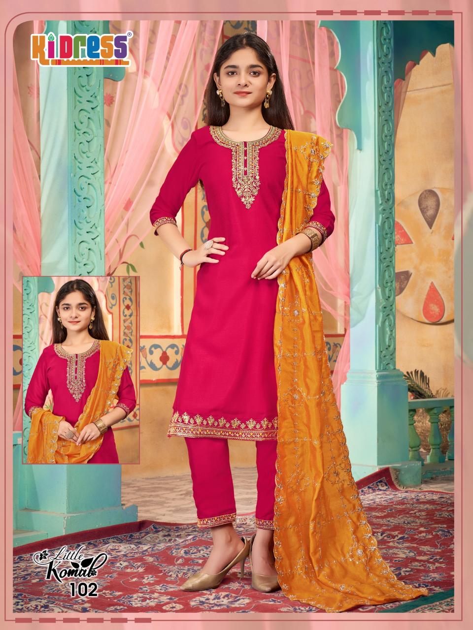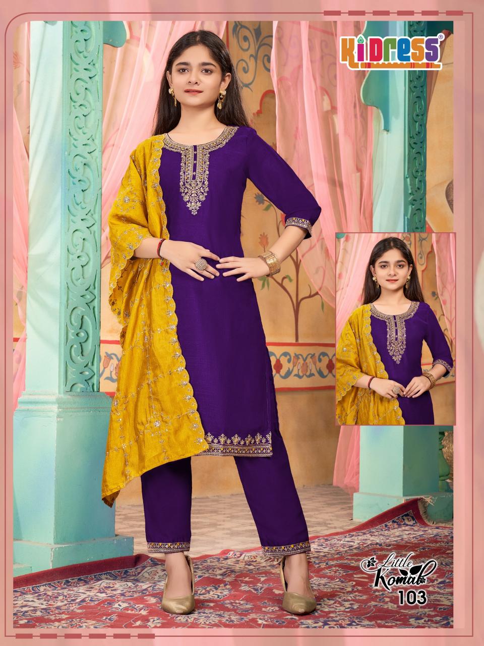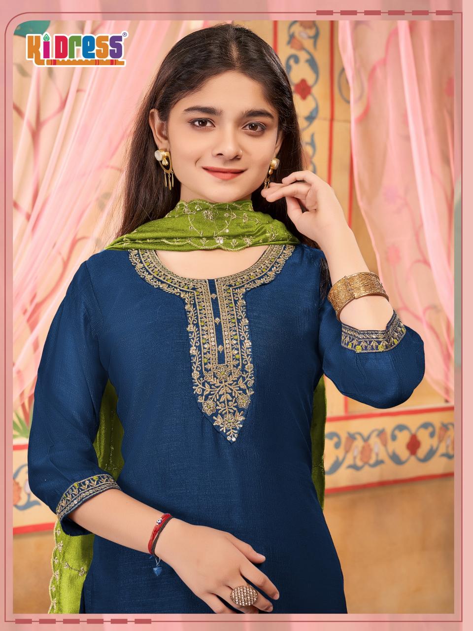 aanchi little komal fullstitch combo vichitra trendy kids 3pcs dress