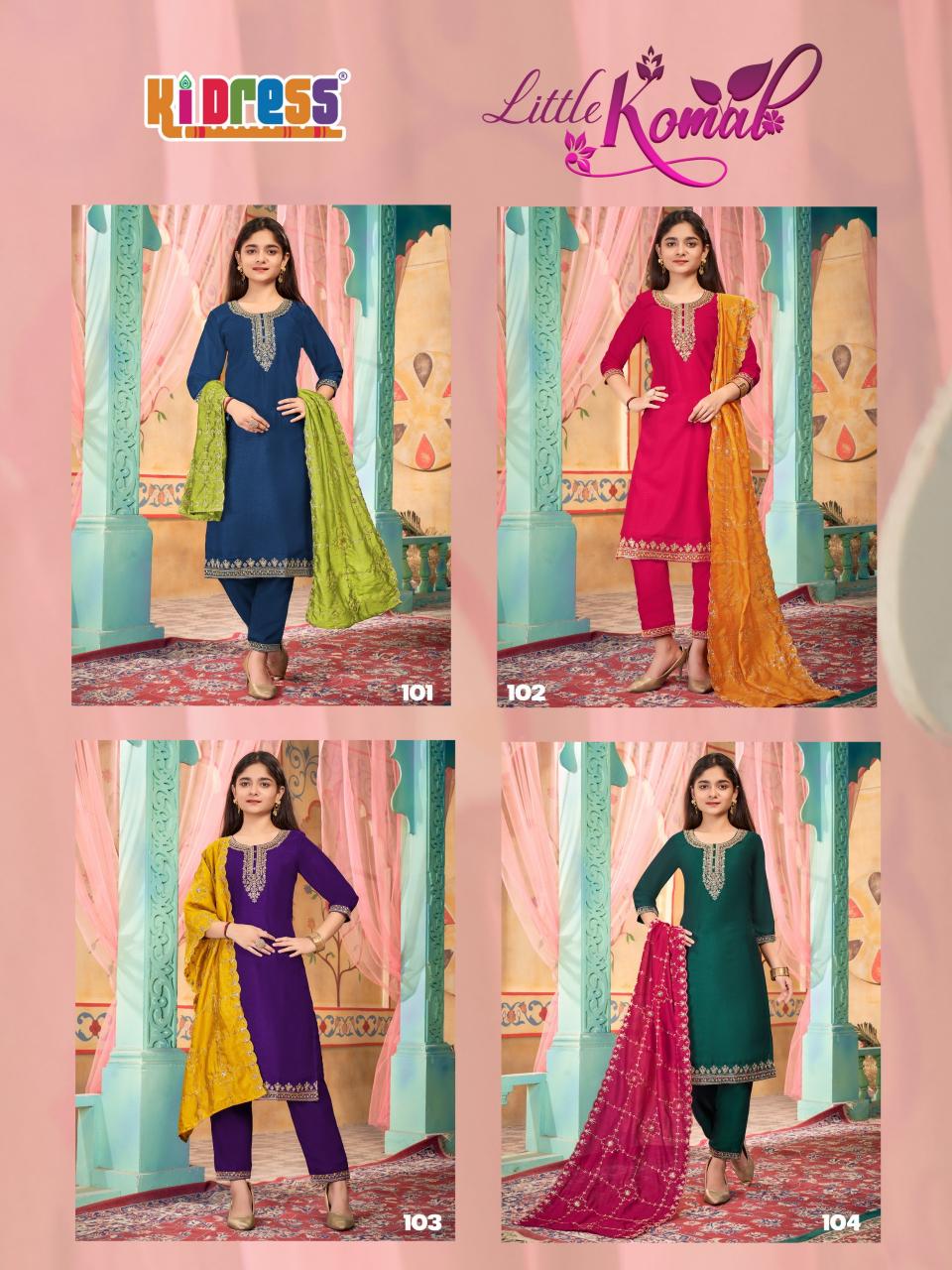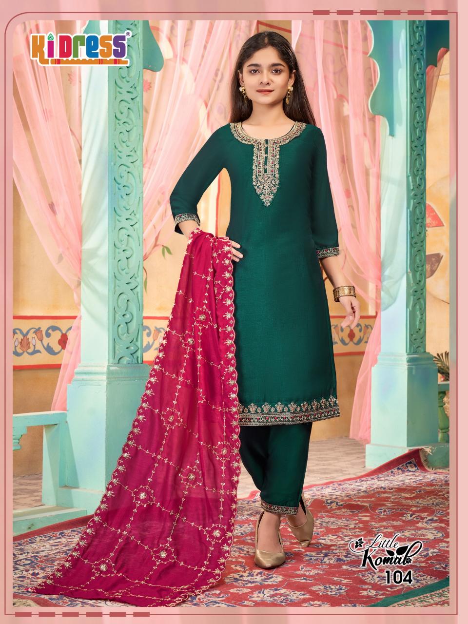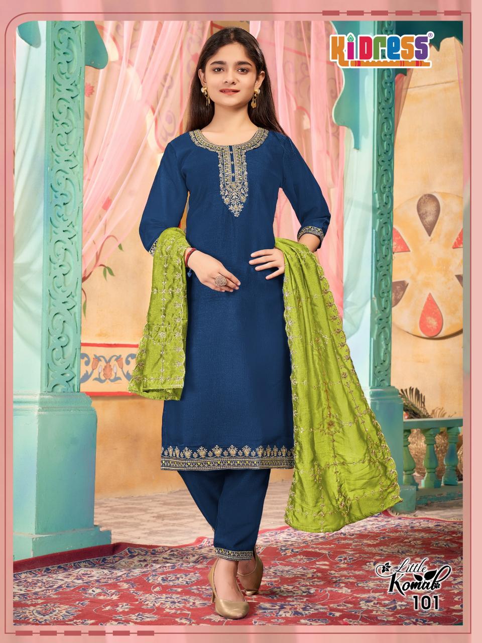 aanchi little komal fullstitch combo vichitra trendy kids 3pcs dress