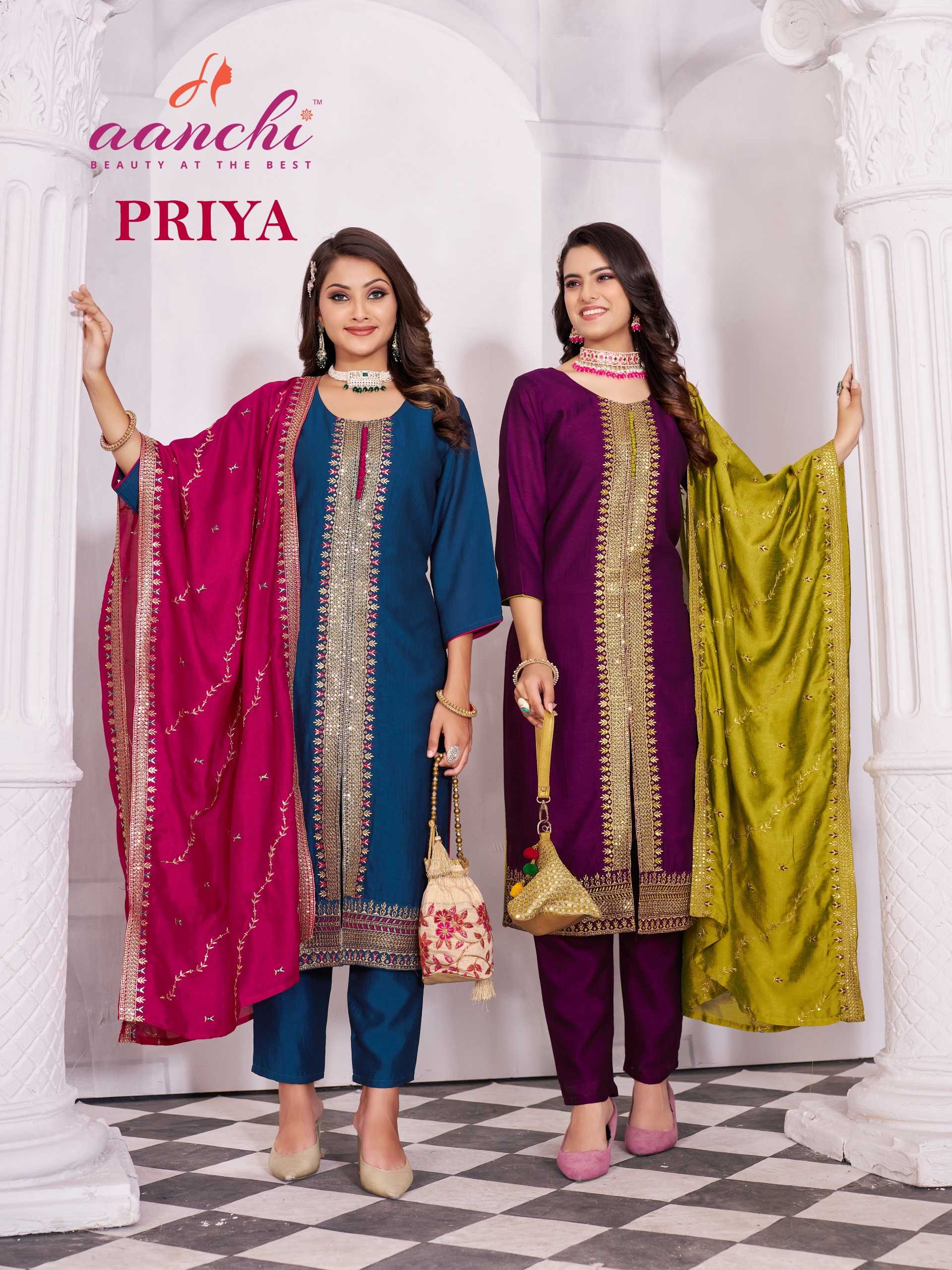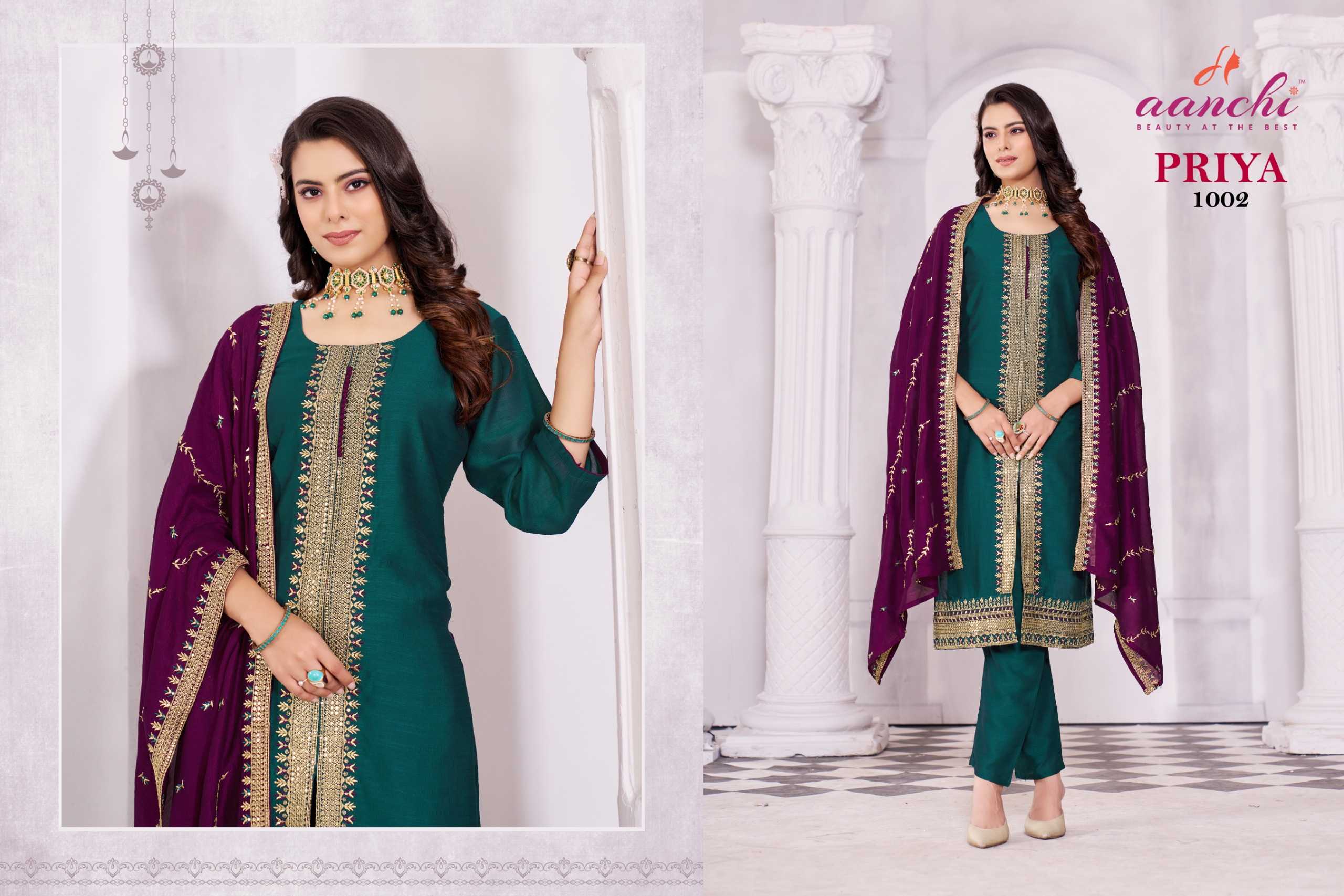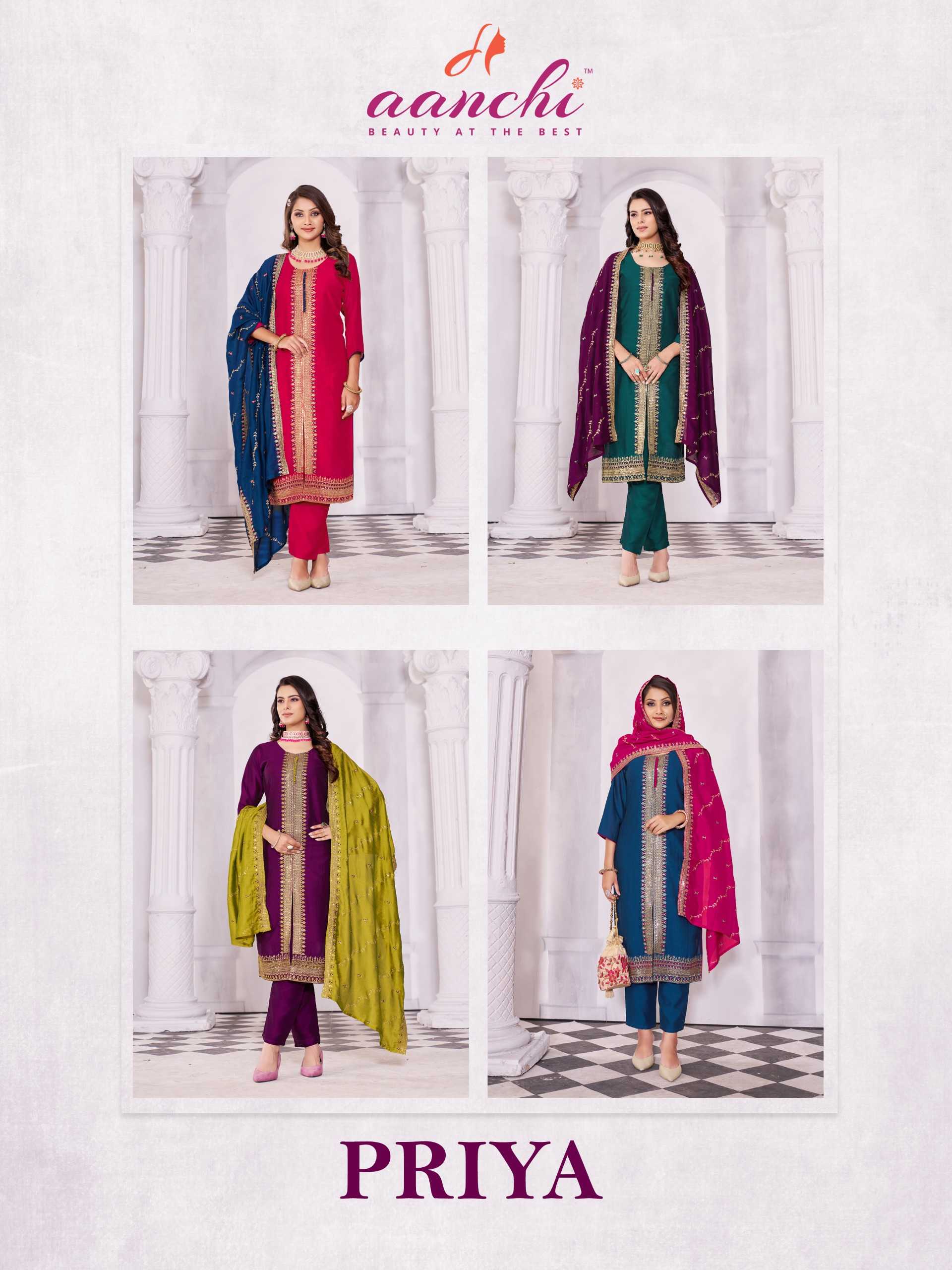 aanchi priya designer wear vichitra readymade 3pc salwar suit collection