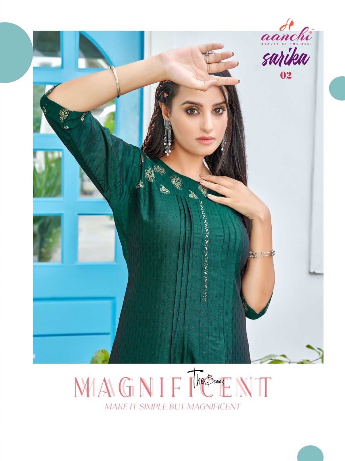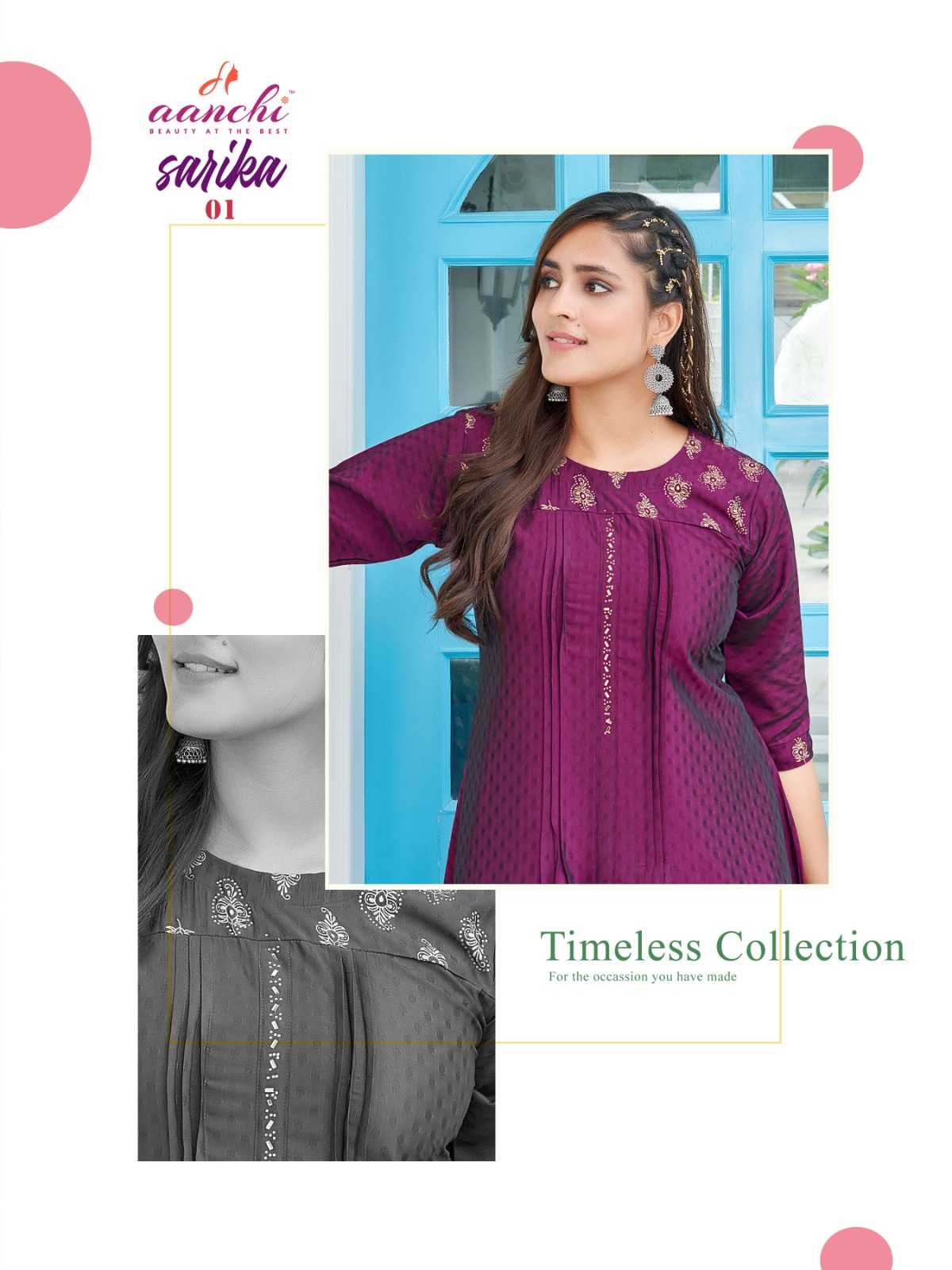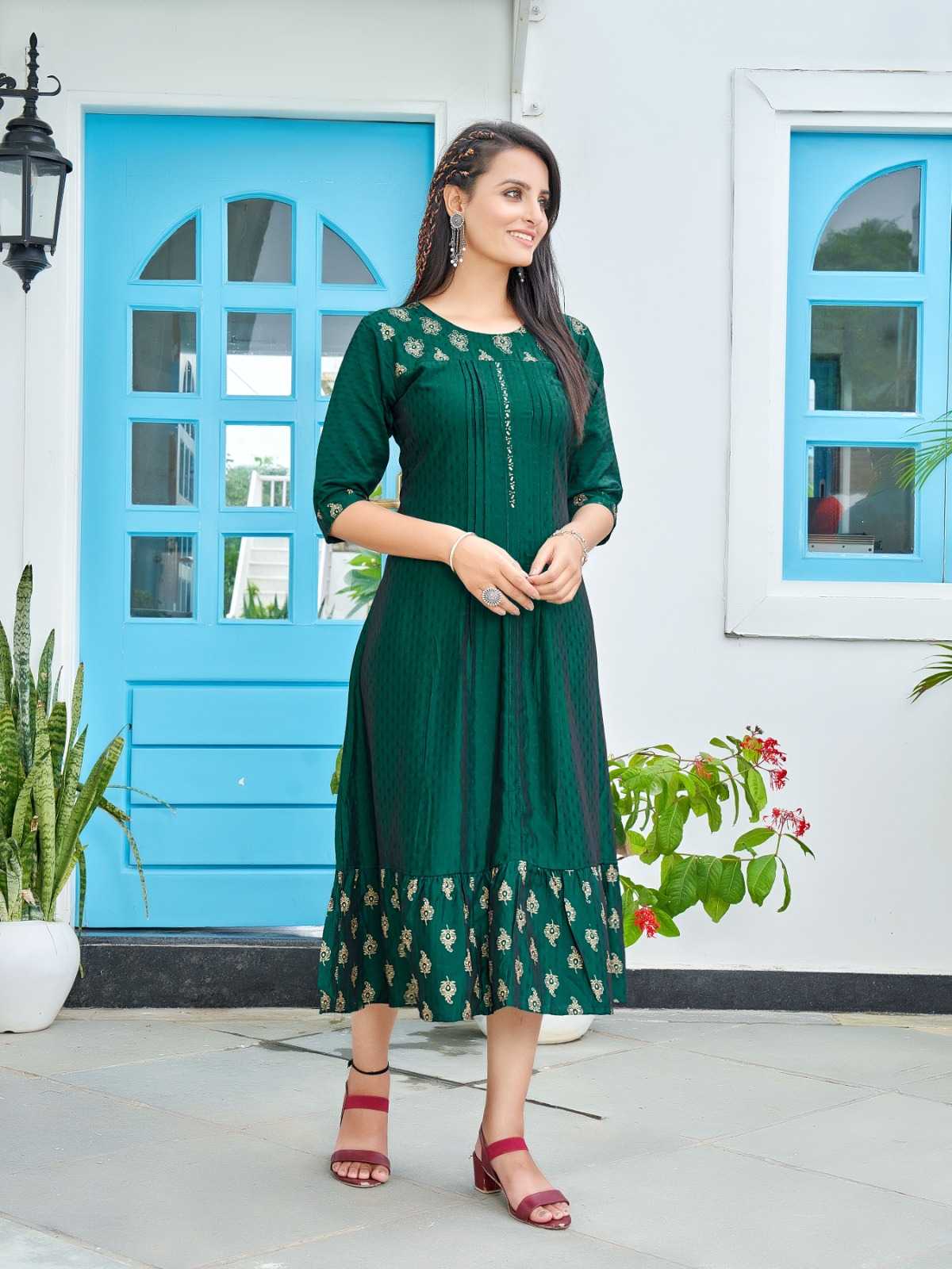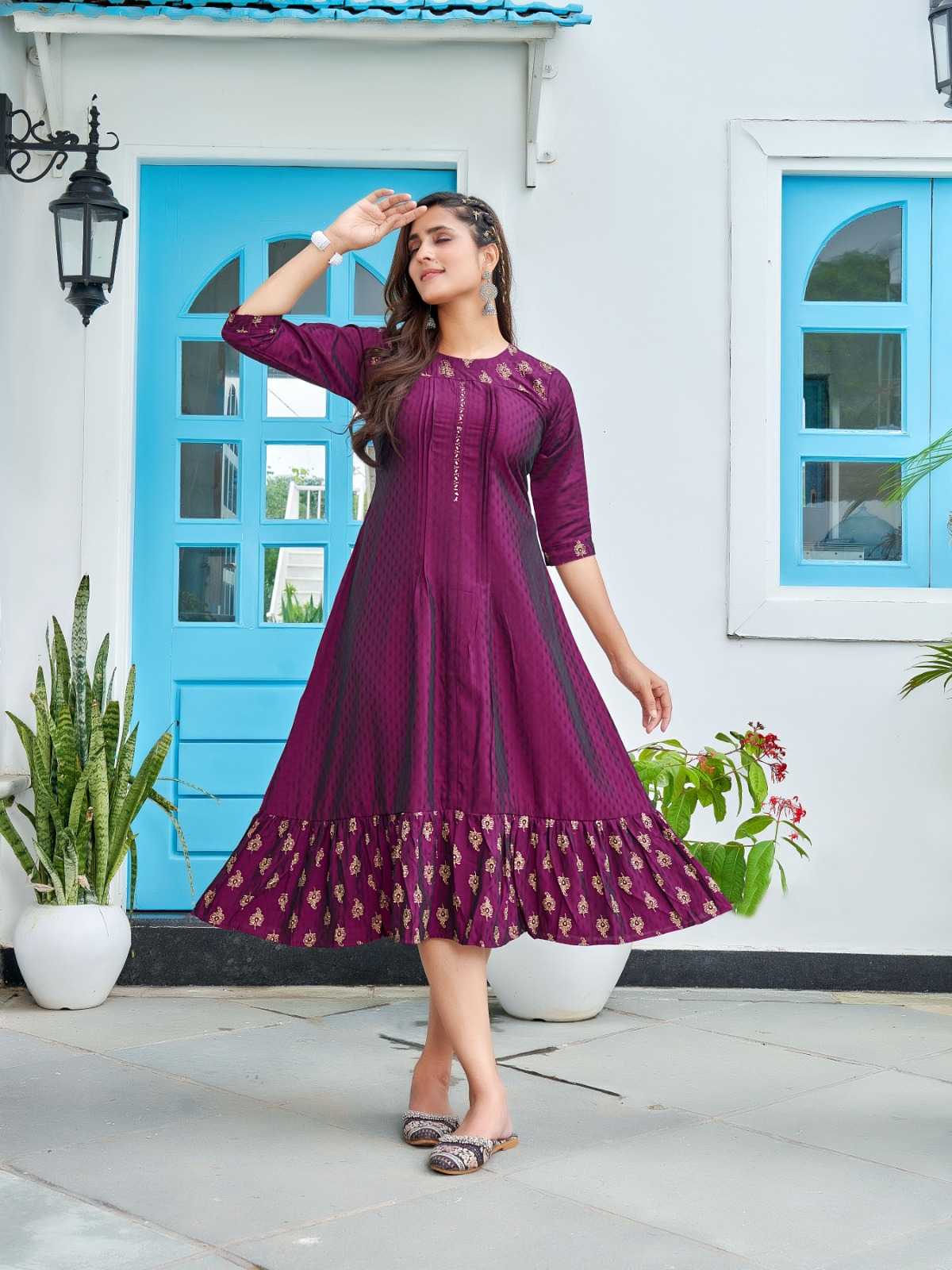 aanchi sarika readymade fancy print with diamond work flair long kurti