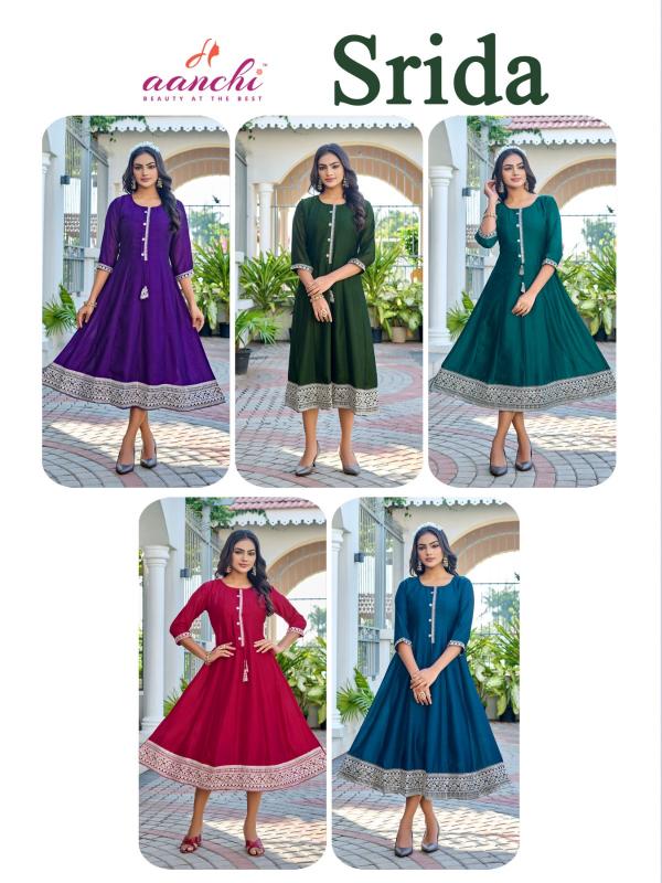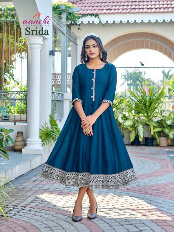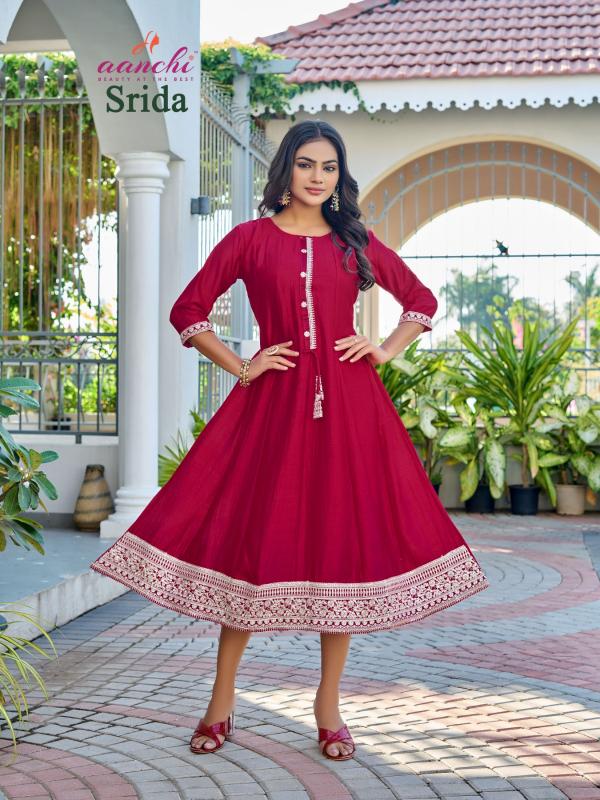 aanchi srida vichitra readymade attractive look flair kali cut kurtis