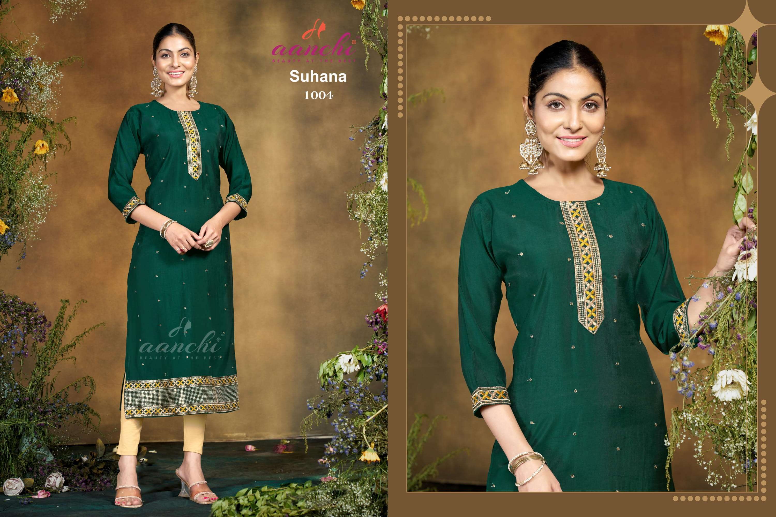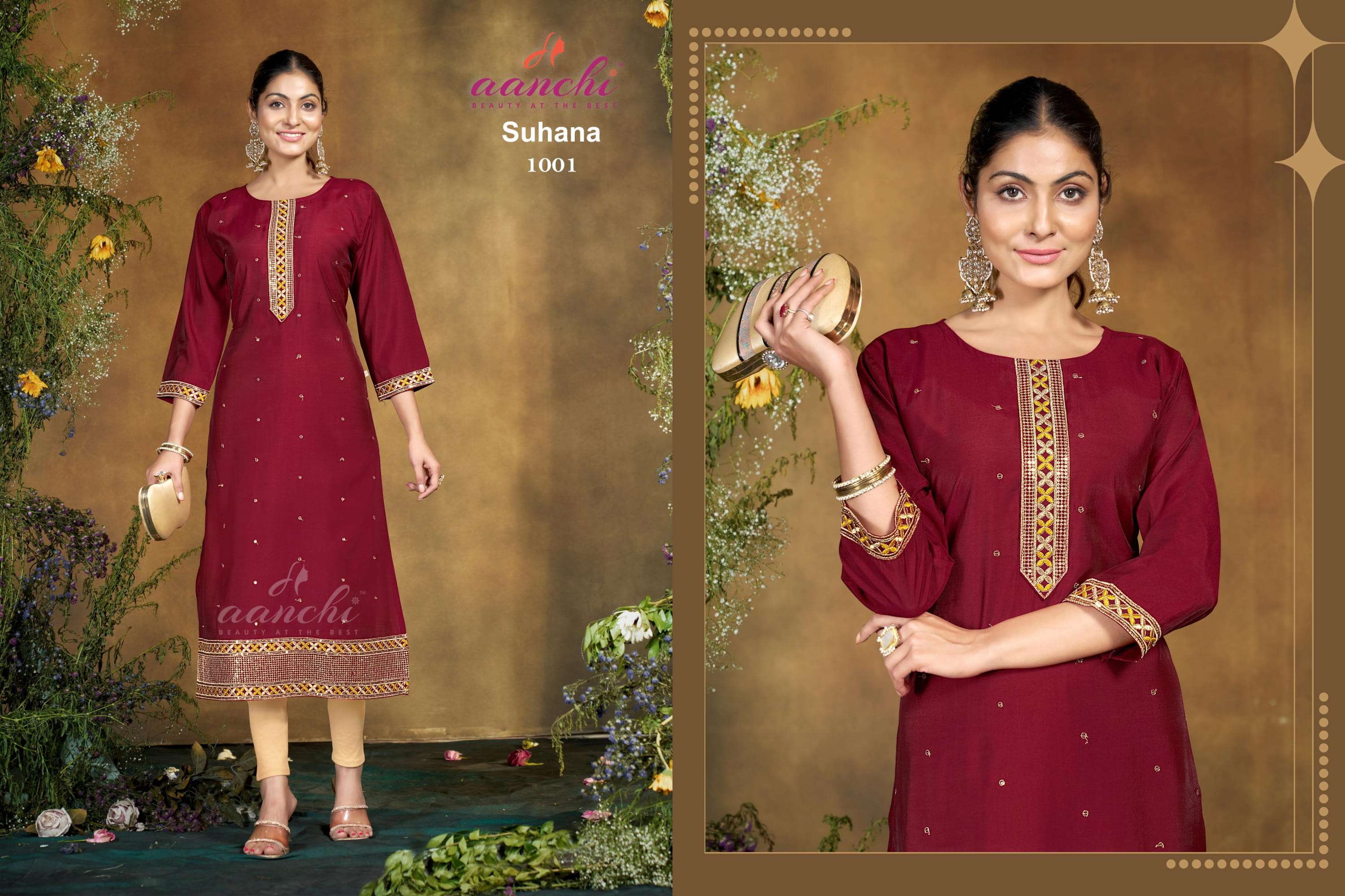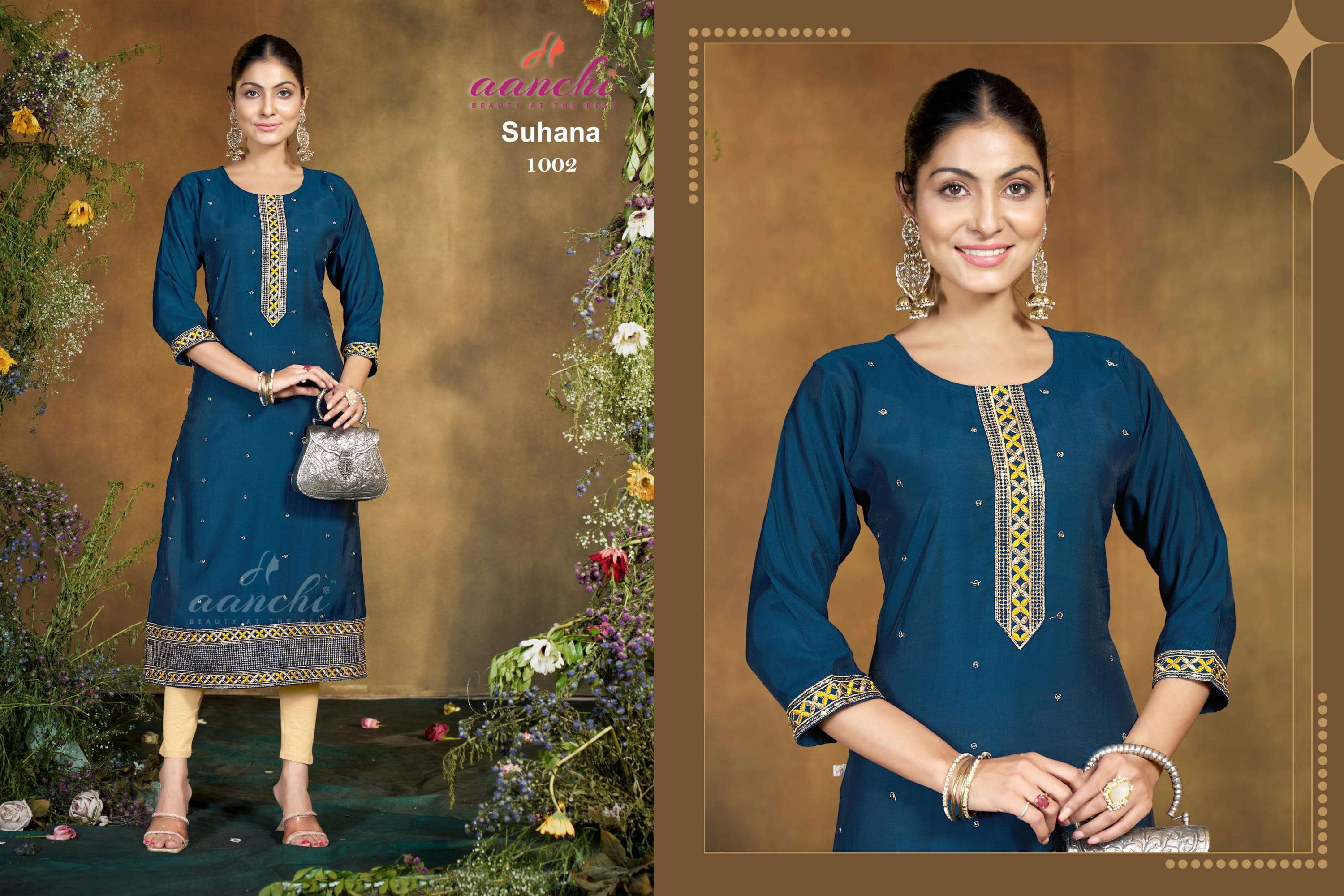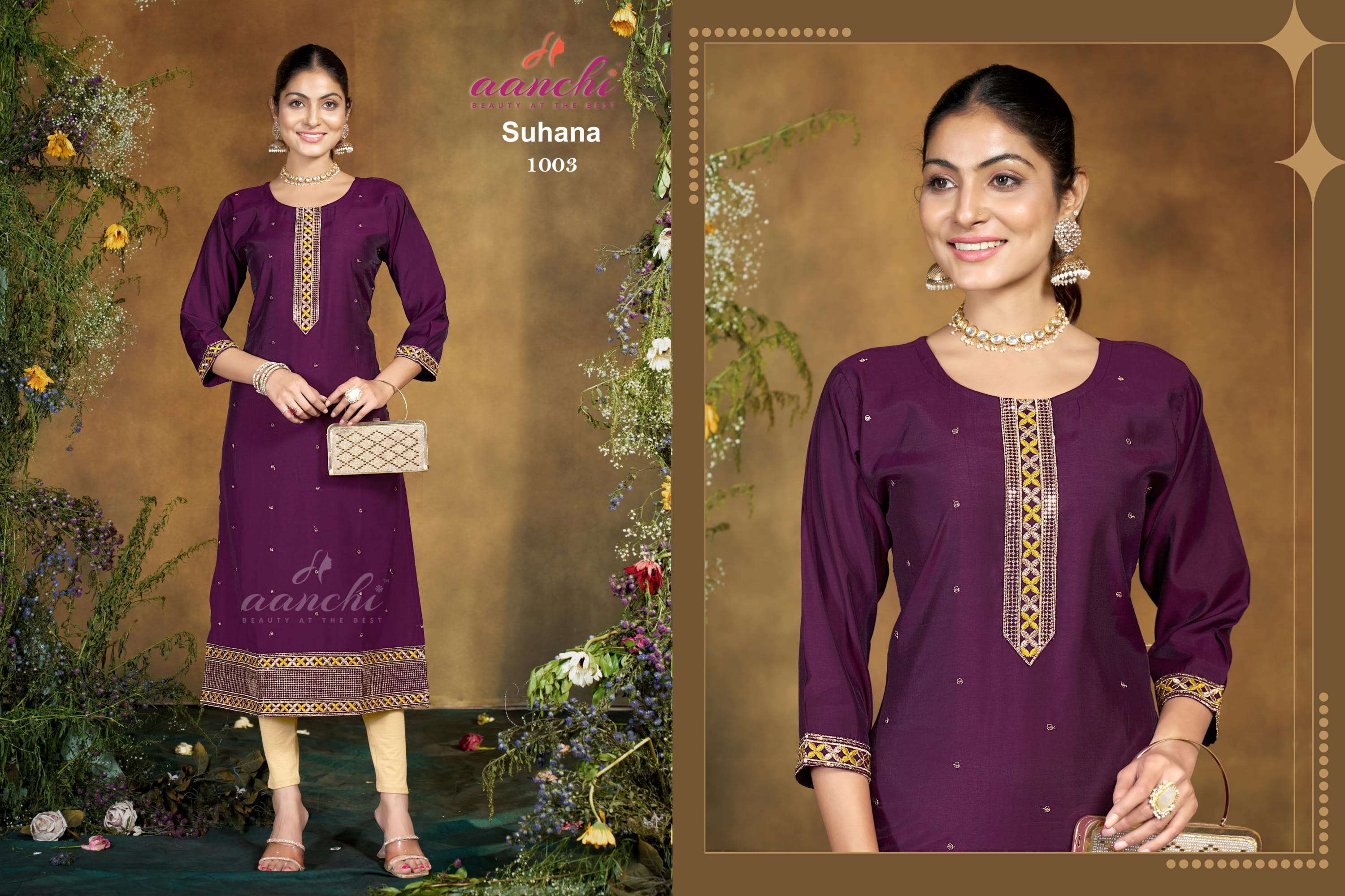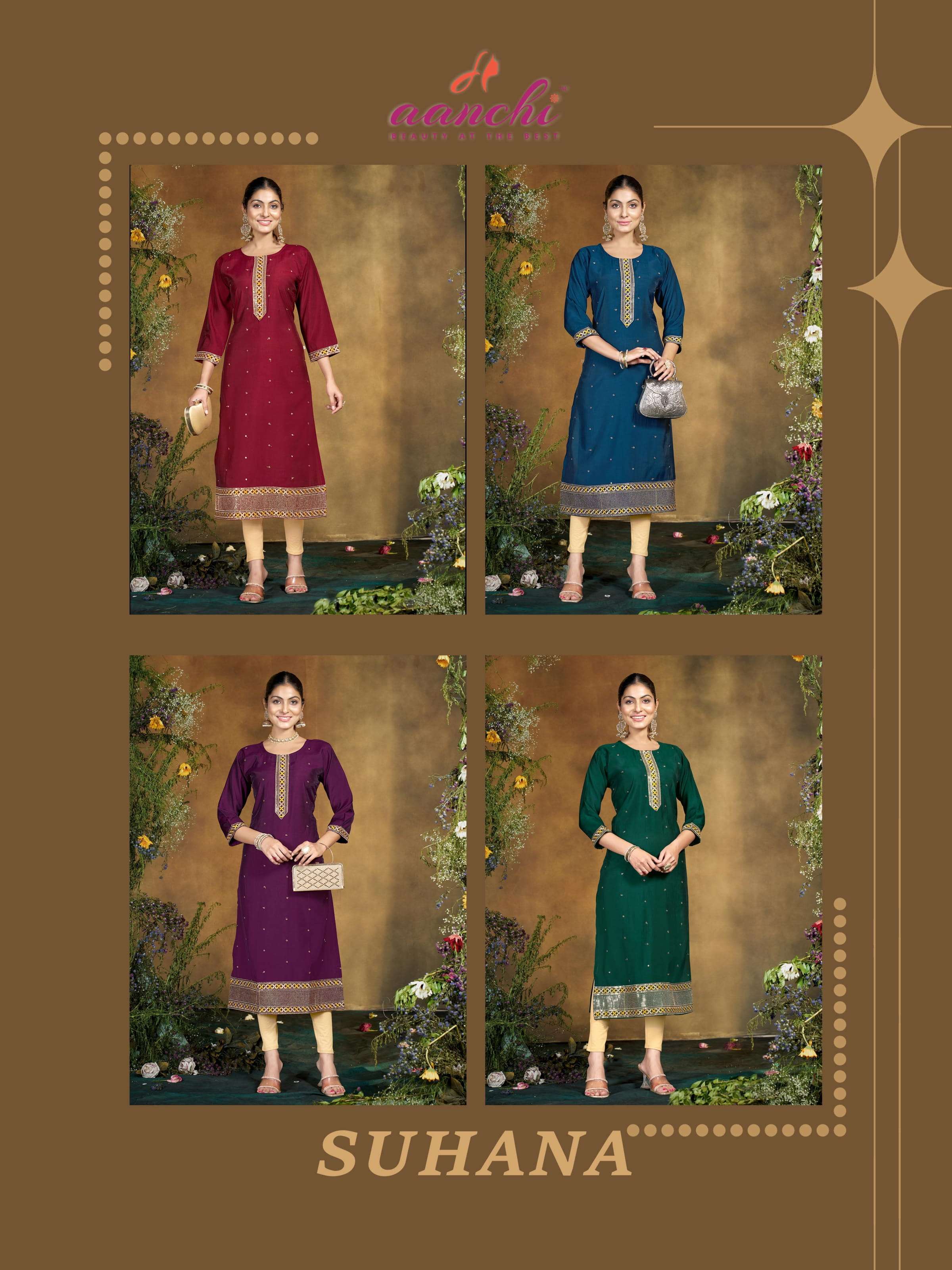 aanchi suhana roman silk fully stitch pretty look kurti for womens