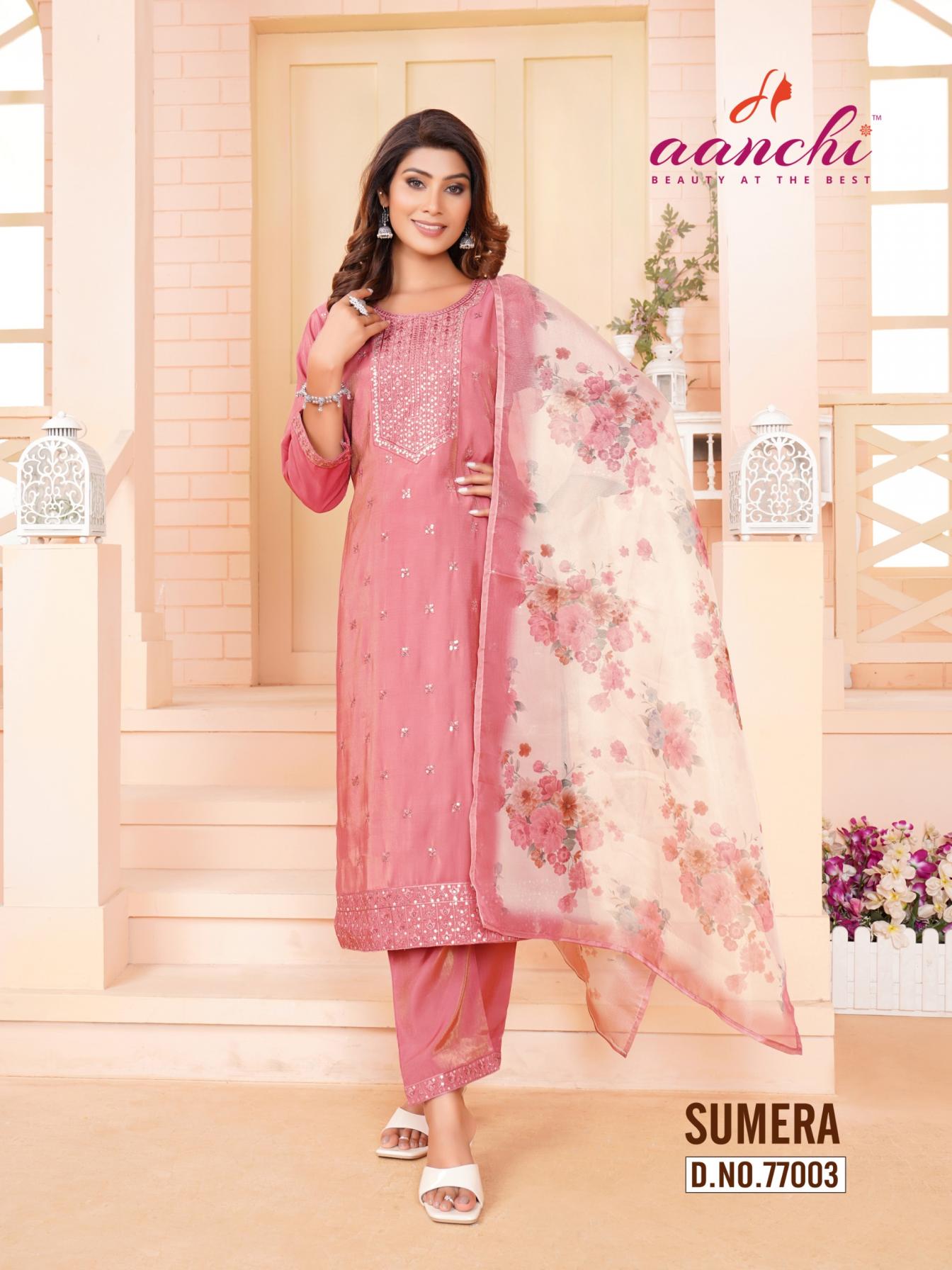 aanchi sumera roman shimmer fully stitch ethnic style ladies suits